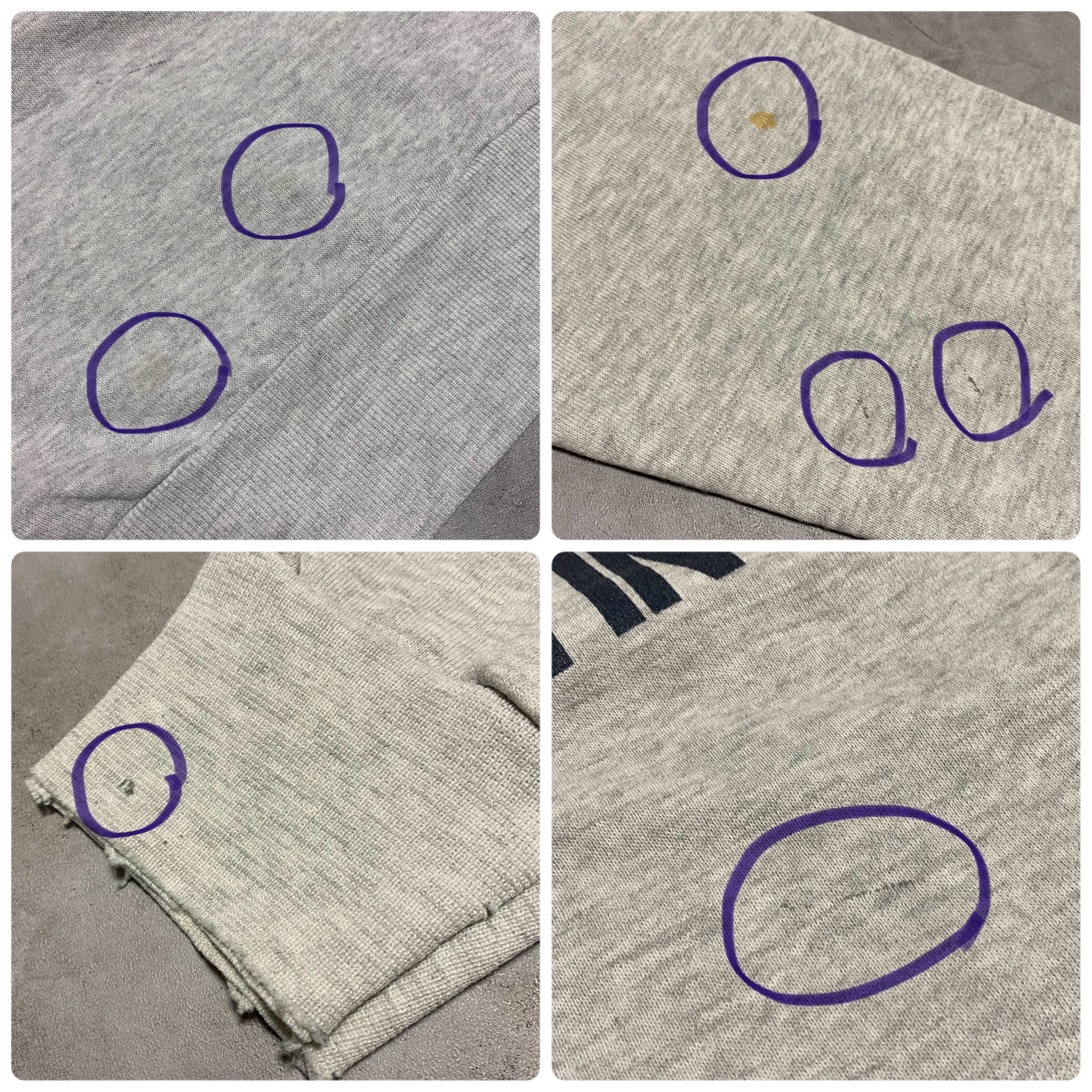 ・used品のため首元や袖、裾部分にほつれ、薄汚れと黒い汚れが数箇所ございます。味があり古着好きにはたまらない1着だと思いますが、ご理解のある方のみお願い致します。