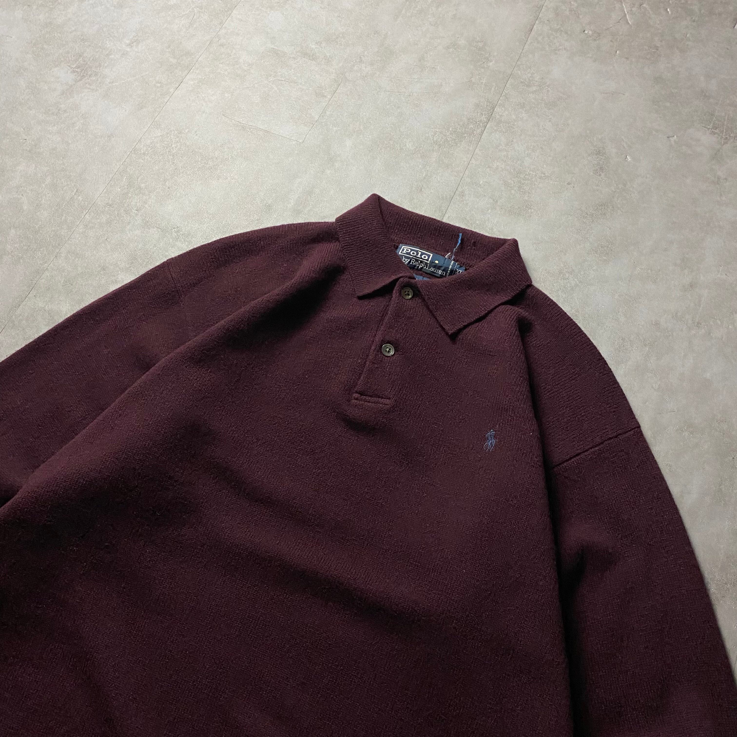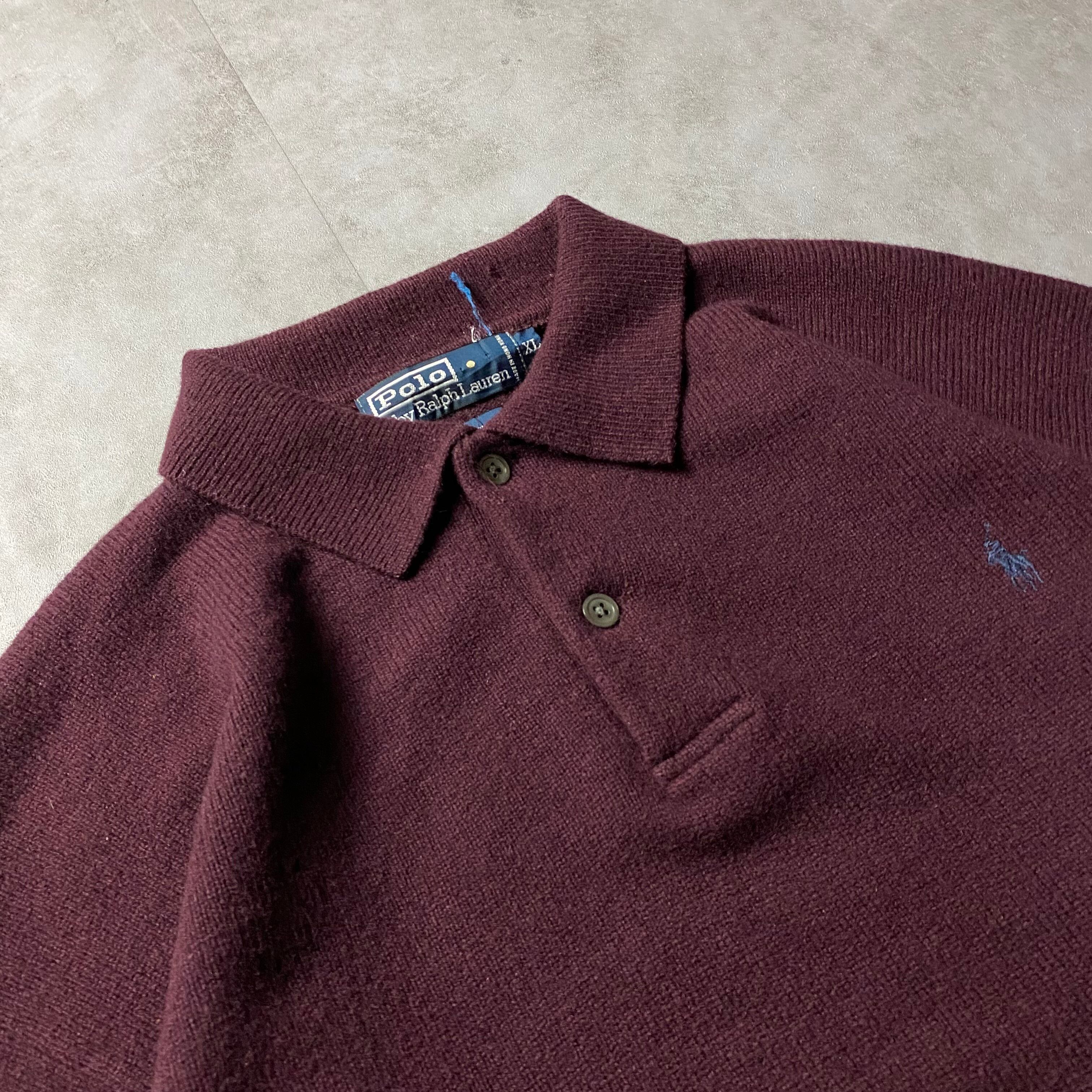 90s Ralph Lauren ニットポロシャツ ラムウール 香港製