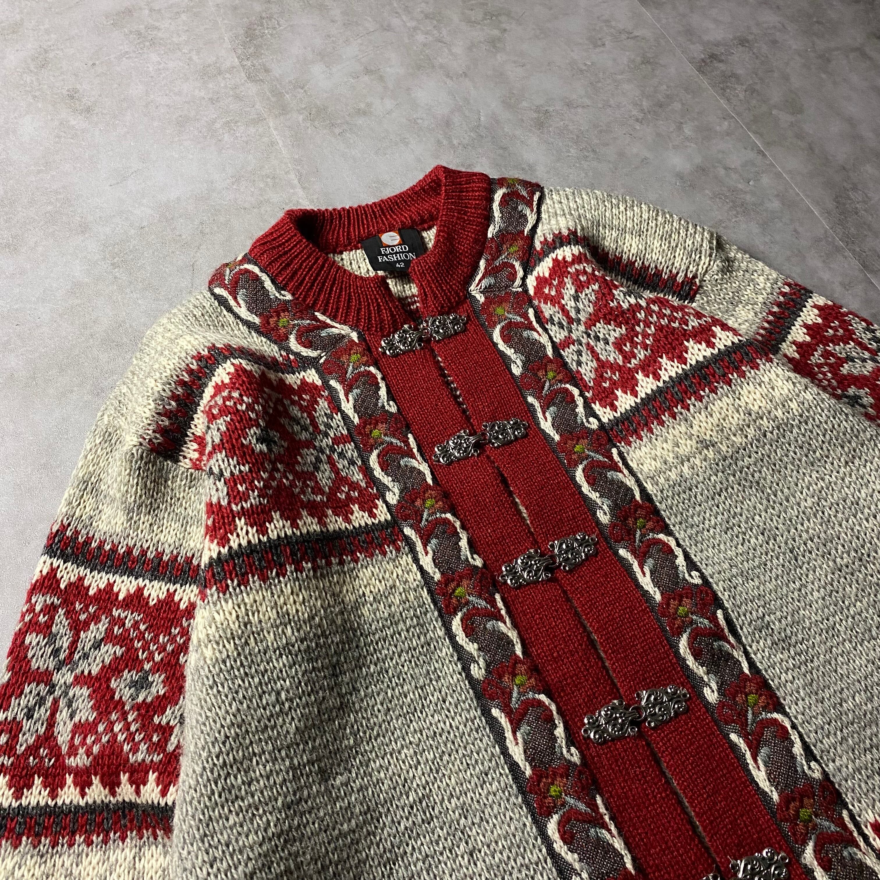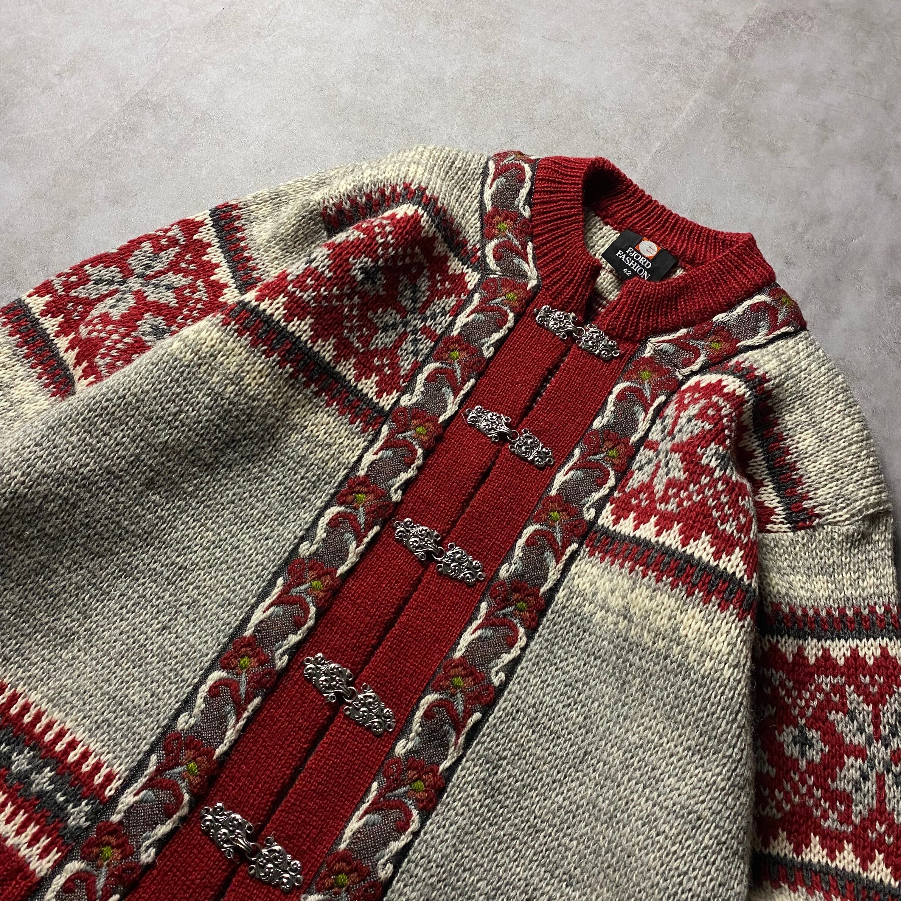 80s FJORD FASHION チロリアン ニット カーディガン ノルウェー製 レディース