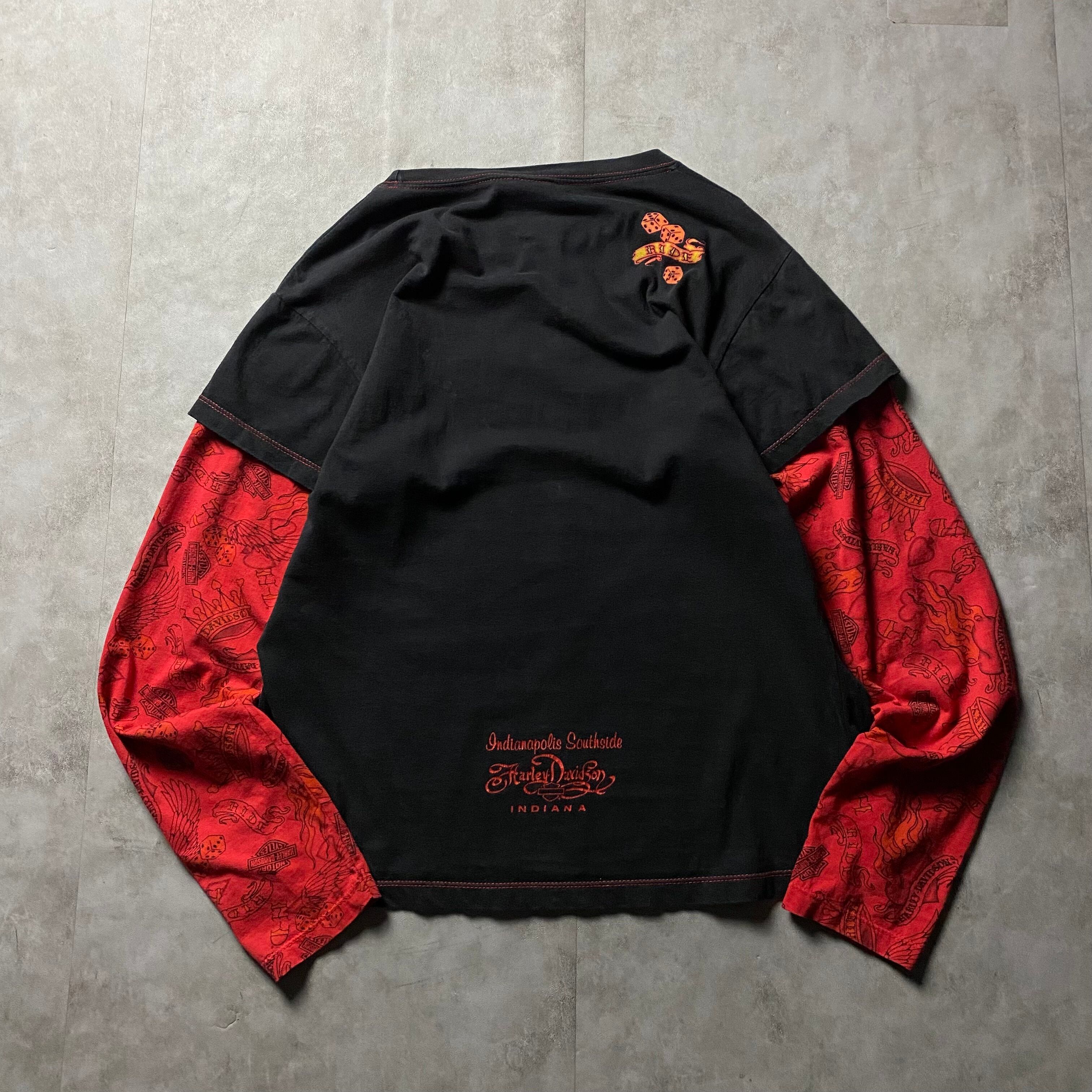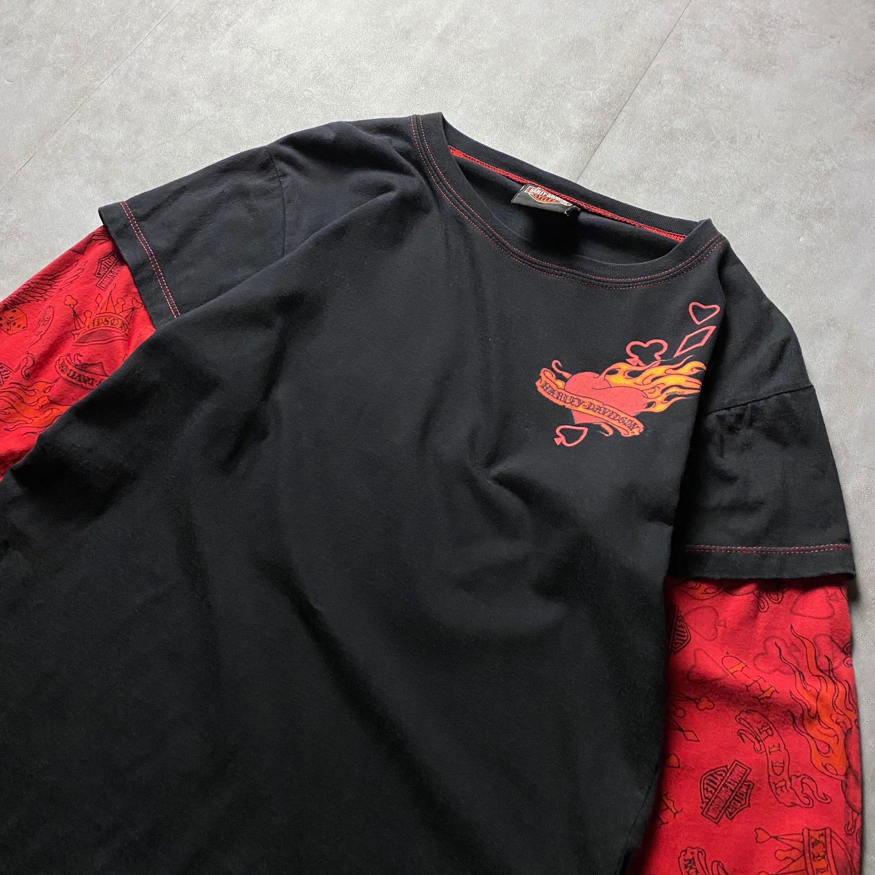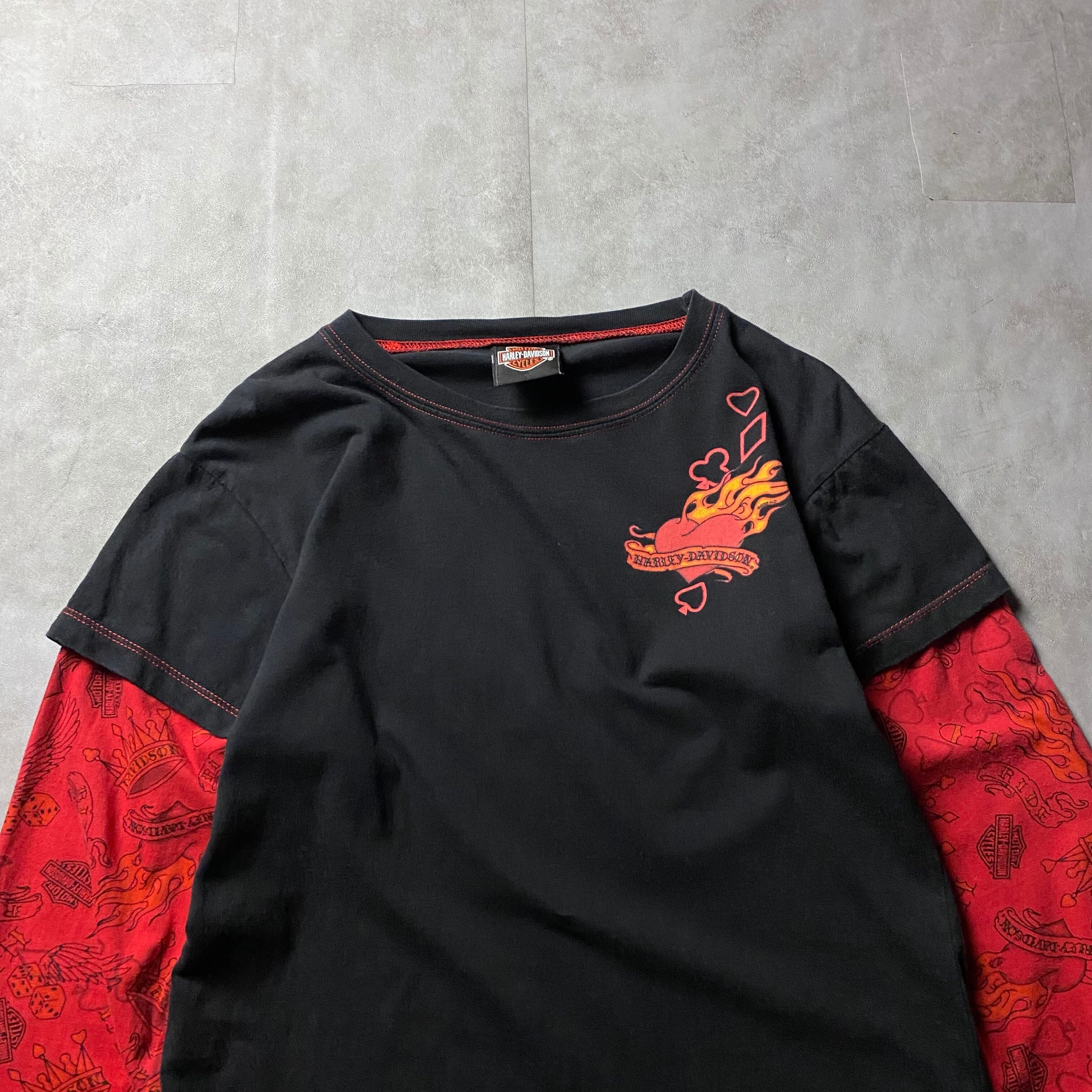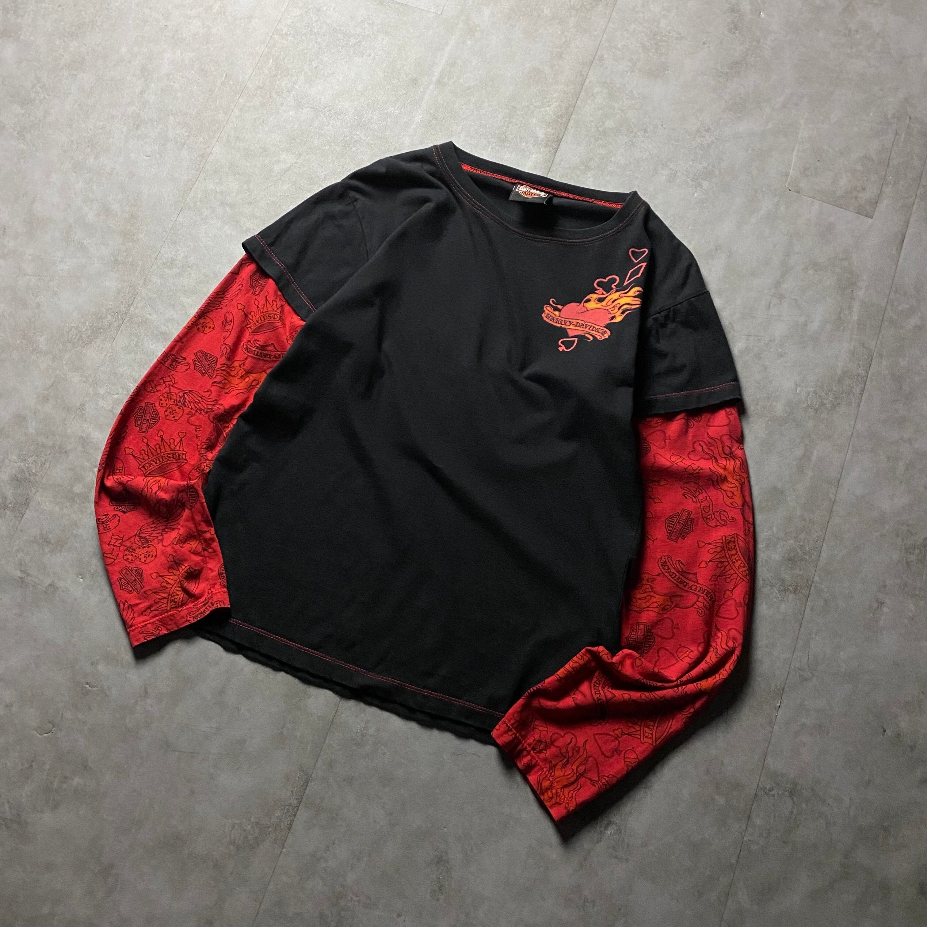 00s Harley-Davidson ロンT y2k ハート 両面プリント