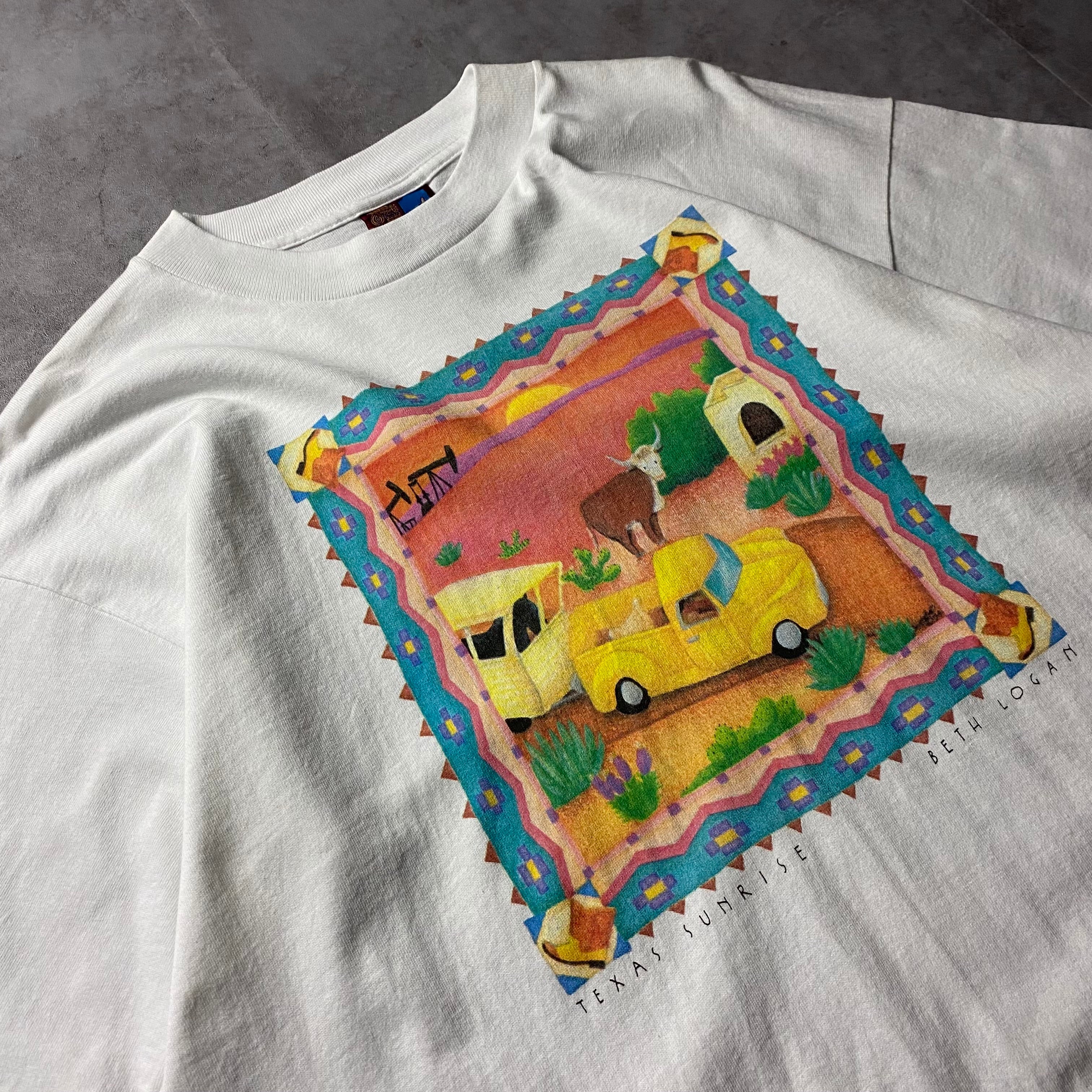 90s USA製 アート 牛 夕焼け Tシャツ シングルステッチ