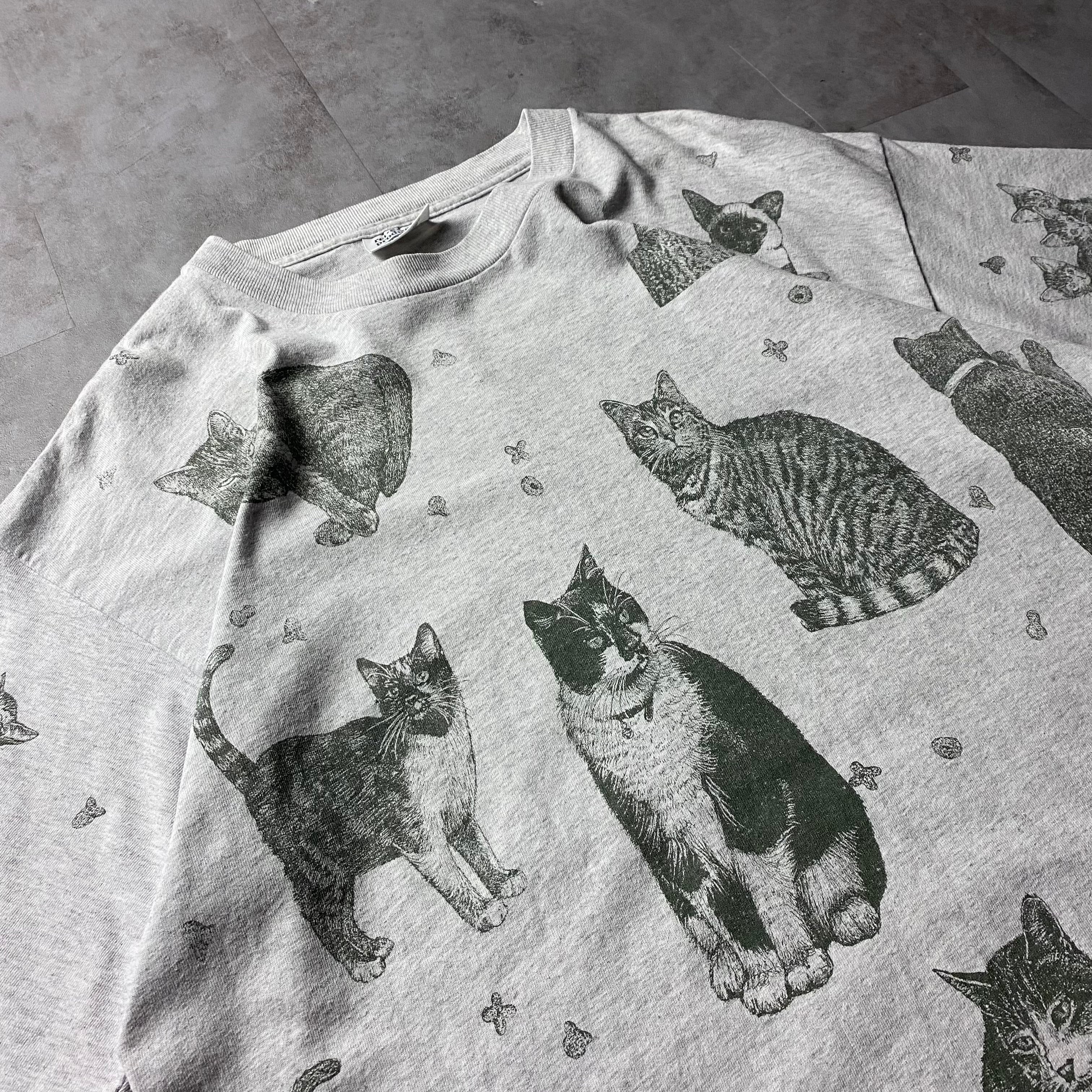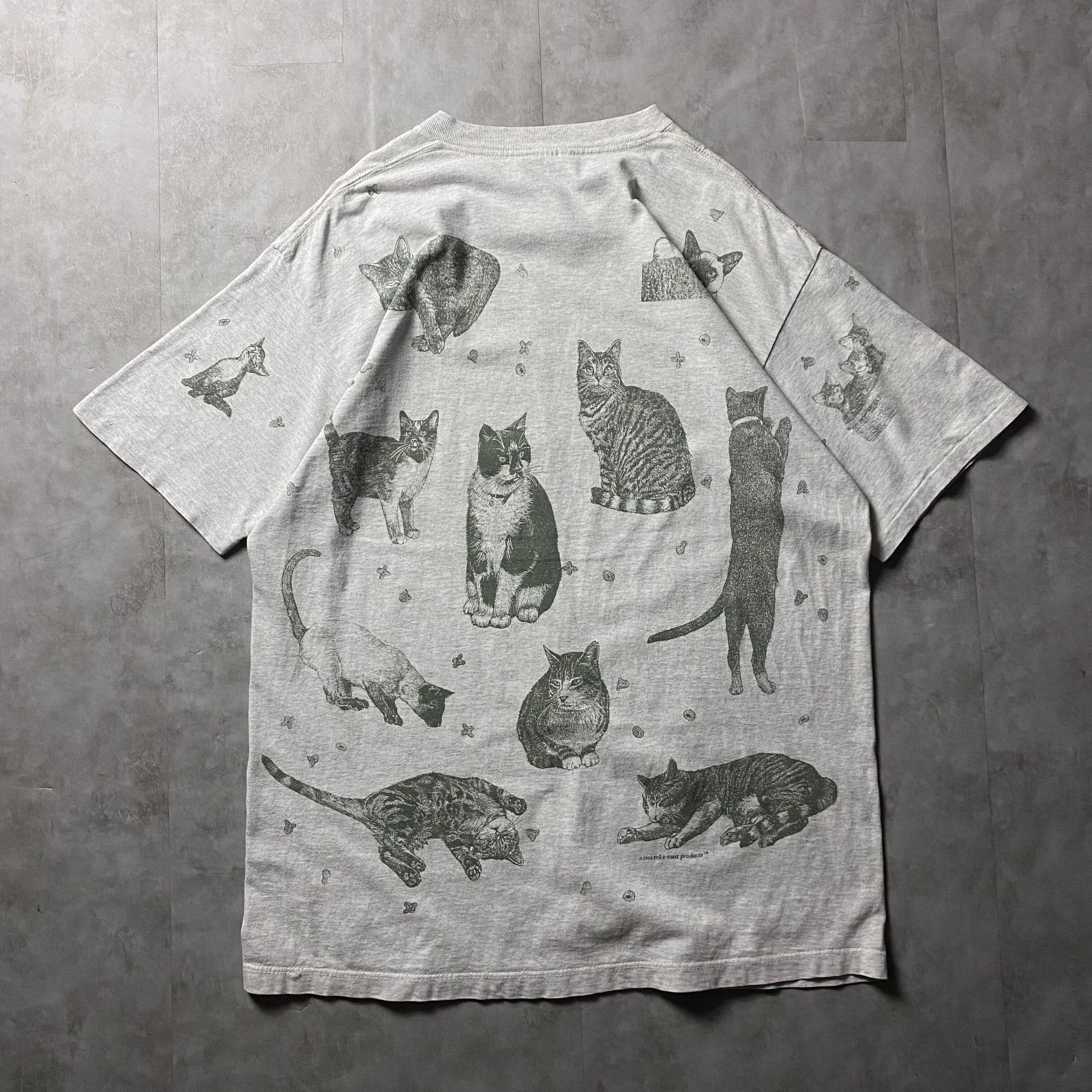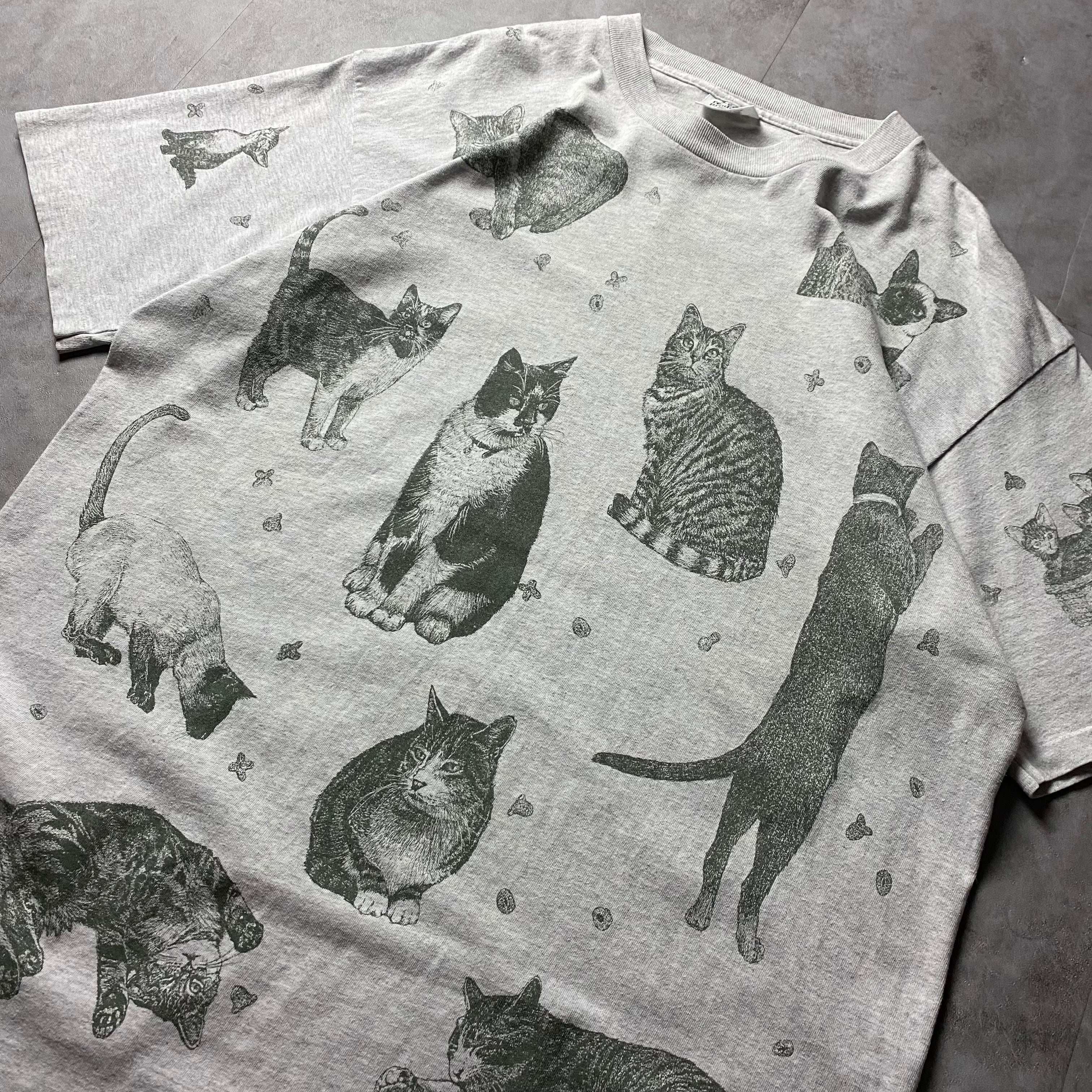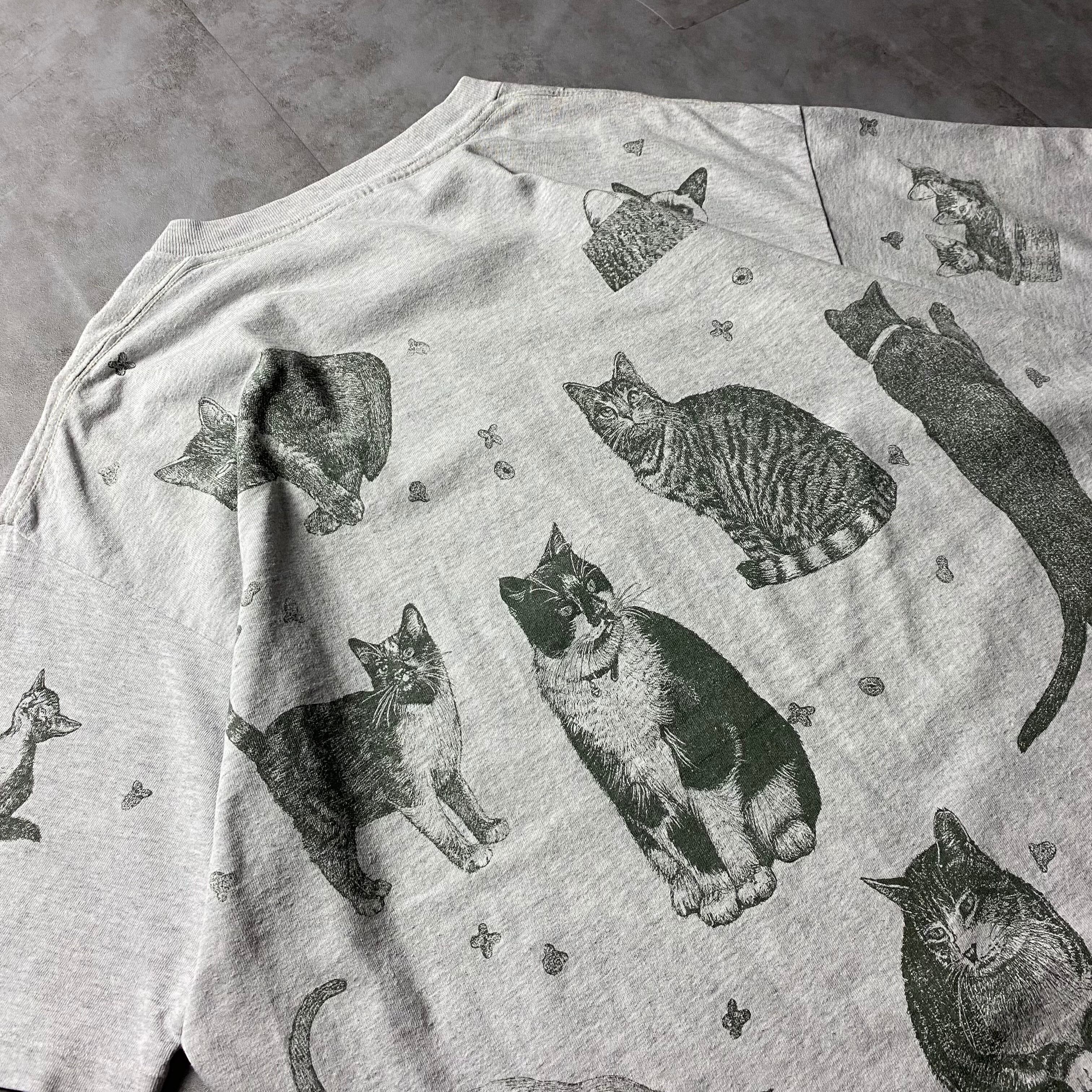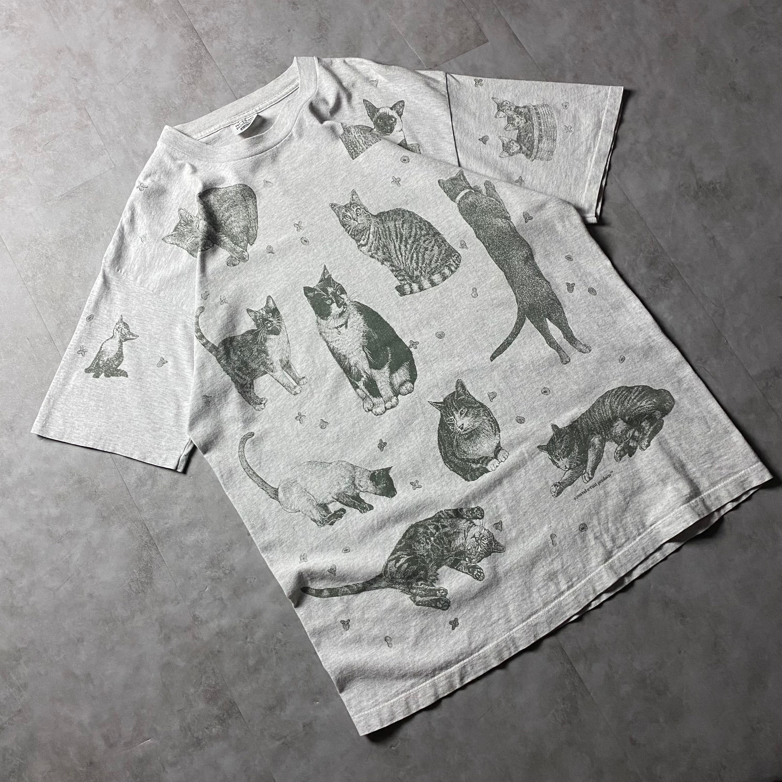 90s USA製 rel e vant products 猫 アート Tシャツ 総柄 シングルステッチ