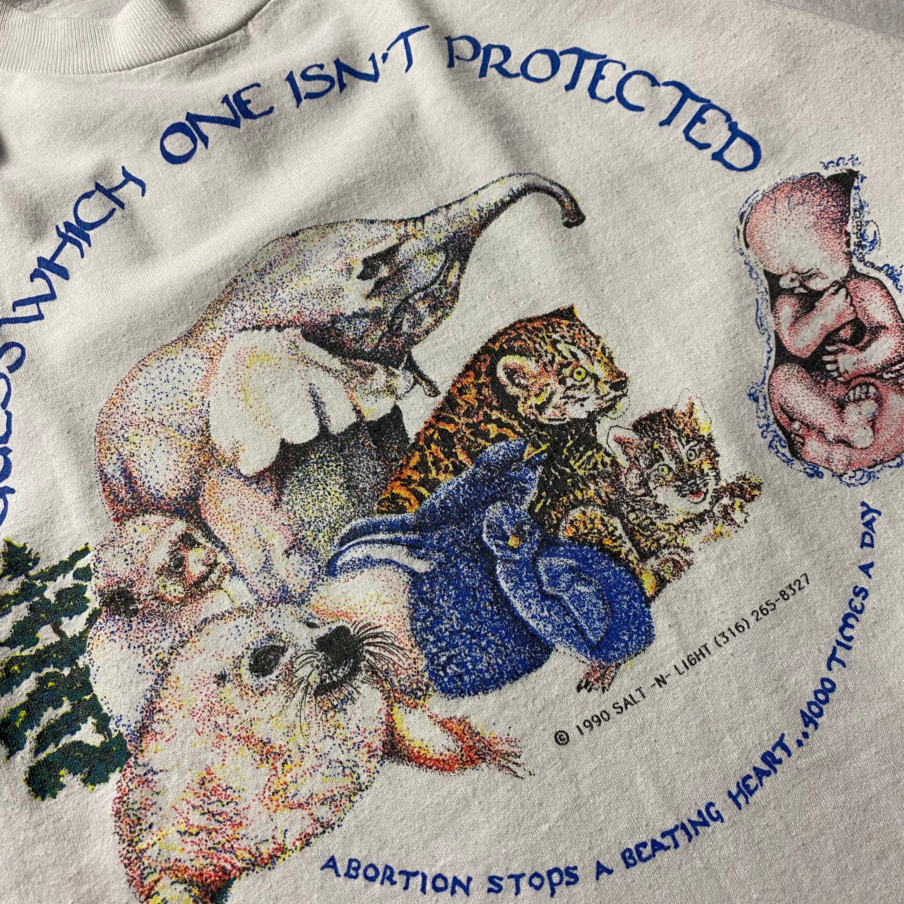 90s USA製 アート 反中絶 メッセージ Tシャツ 胎児 動物