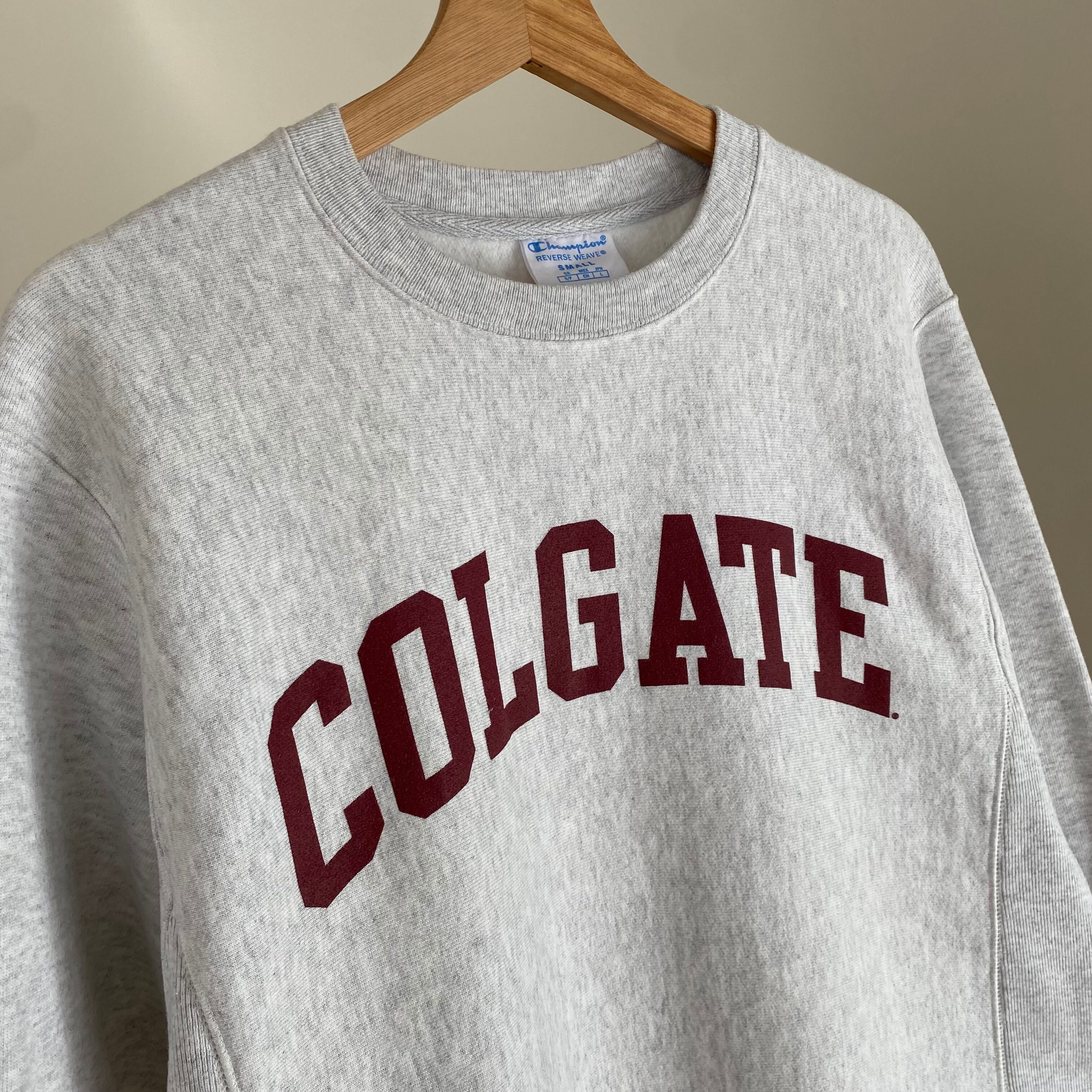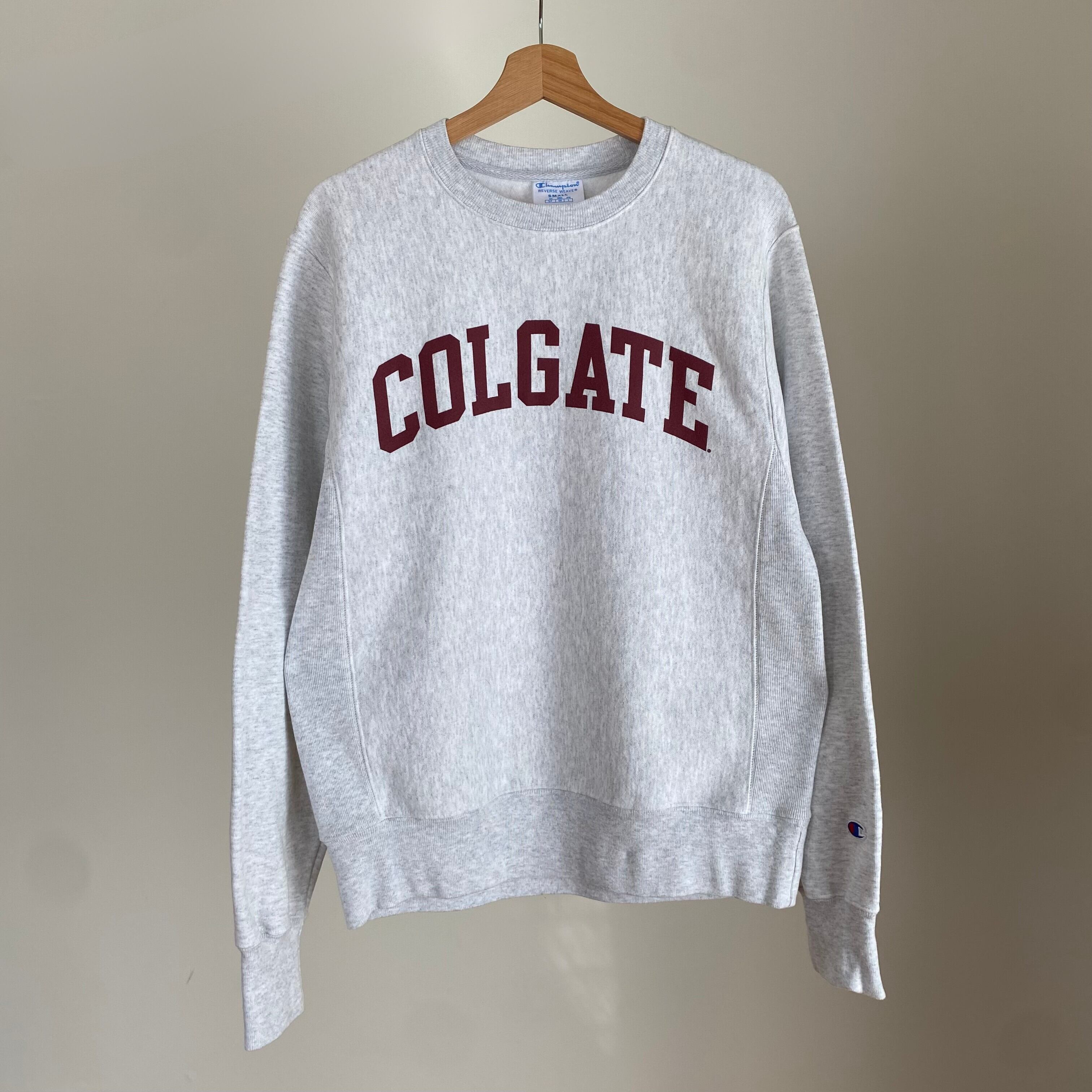 両面にプリントが施されたリバーススウェット。コルゲート大学のカレッジ物になります。