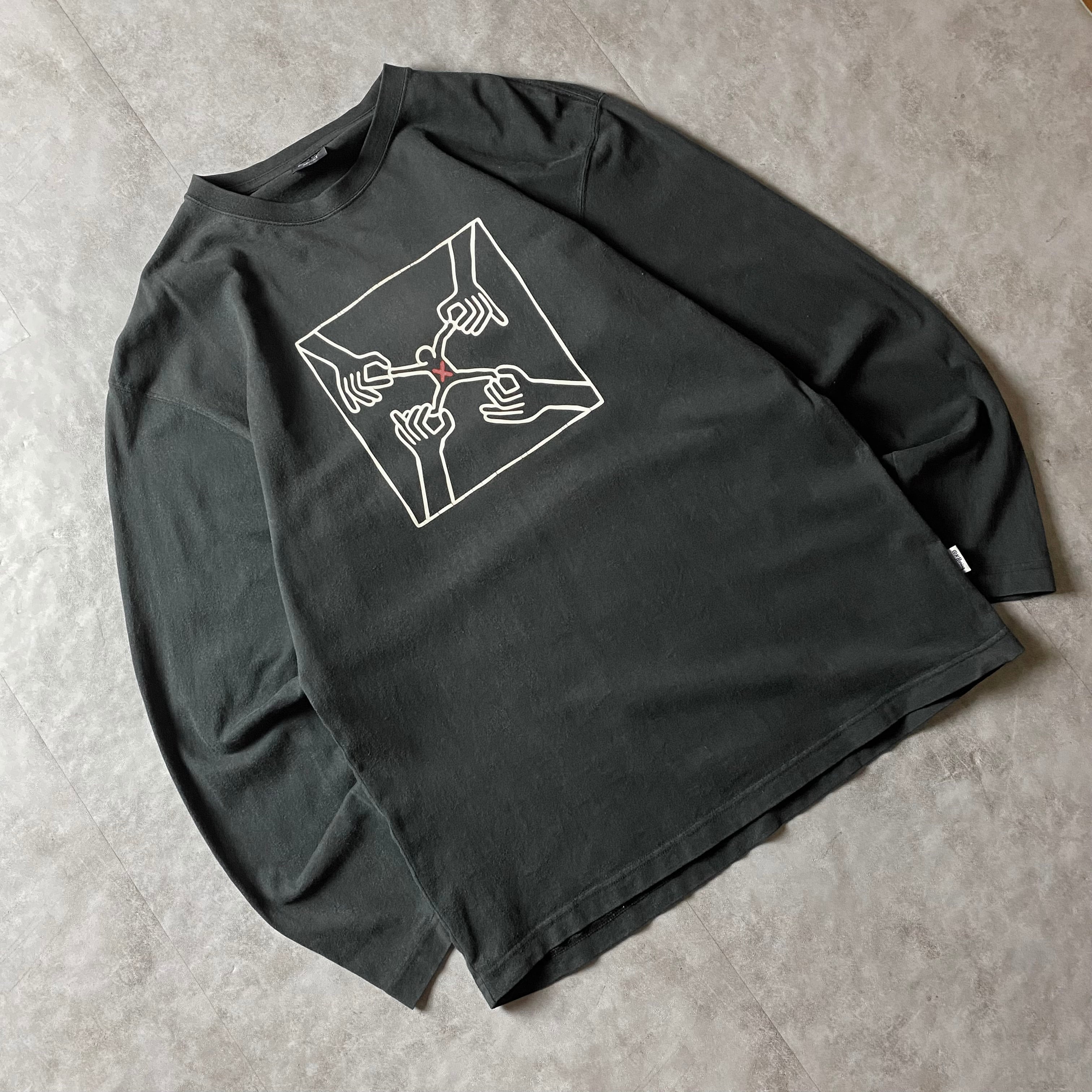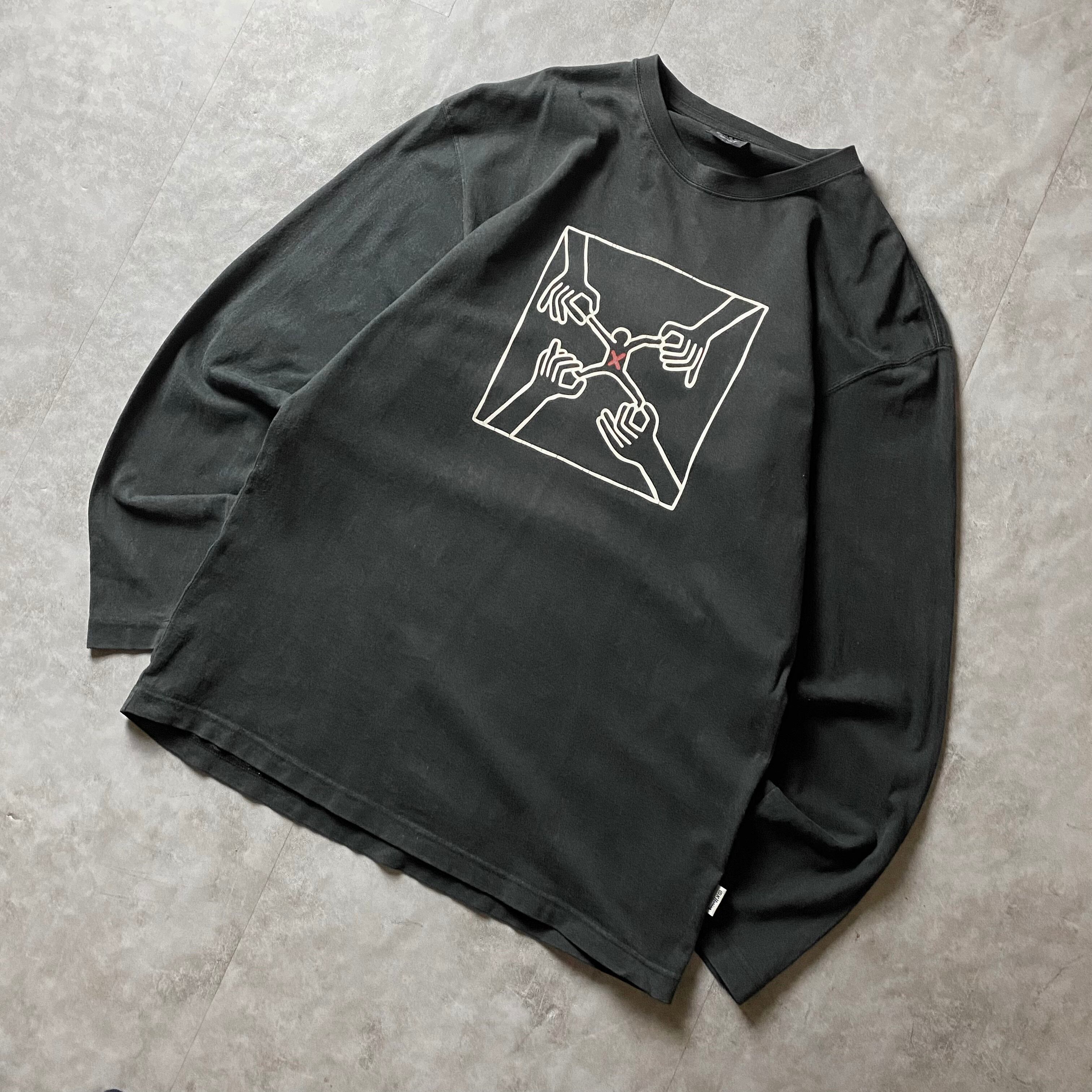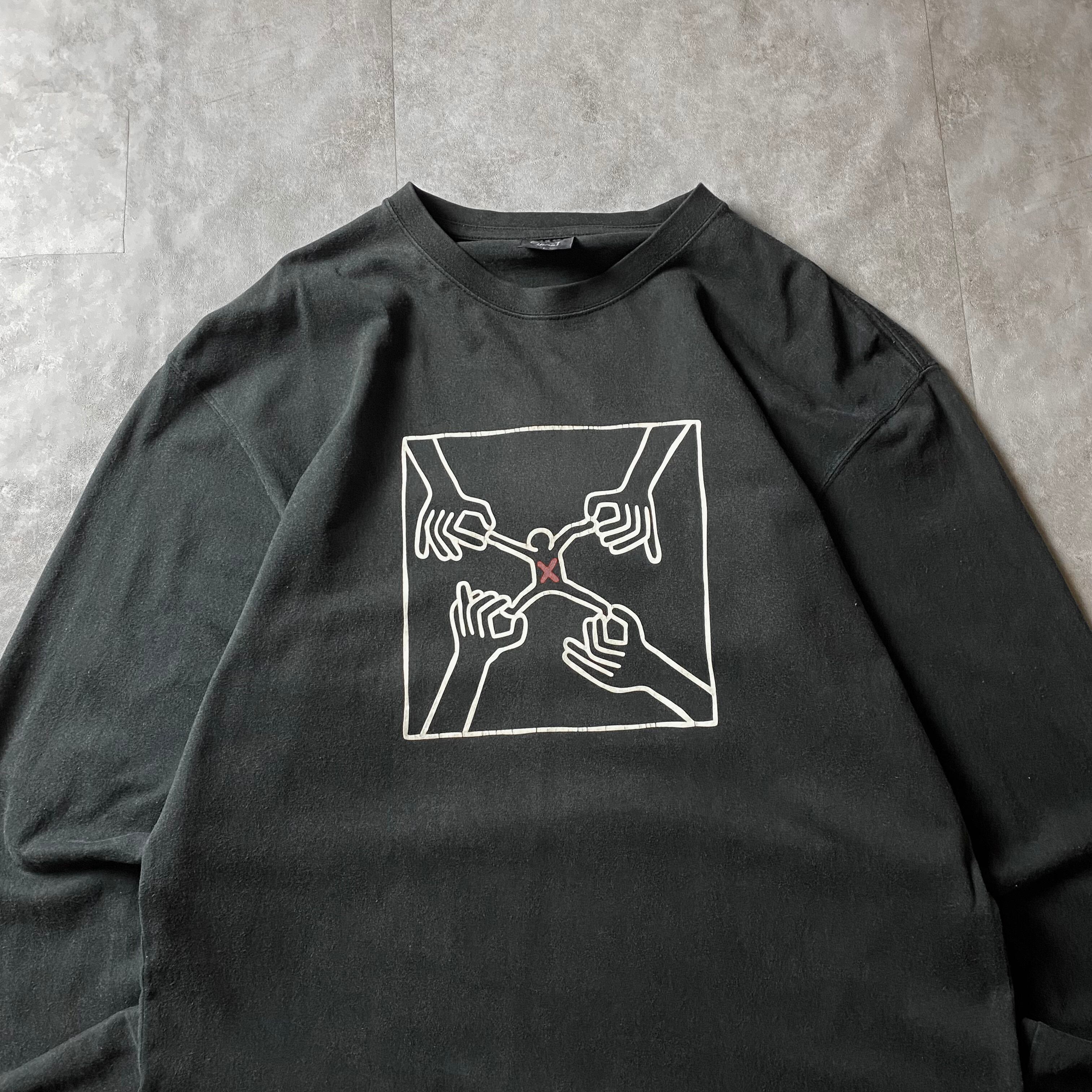 【入手困難】00s Keith Haring アート 芸術 ロンT フェード 黒 キース・ヘリング 長袖 Tシャツ イラスト 両面プリント バックプリント 大判プリント 褪色 フェード