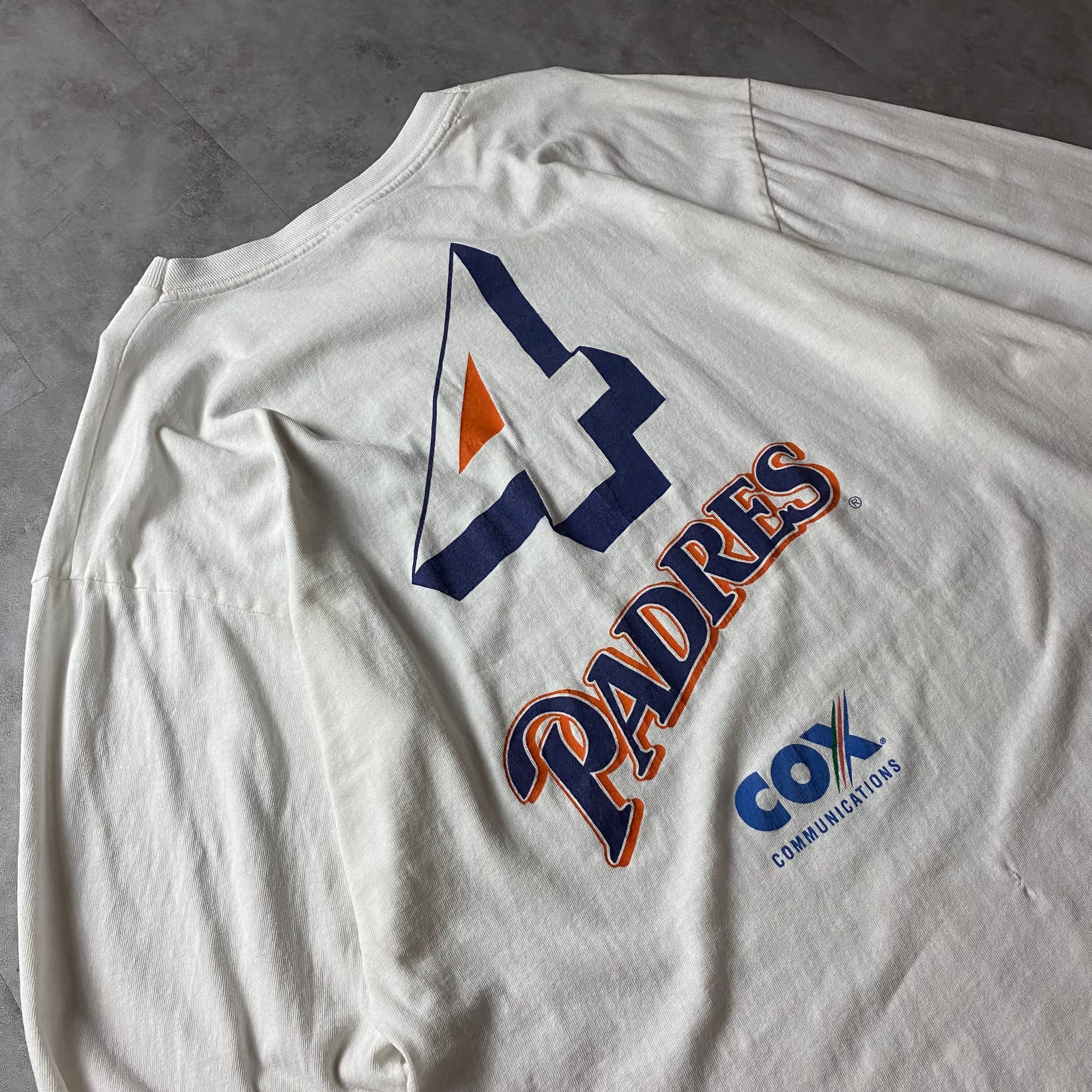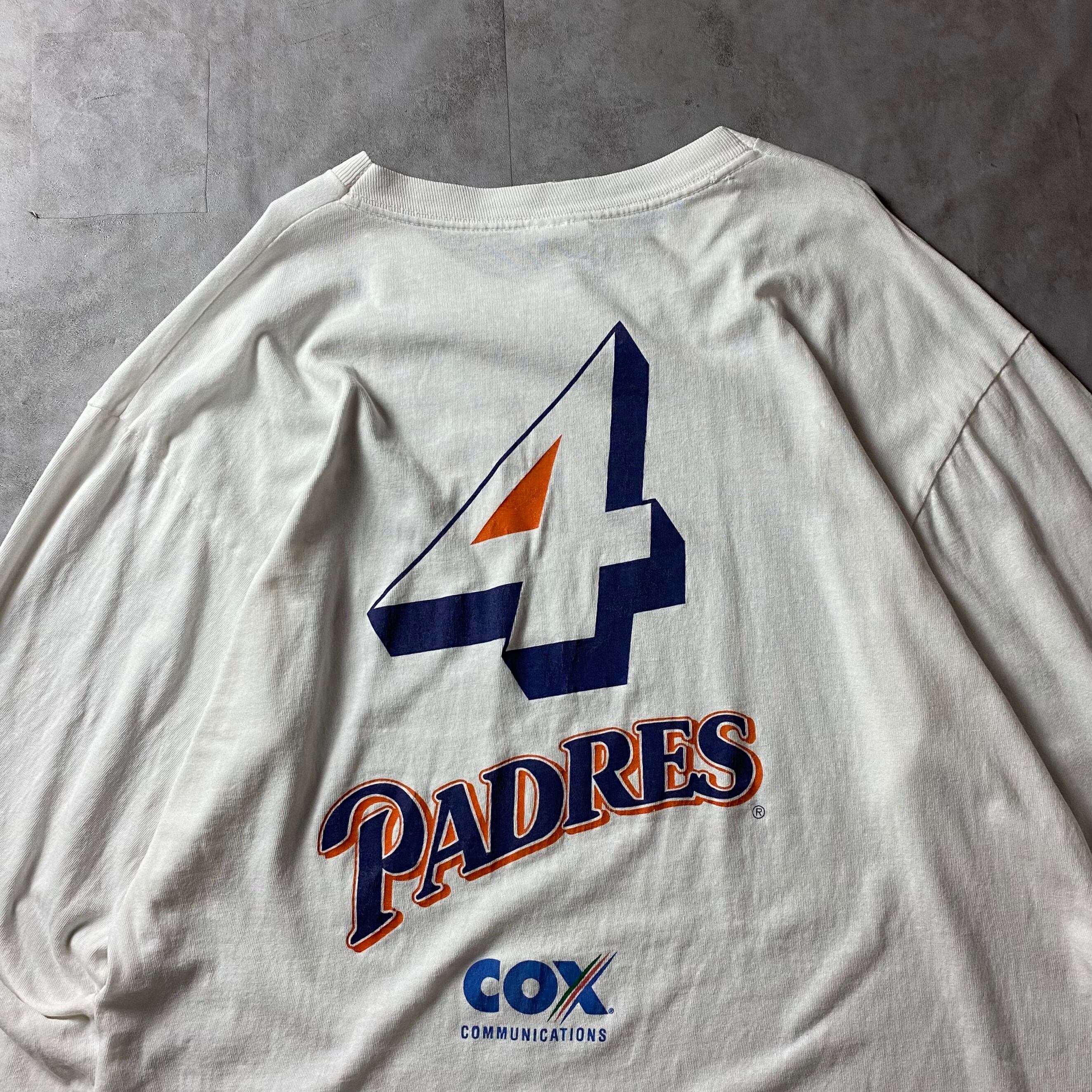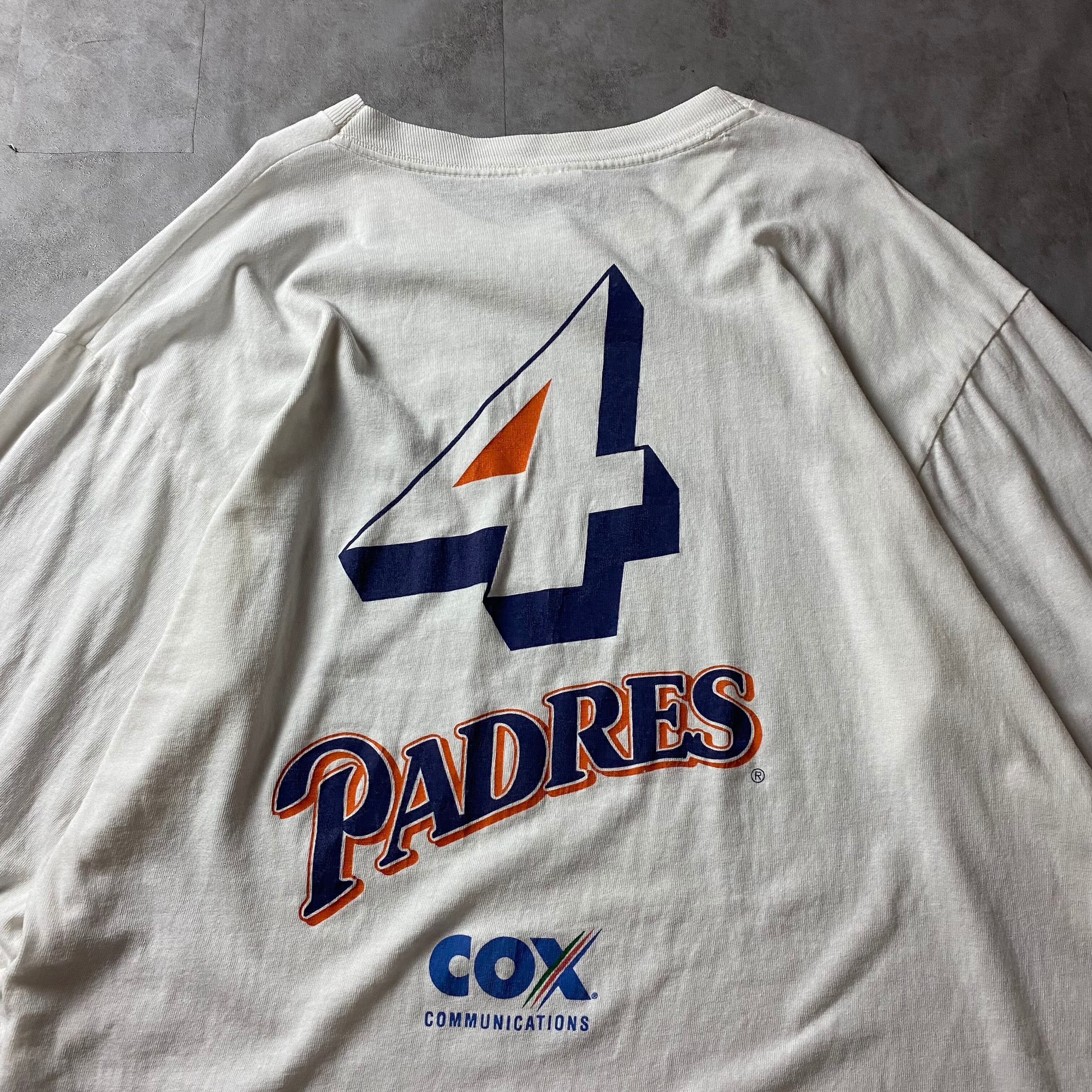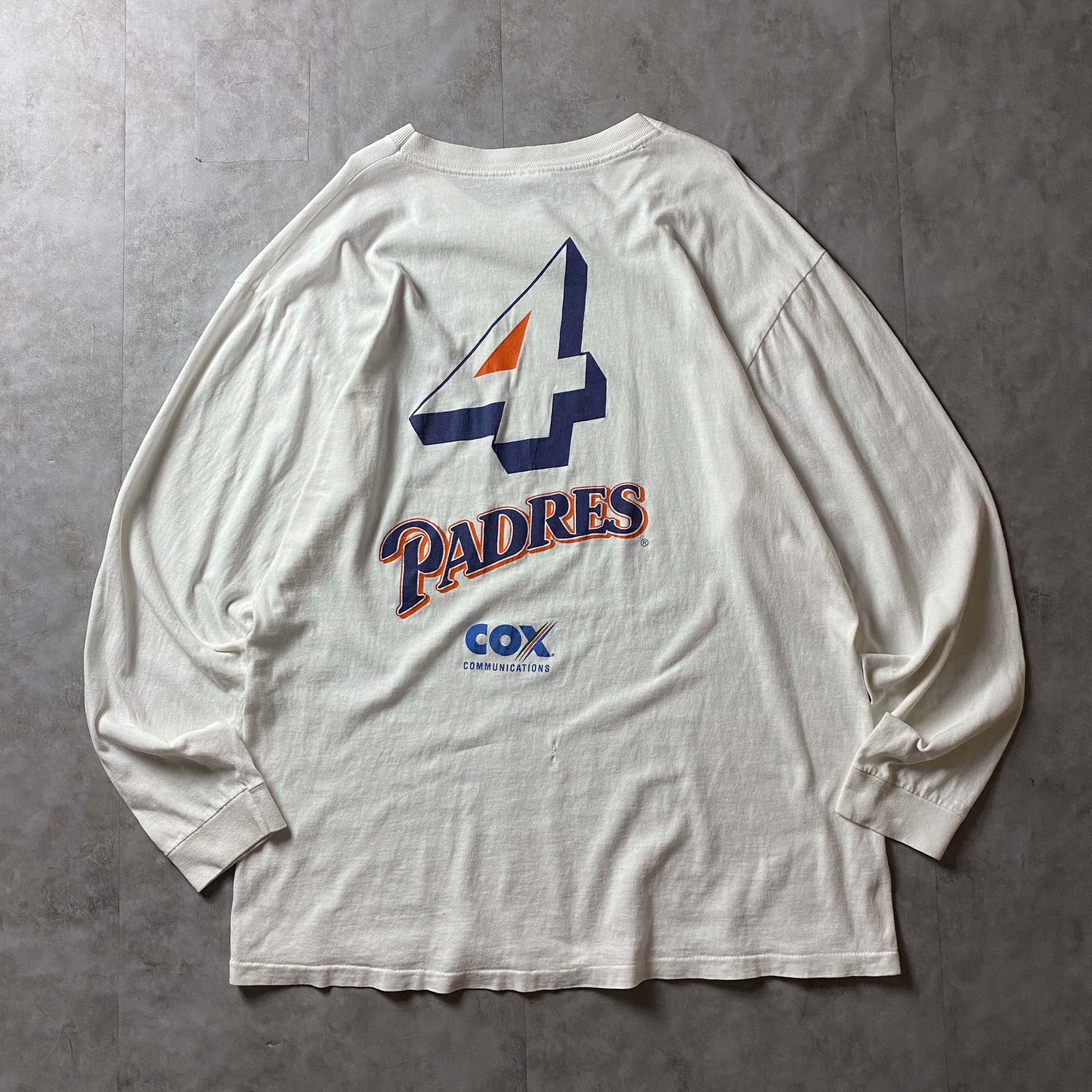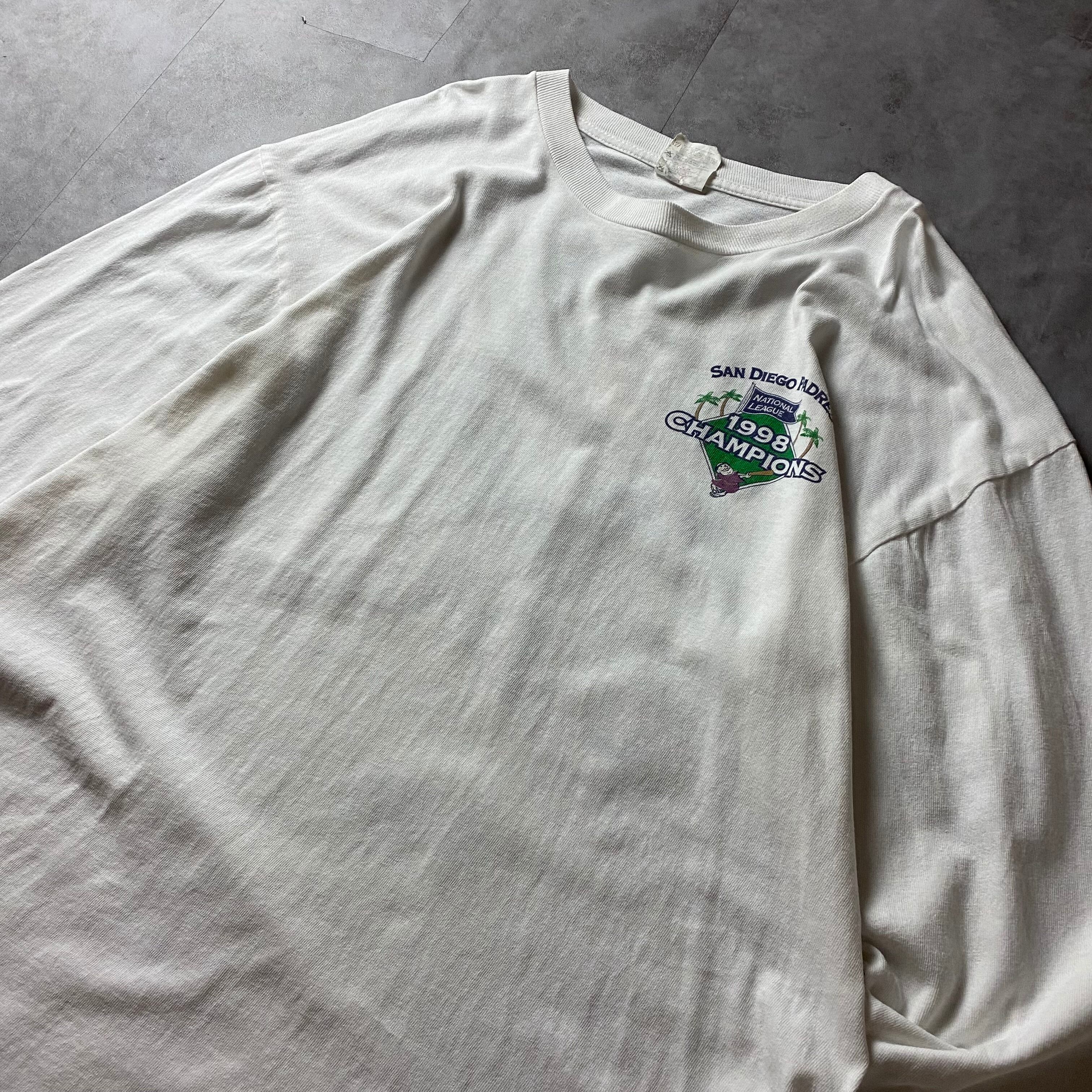 【入手困難】90s MLB サンディエゴ・パドレス 両面プリント ロンT 長袖 シングルステッチ San Diego Padres バックプリント 大判プリント 企業ロゴ 優勝記念 1998 Champion長袖 Tシャツ vintage ビンテージ USA製 生地