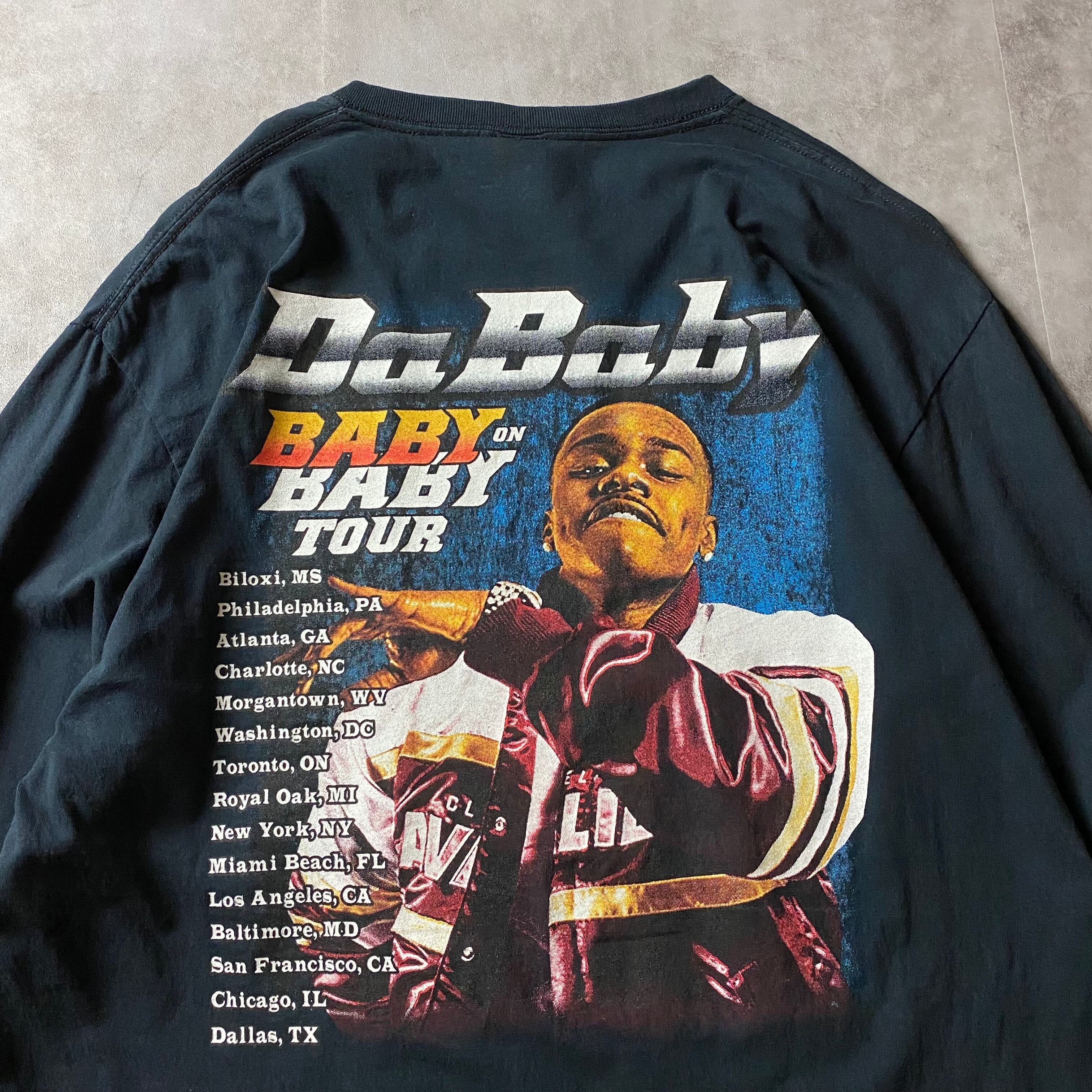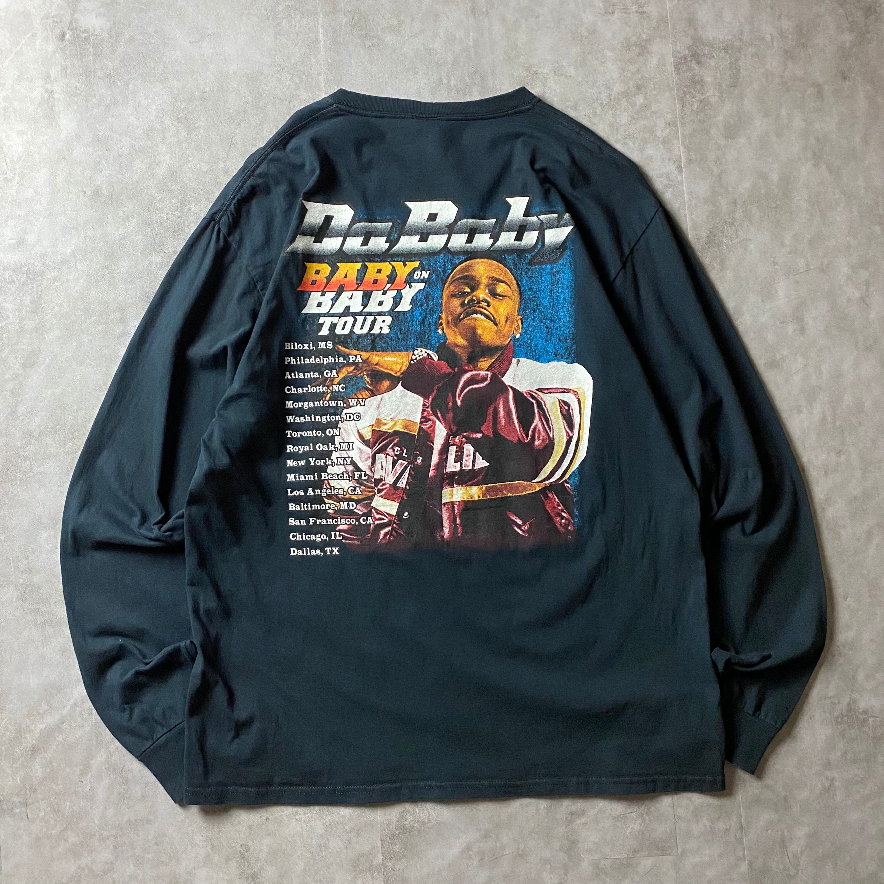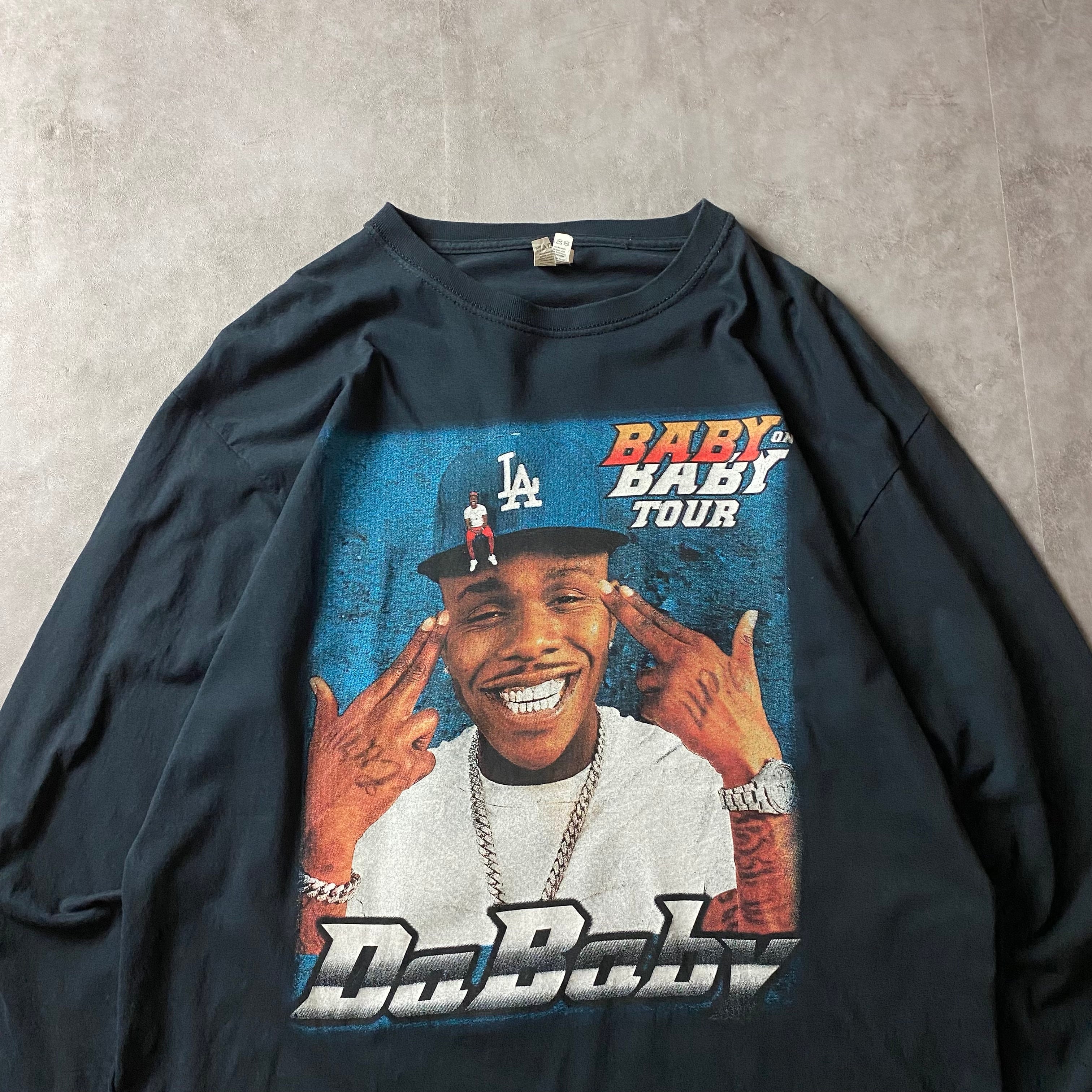【入手困難】ラッパー DaBaby 2019 ツアーTシャツ 長袖 両面プリント ダベイビー ロンT ラップ バックプリント 大判プリント ツアー Tシャツ ドジャース キャップ 写真 フォトプリント