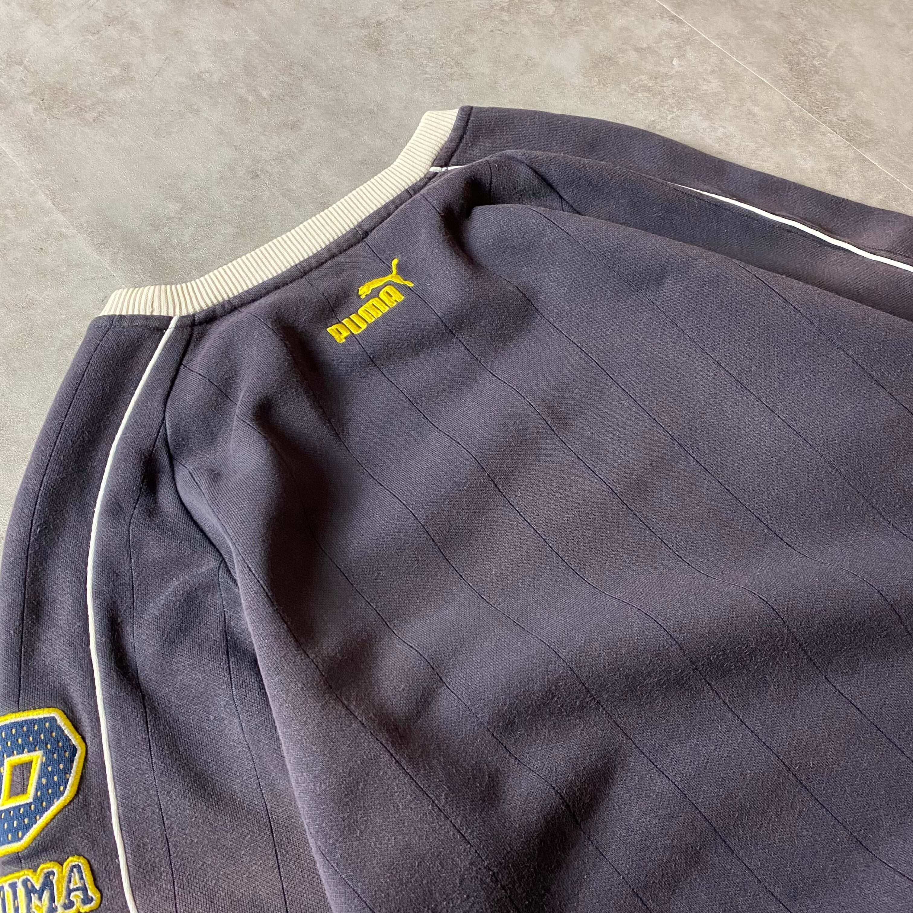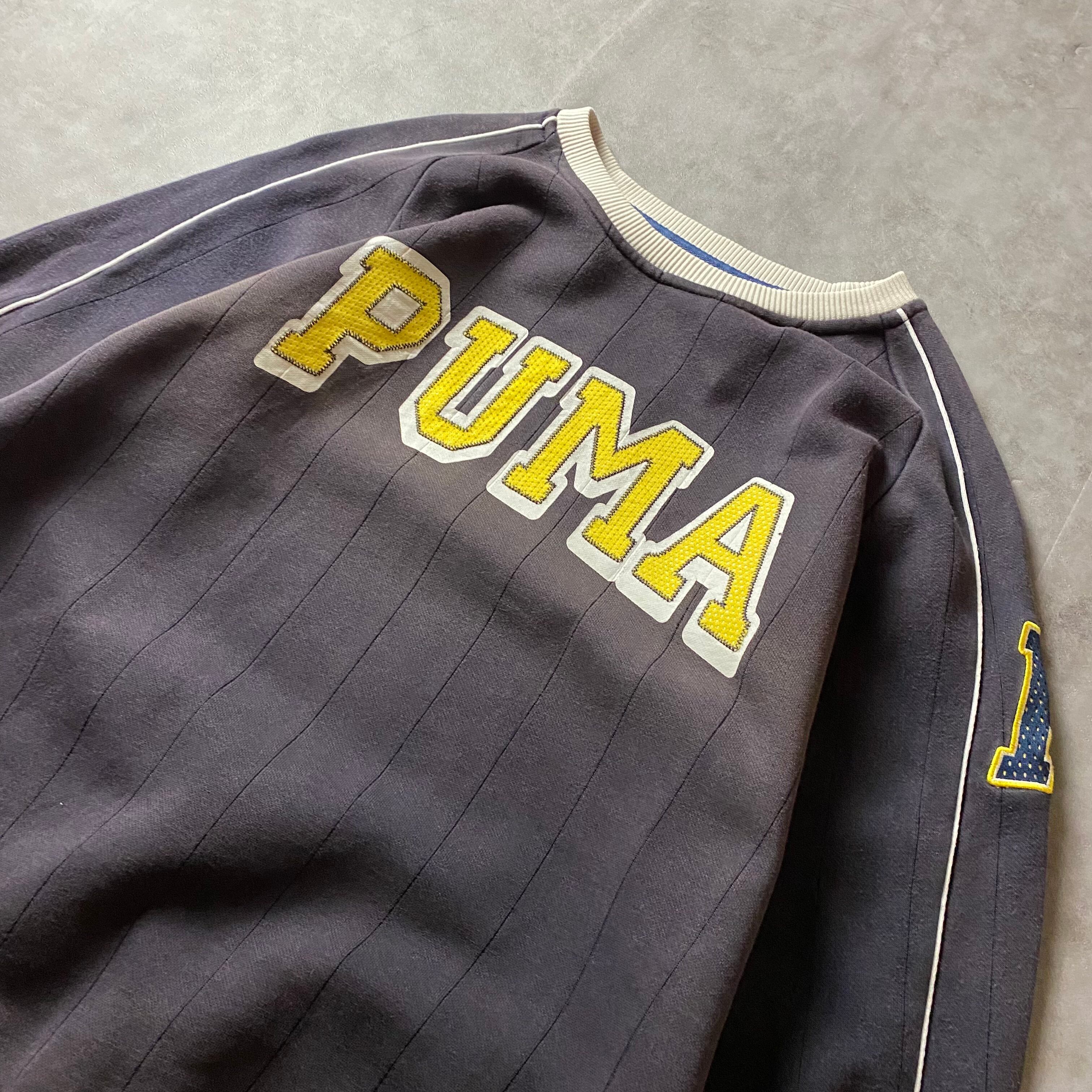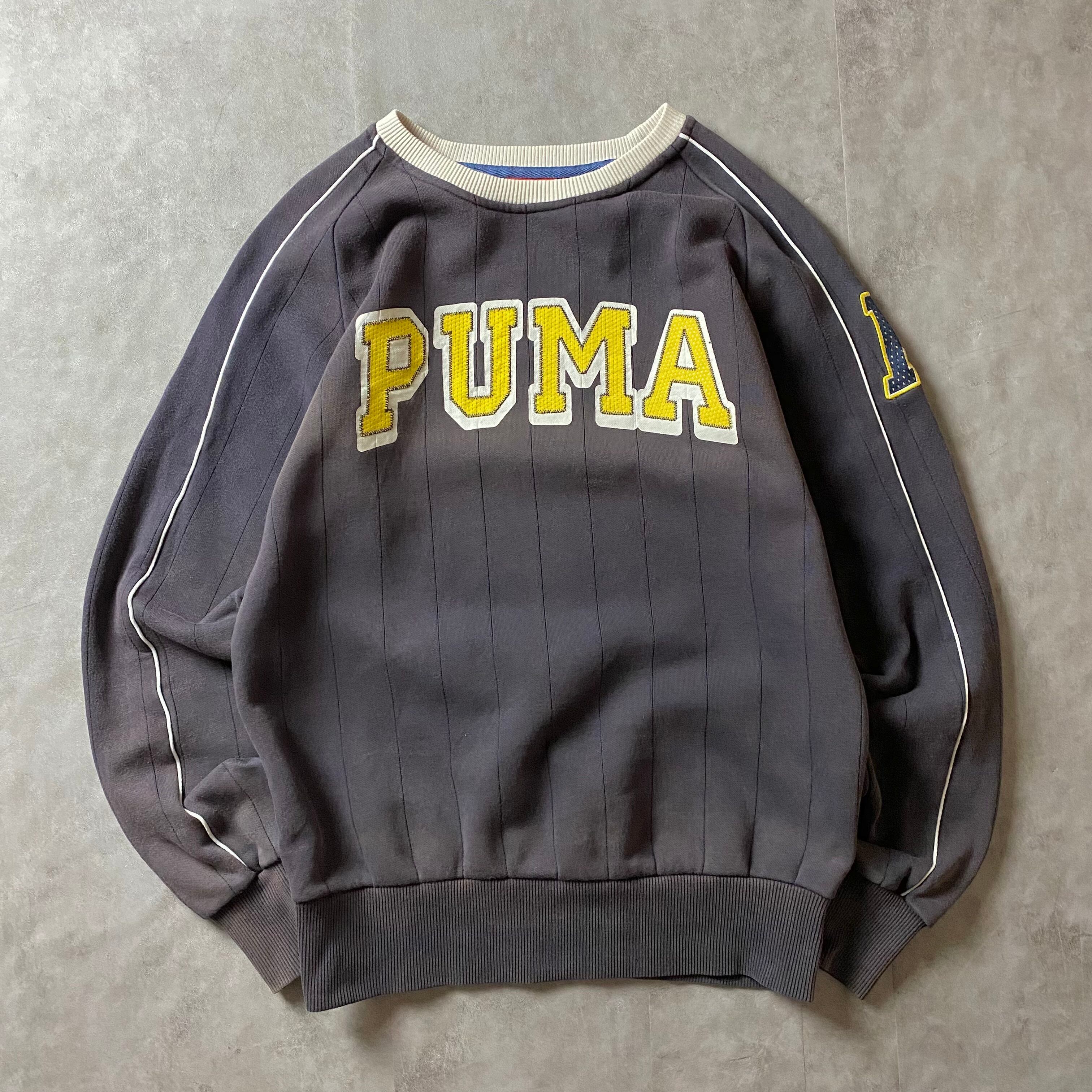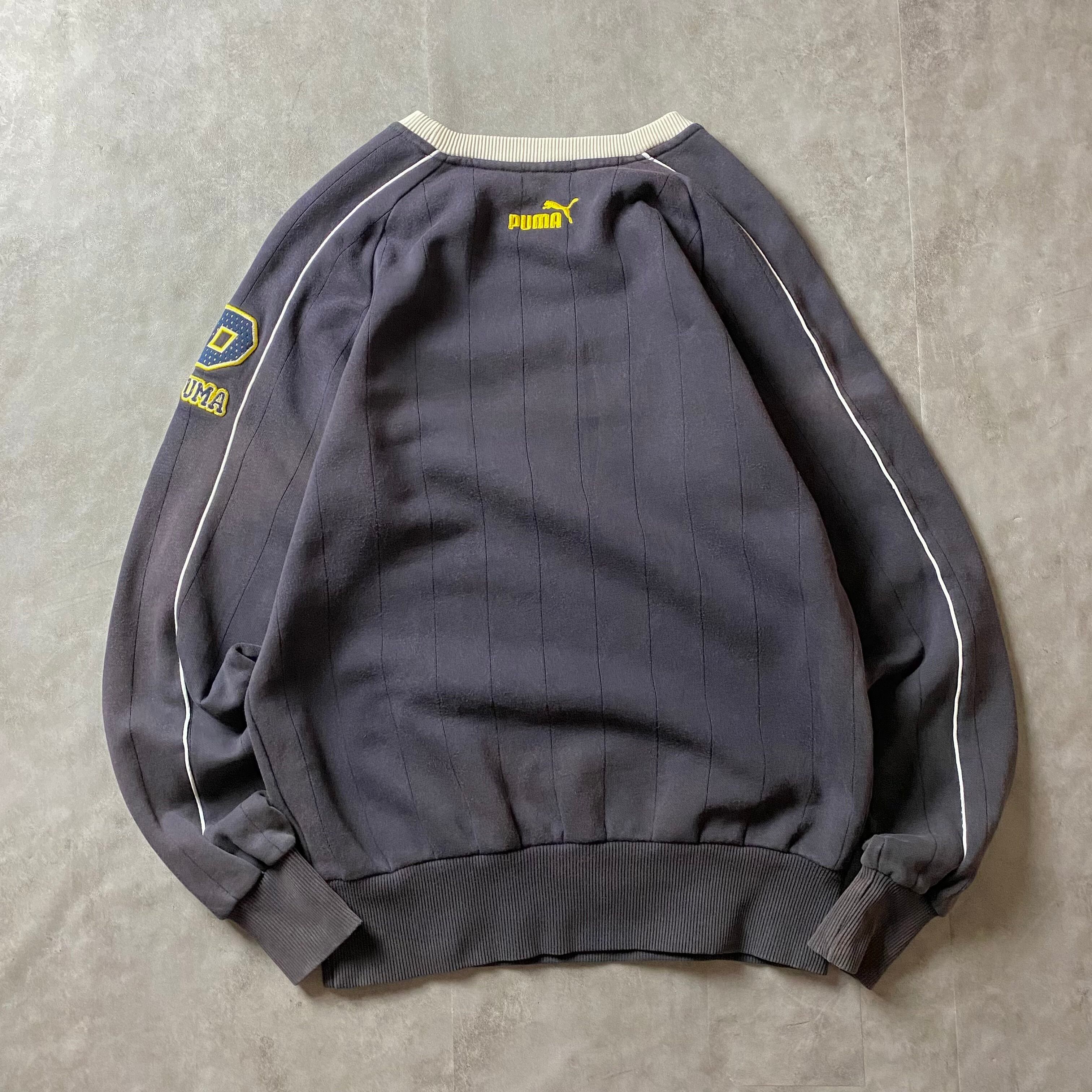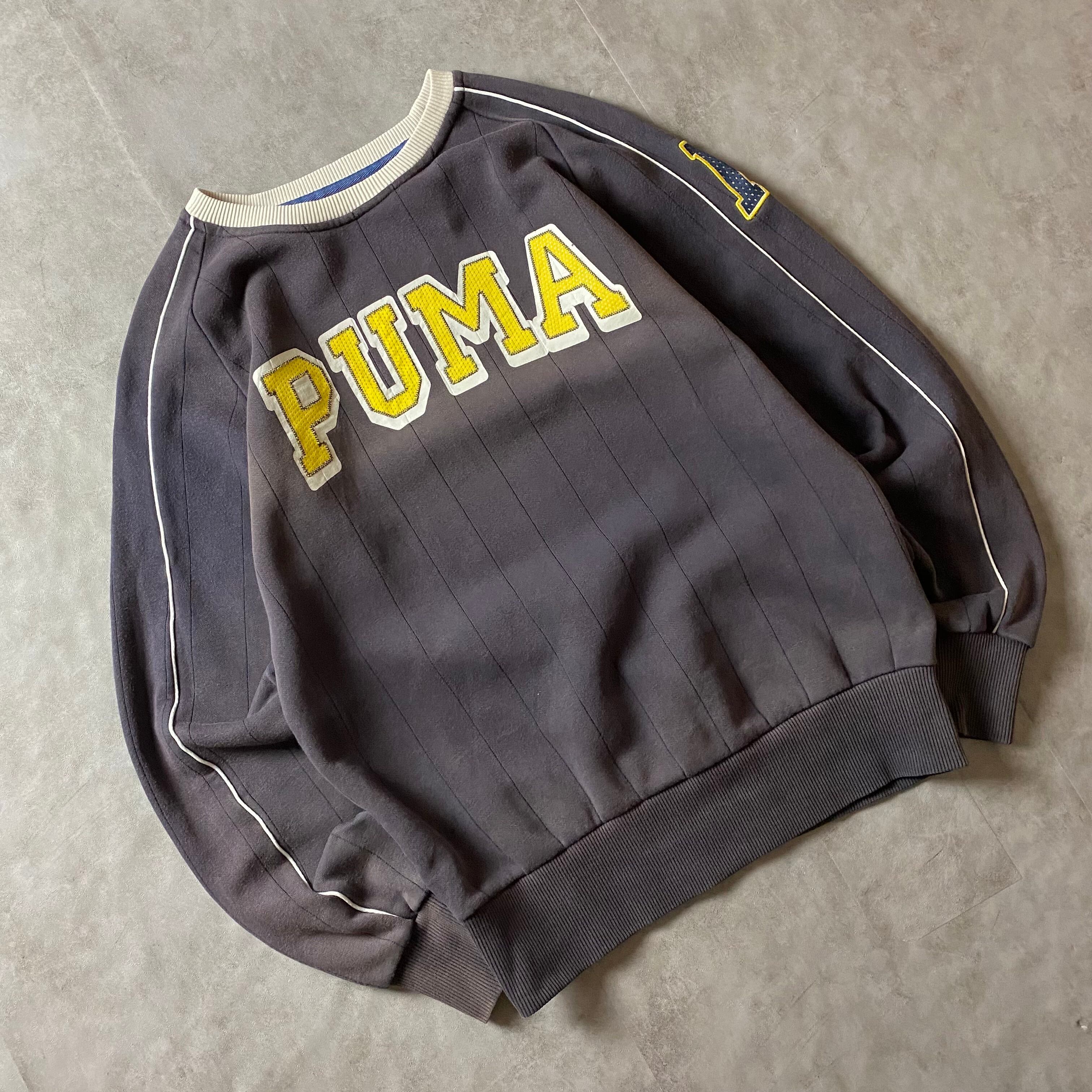 PUMA スウェット y2k 茄子紺 フェード 刺繍ロゴ 平成 個性派 プーマ バック刺繍 大判プリント グランジ 00s ファッション サブカル トレーナー