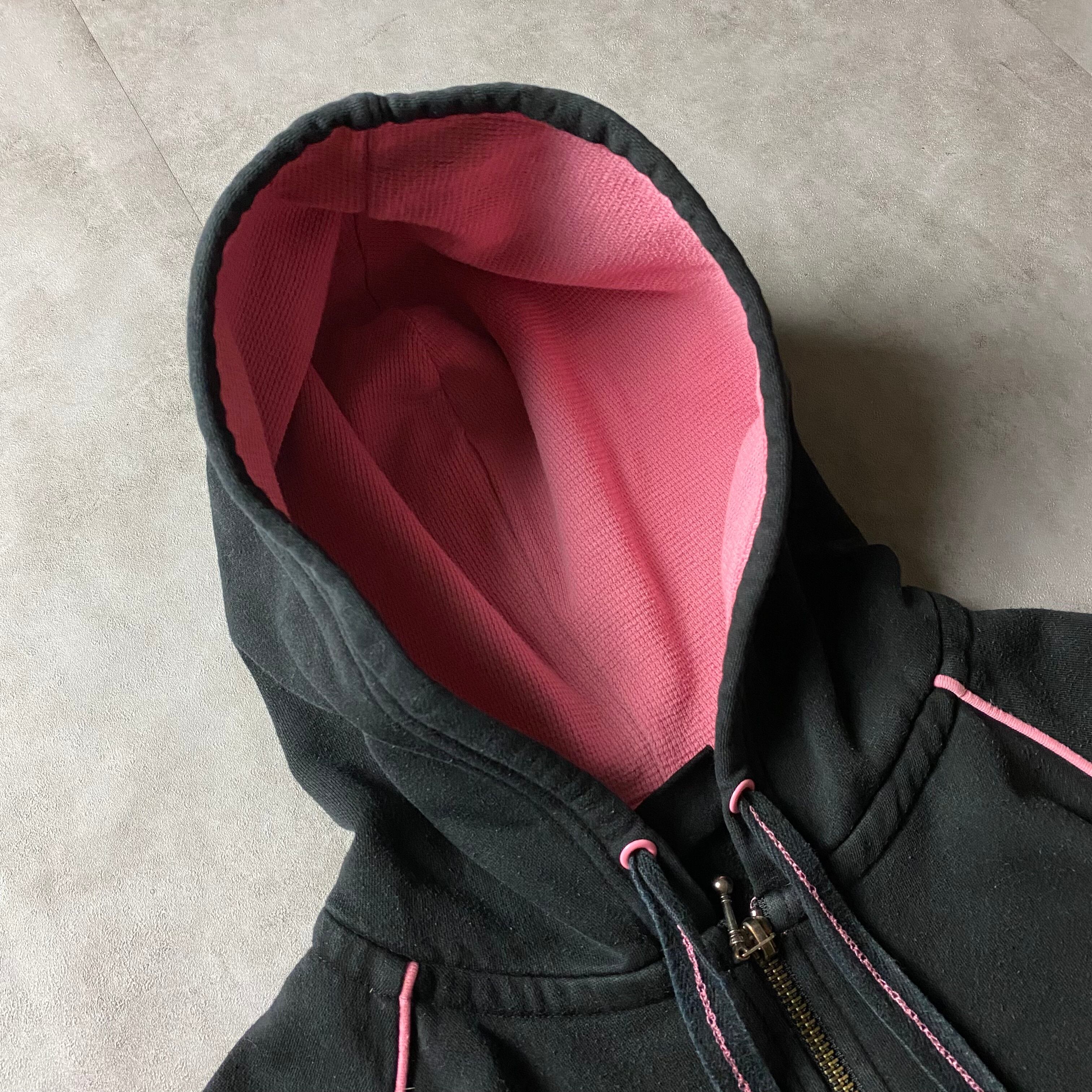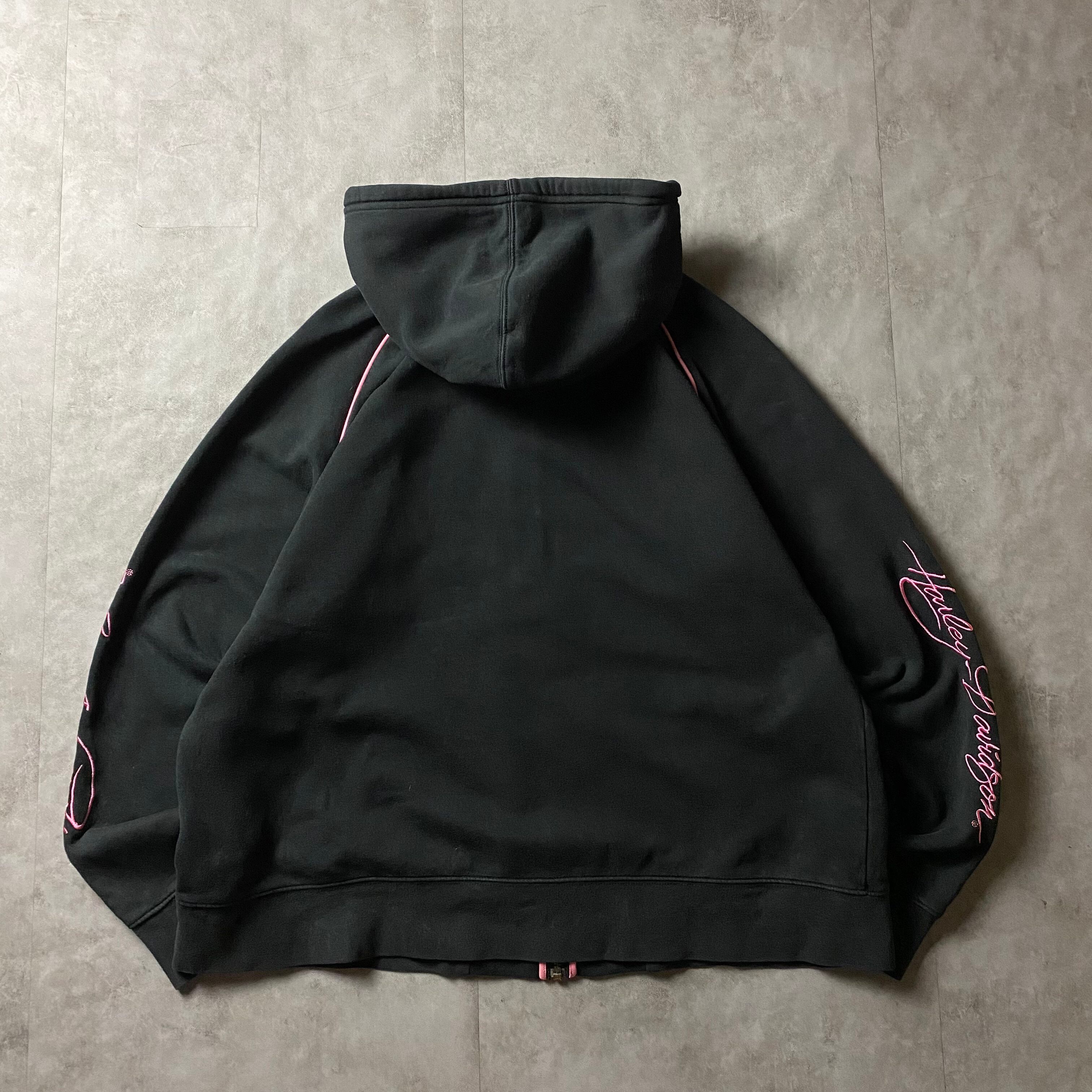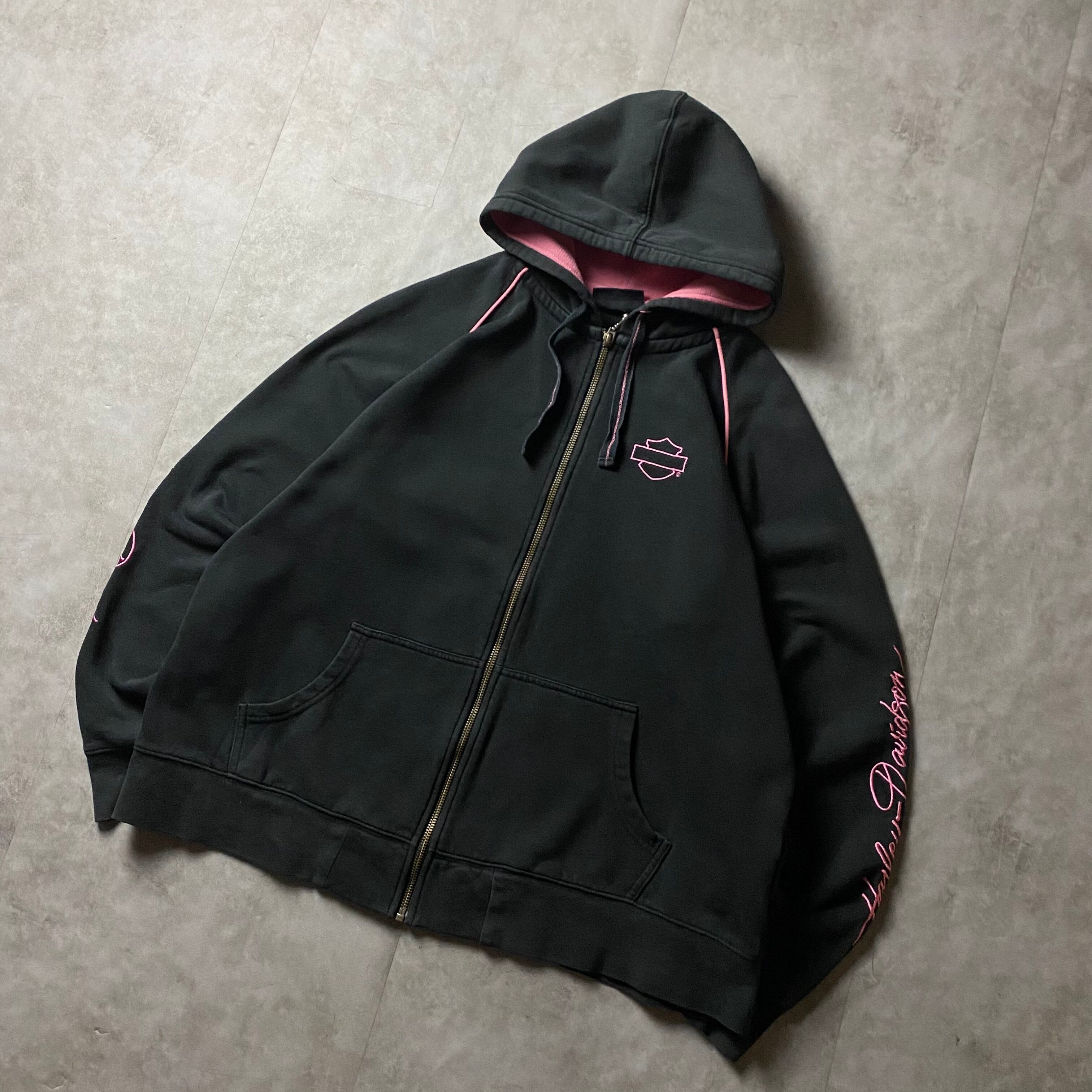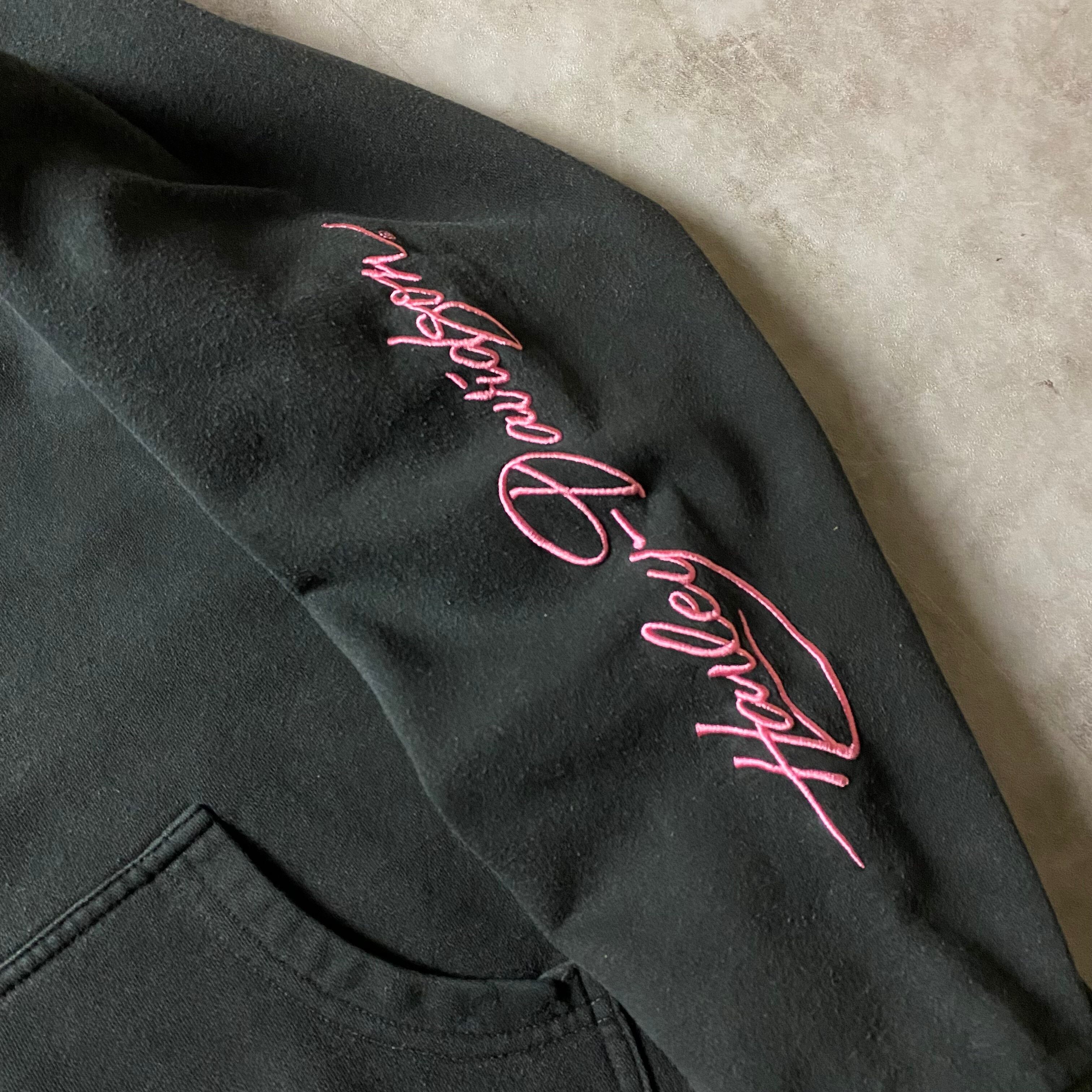 y2k Harley-Davidson 刺繍ロゴ フルジップ パーカー ピンク 2トーン ジップアップ スウェット トレーナー フーディー グランジ フェアリーグランジ 00s ファッション スリーブロゴ フェード