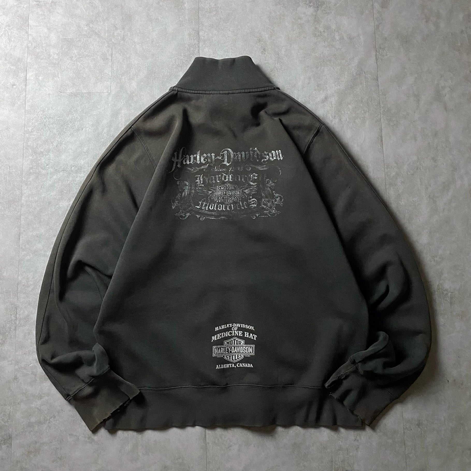 00s Harley-Davidson トラックジャケット 鬼フェード ハーレーダビッドソン フェード 襤褸 ボロ ダメージ 両面プリント バックプリント 大判プリント ジャージ スウェット トレーナー グランジ フェアリーグランジ 00s ファッション スカル