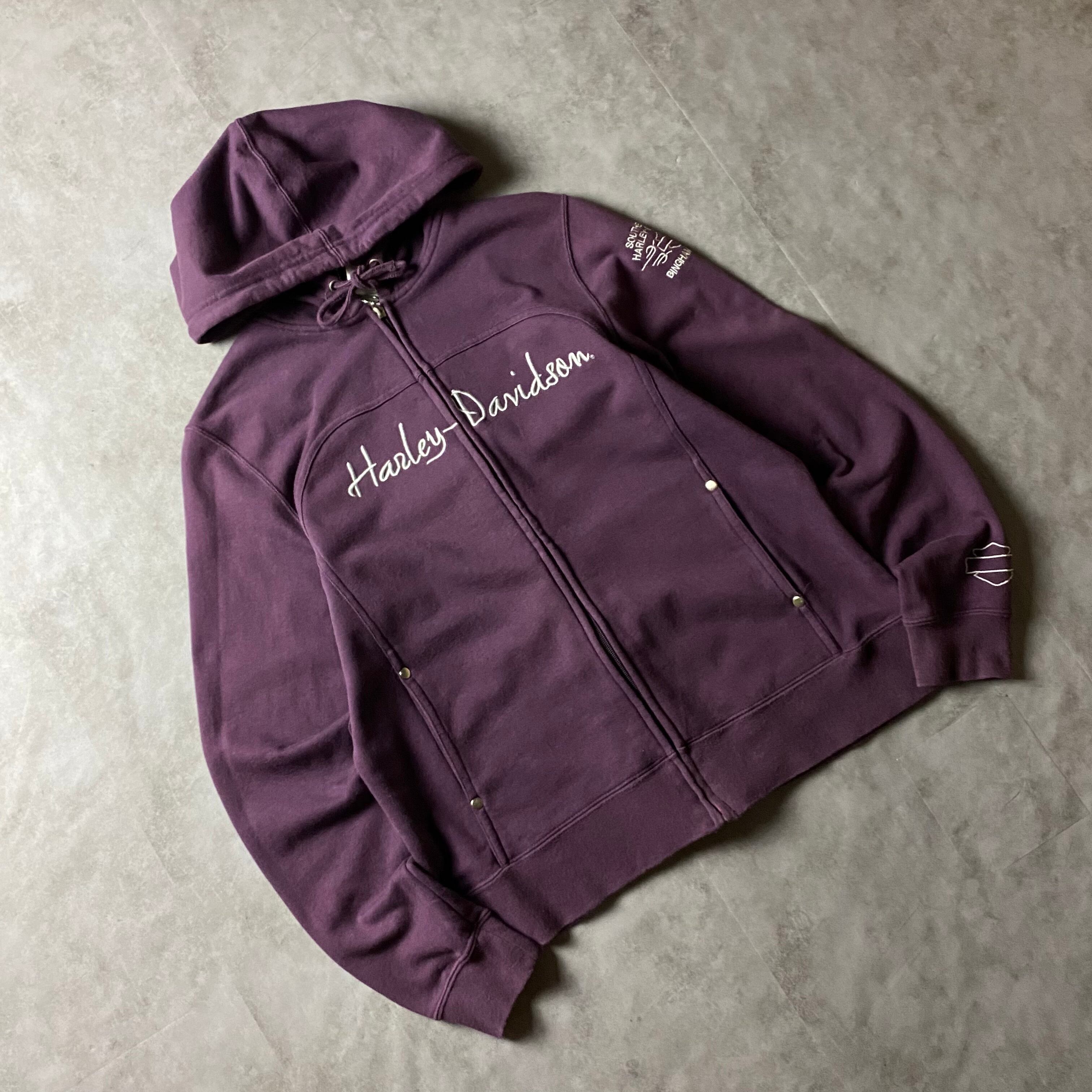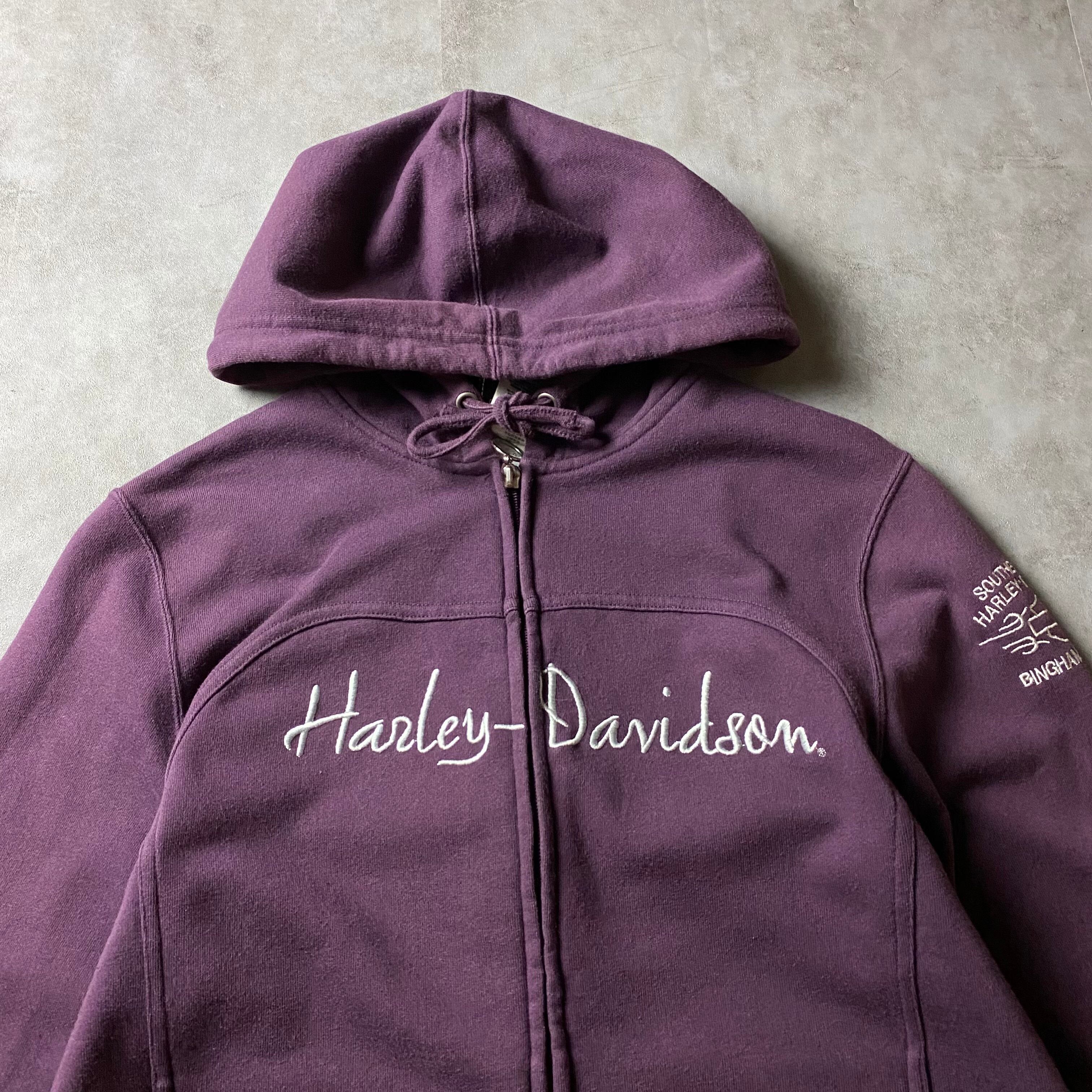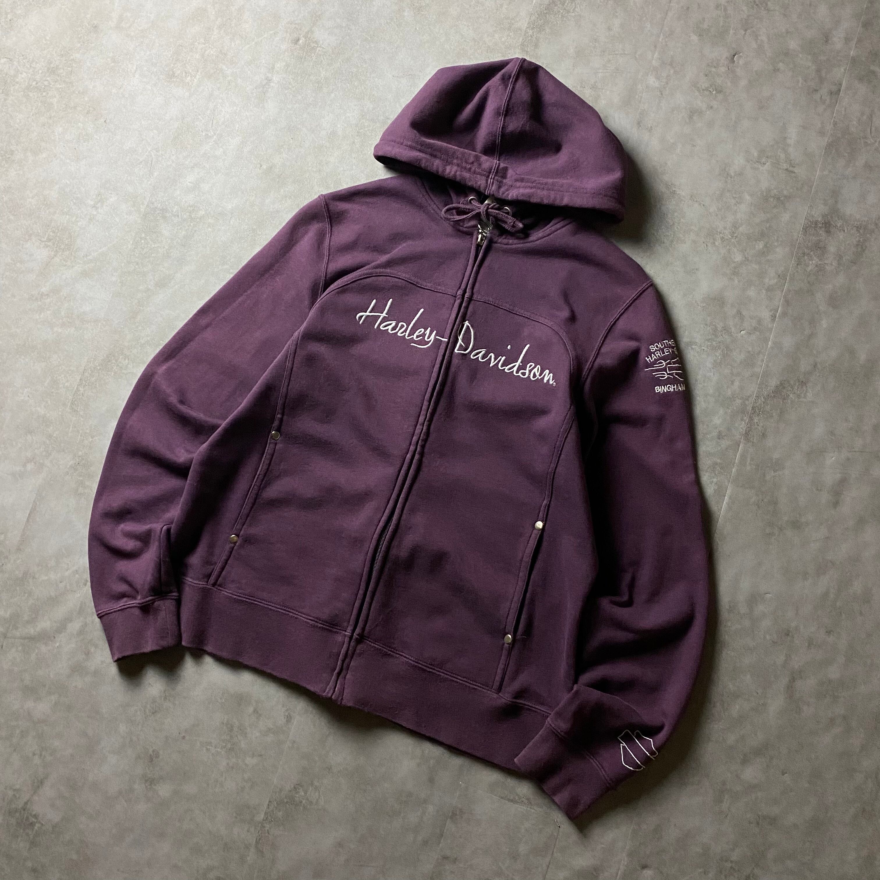 00s Harley-Davidson フルジップパーカー y2k ハーレーダビッドソン 刺繍ロゴ フルジップ ジップアップ パーカー スウェット トレーナー フーディー グランジ フェアリーグランジ 00s ファッション