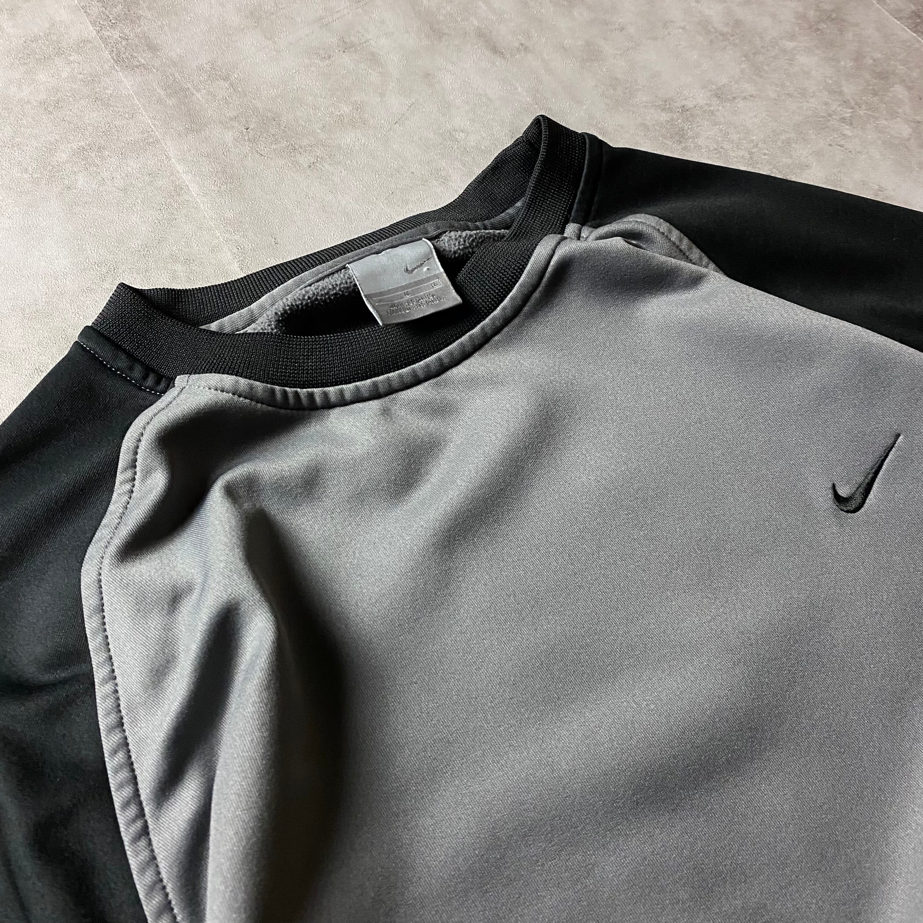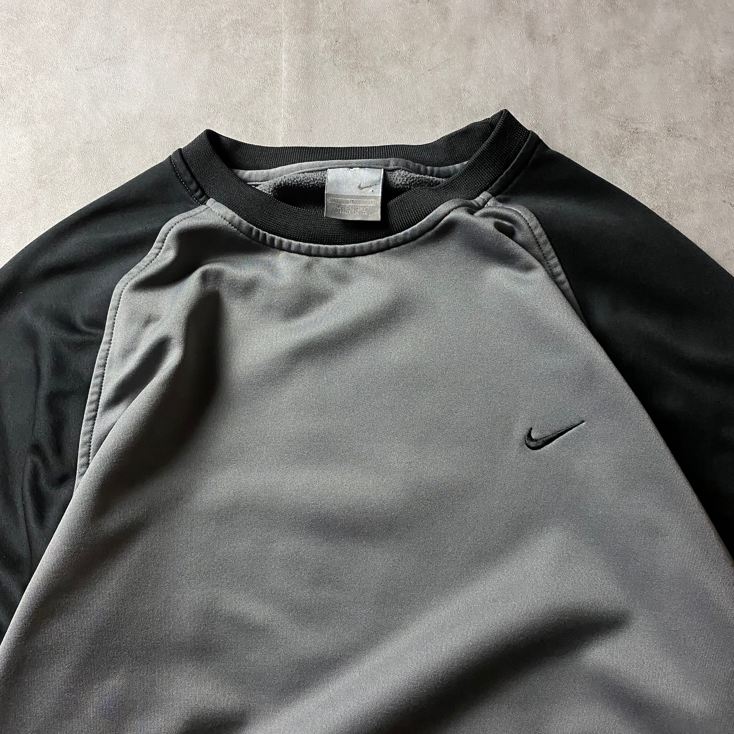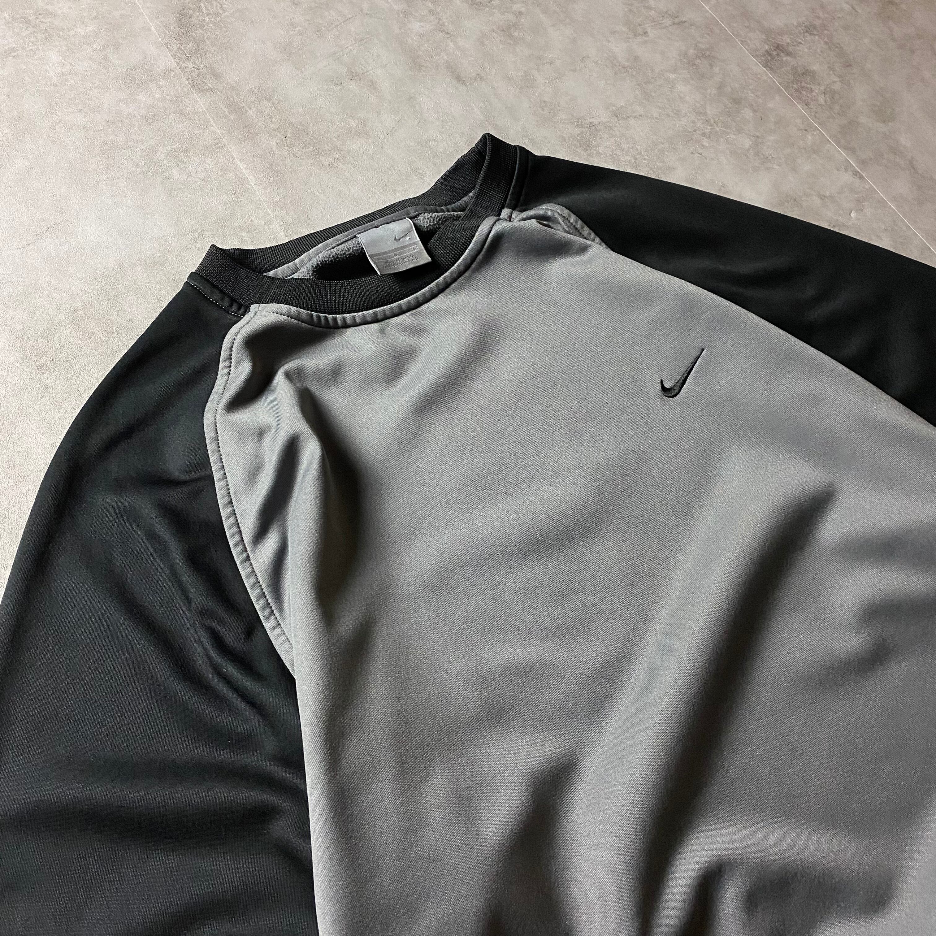 00s NIKE 刺繍ロゴ ラグラン スウェット 2トーン ソリッド ワンポイントロゴ トレーナー ノームコア テック
