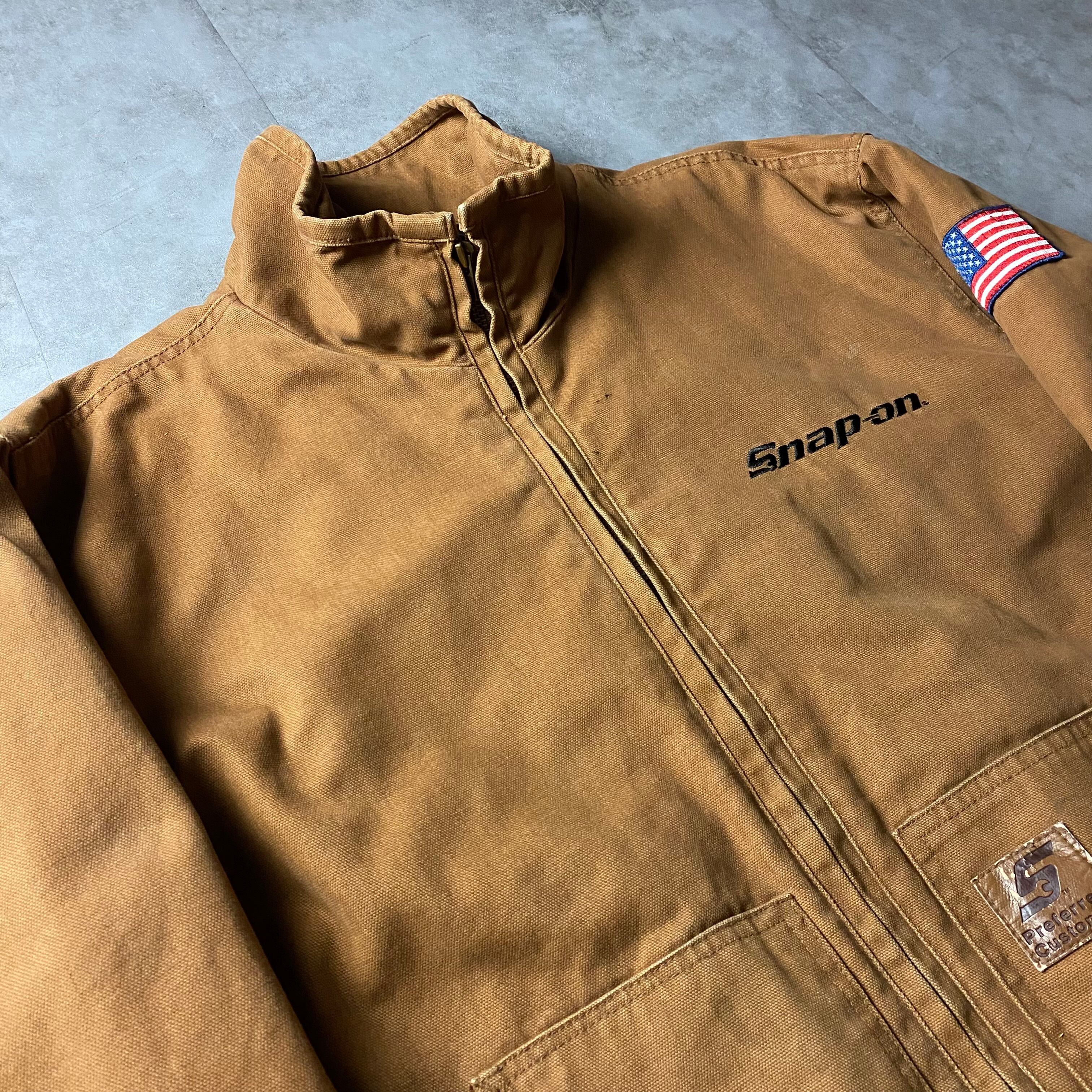 Snap-on ダックジャケット 刺繍ロゴ 星条旗 企業ロゴ ダック ジャケット ワークウェア ワークジャケット 裏地キルティング アウター ブルゾン アメカジ