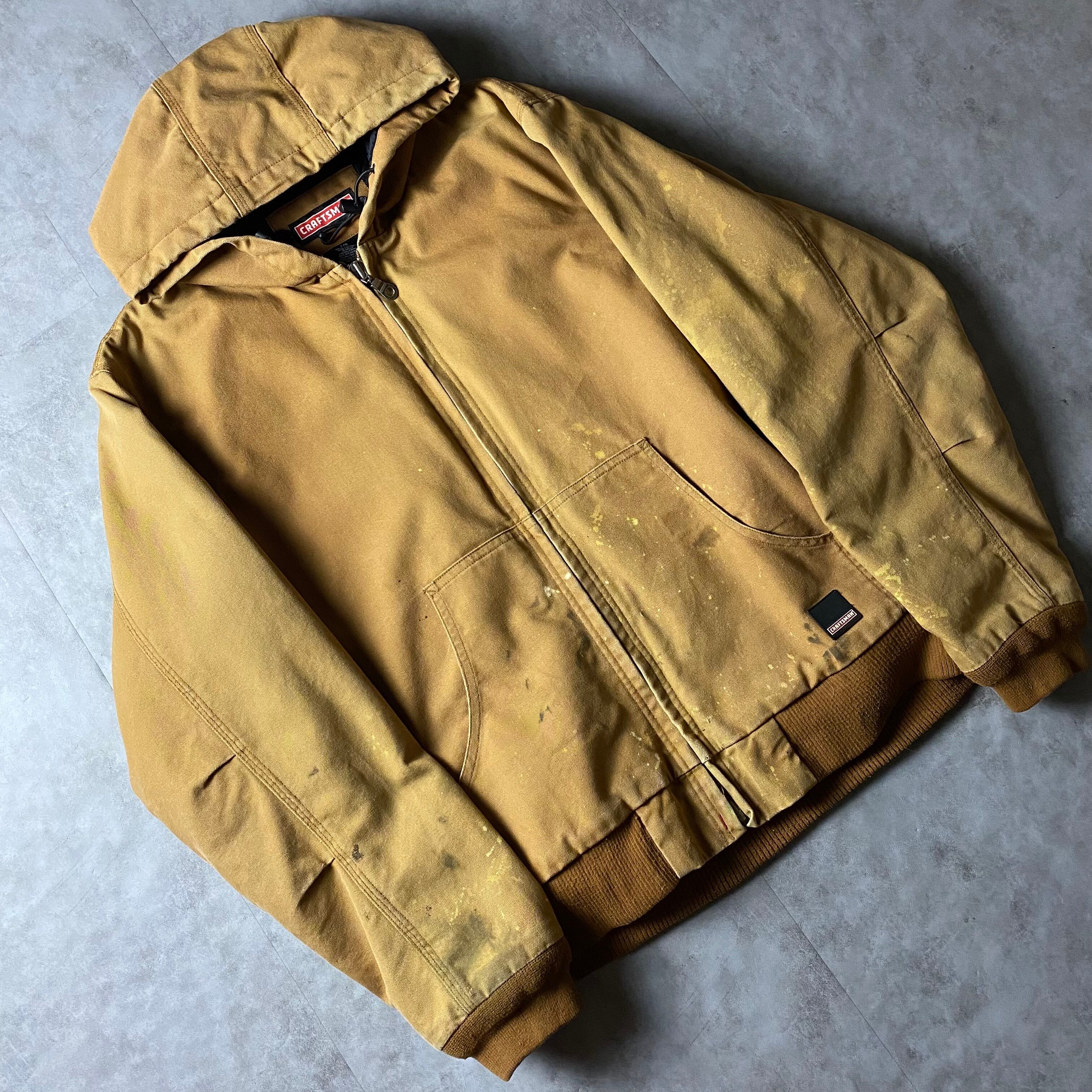 CRAFTSMAN ダック地 アクティブジャケット 中綿 ダメージ ワークウェア ワークジャケット ダックジャケット パーカー フーディー 裏地キルティング ボロ フェード アウター ブルゾン
