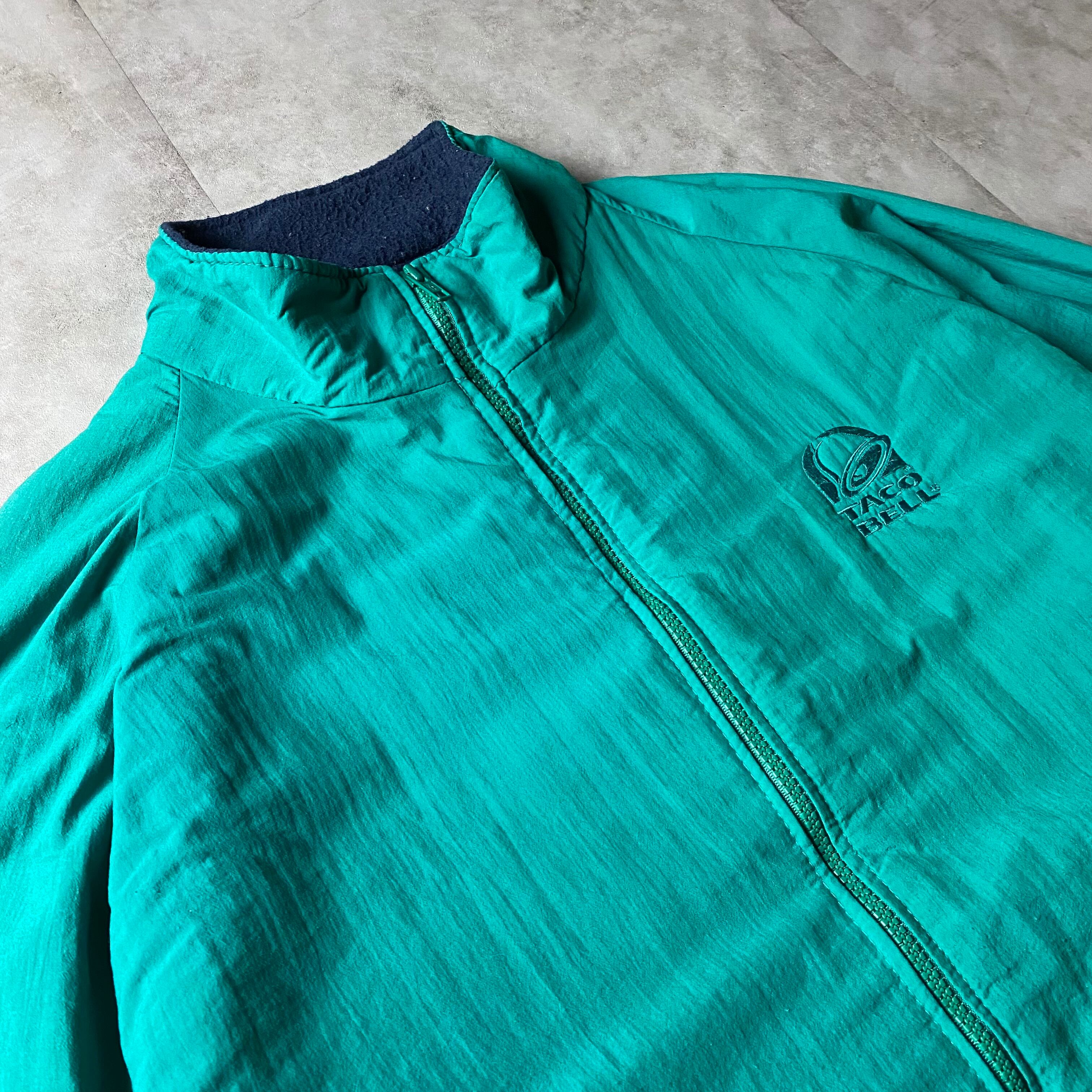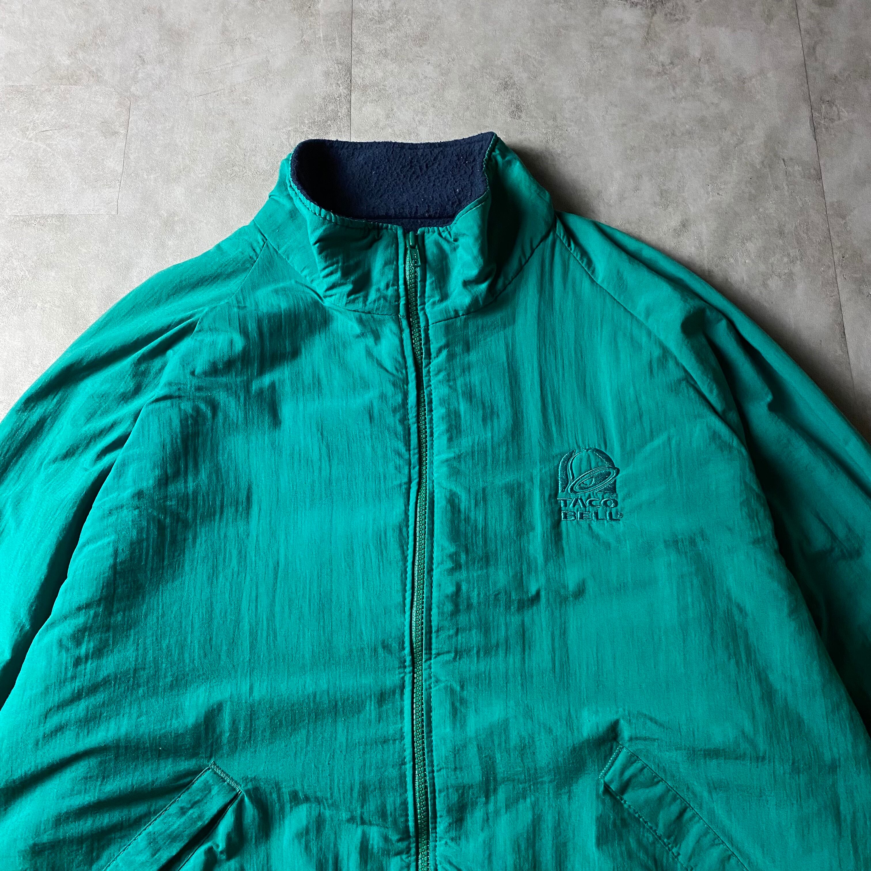 90s USA製 TACOBELL 企業物 ウォームアップジャケット 企業ロゴ 刺繍ロゴ ナイロンジャケット 裏地フリース ジャケット ブルゾン vintage ビンテージ