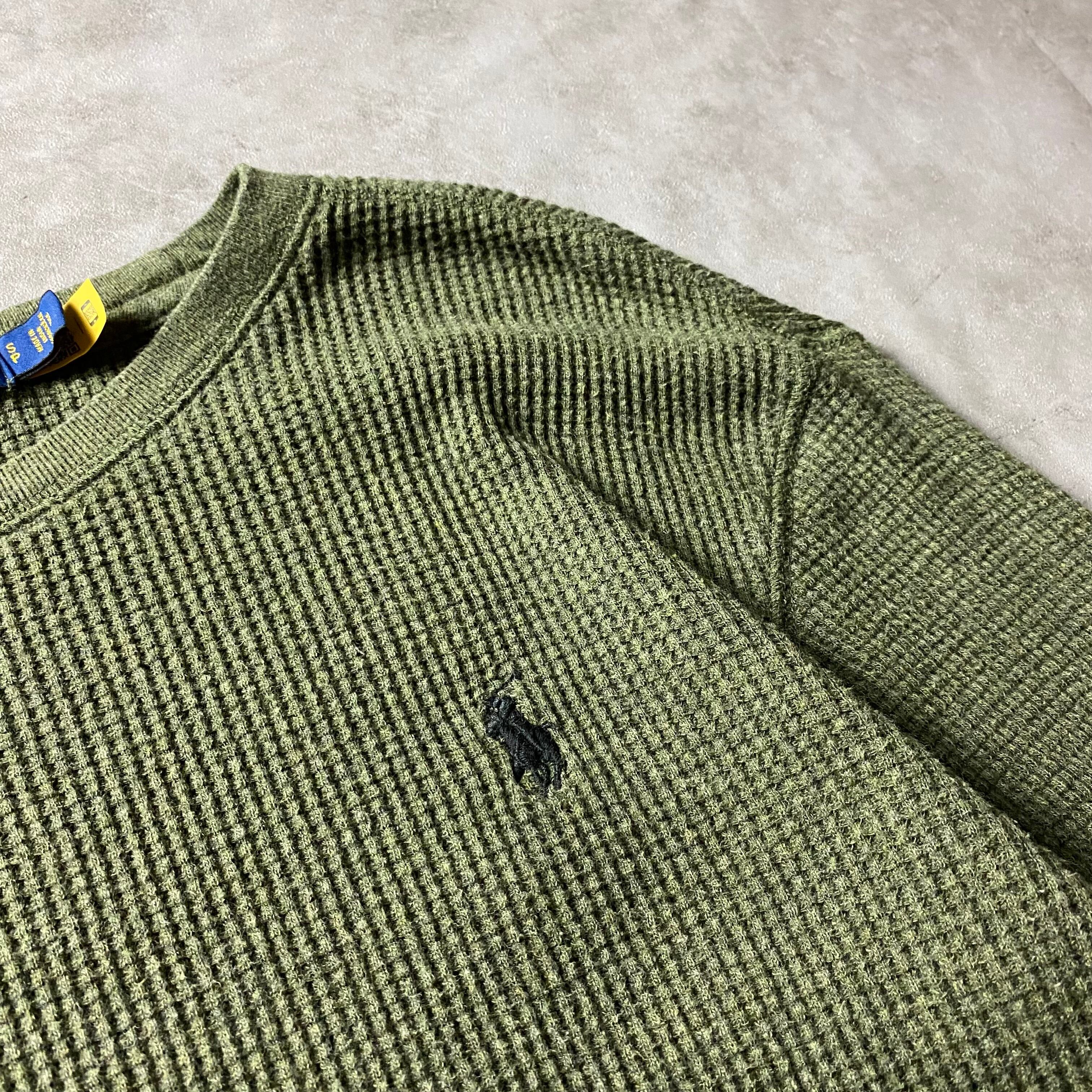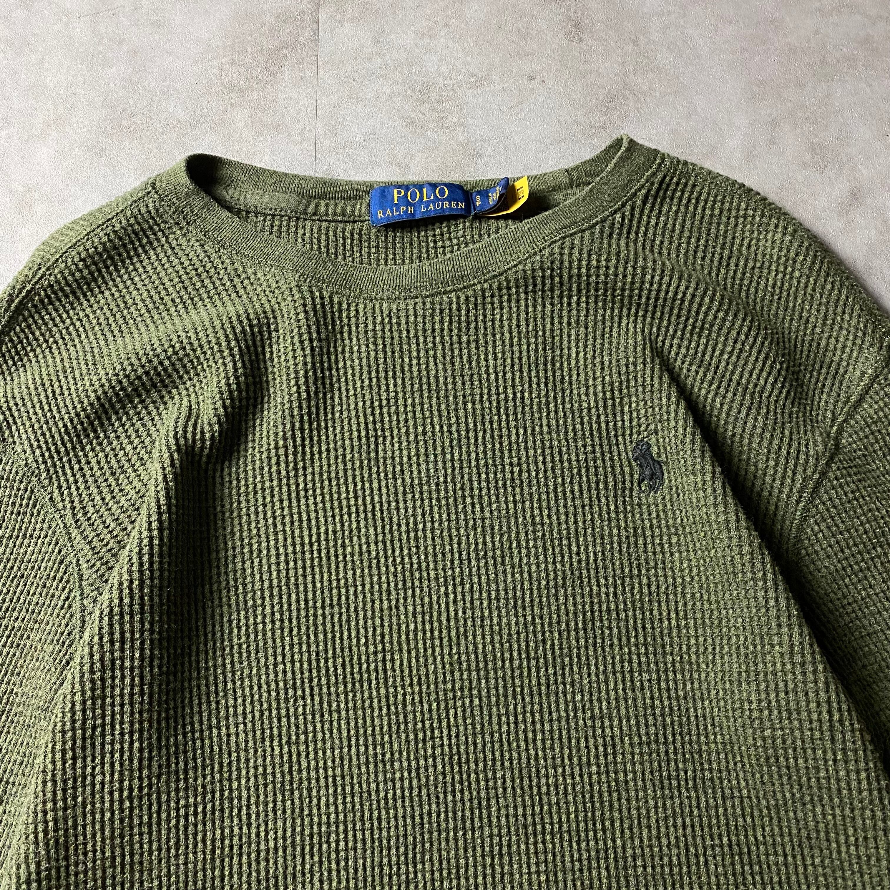 Ralph Lauren サーマルシャツ 刺繍ロゴ ワッフル カーキ アンダーウェア 無地