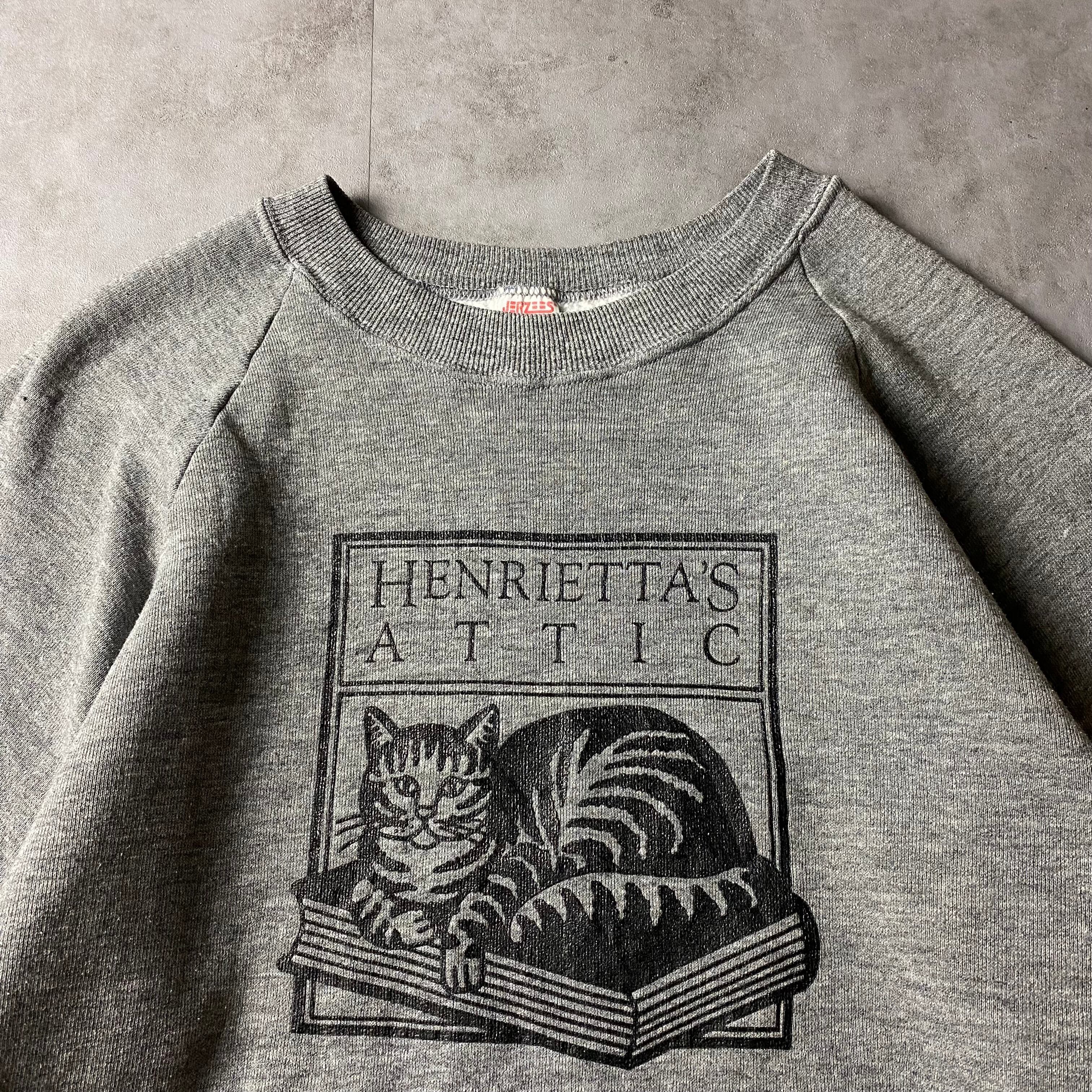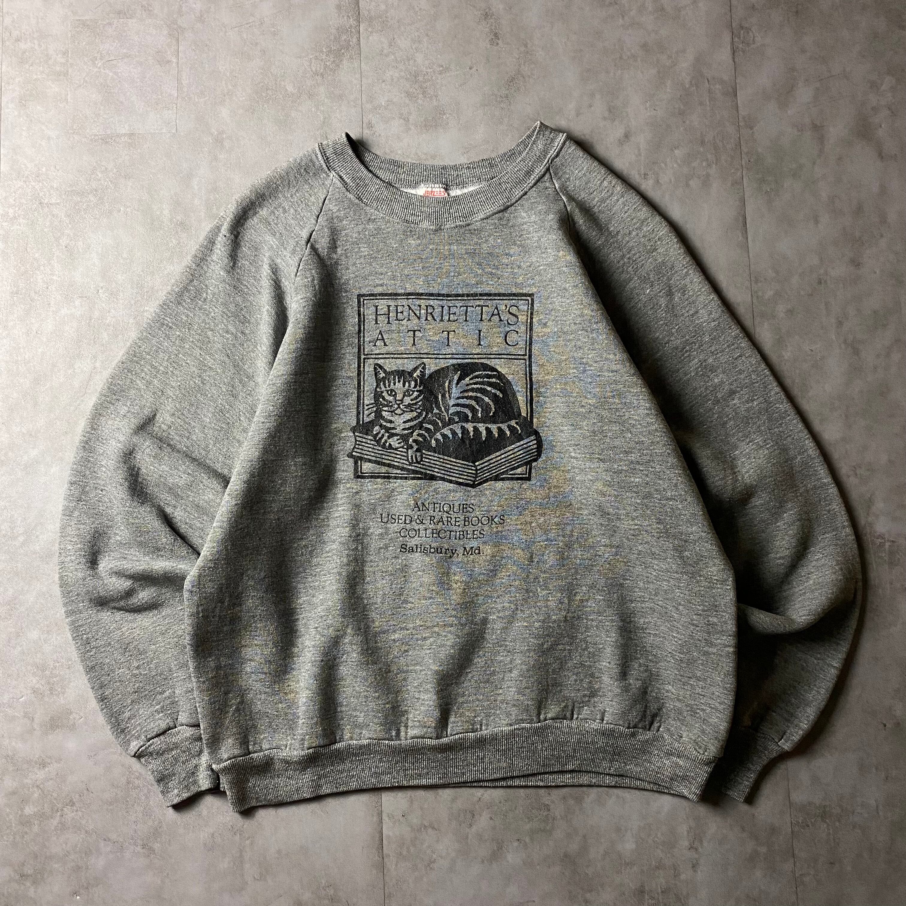 70-80s USA製 猫 本 ラグランスウェット vintage