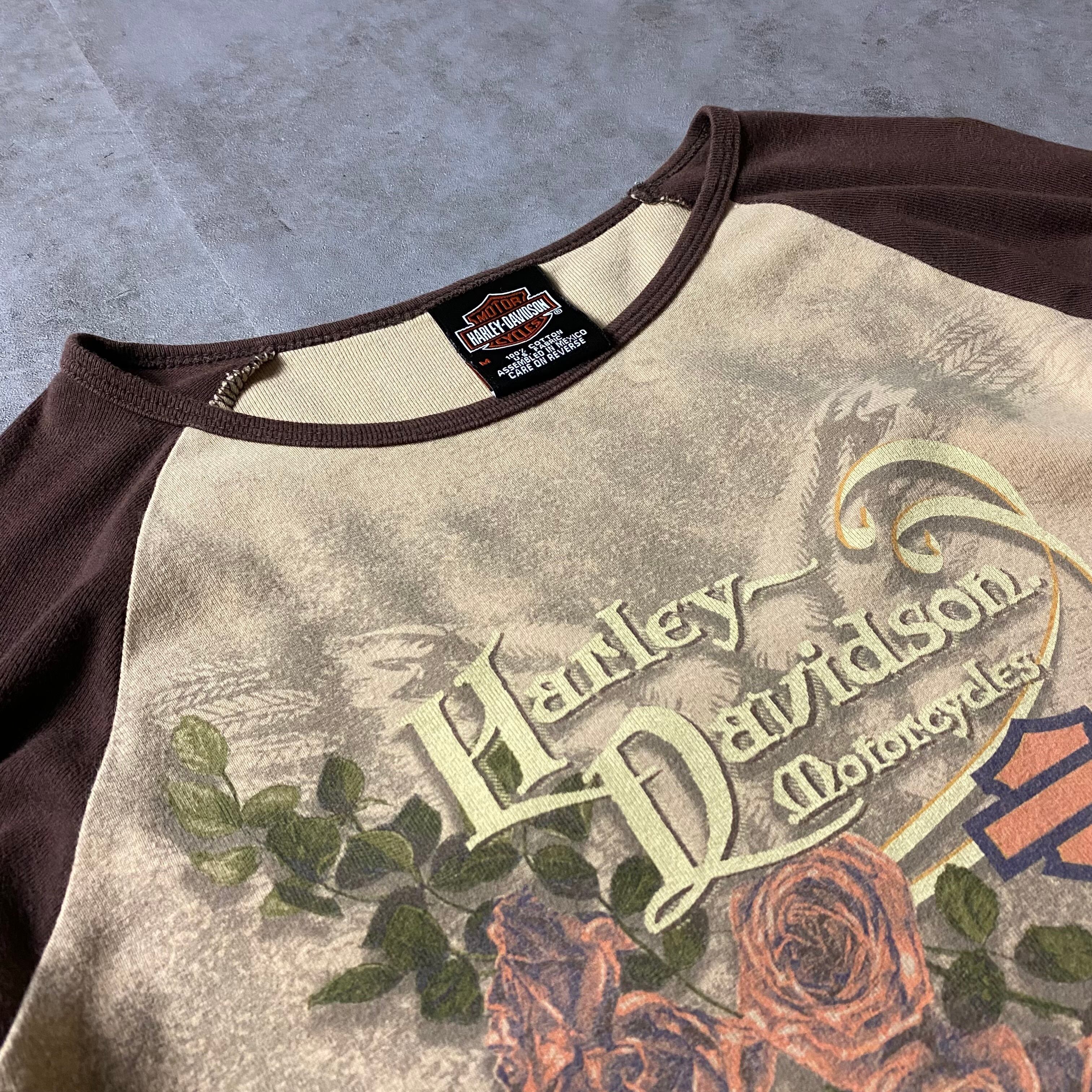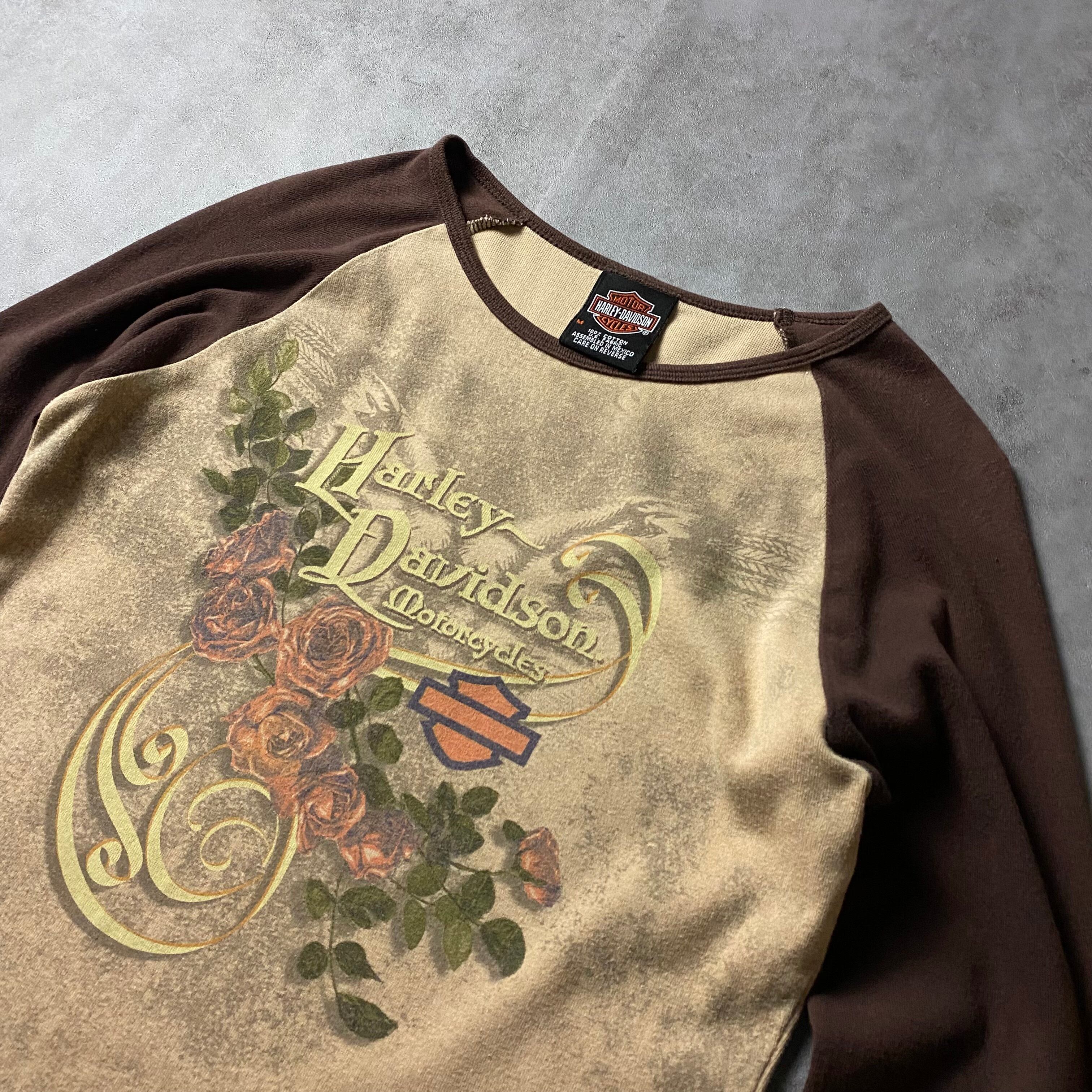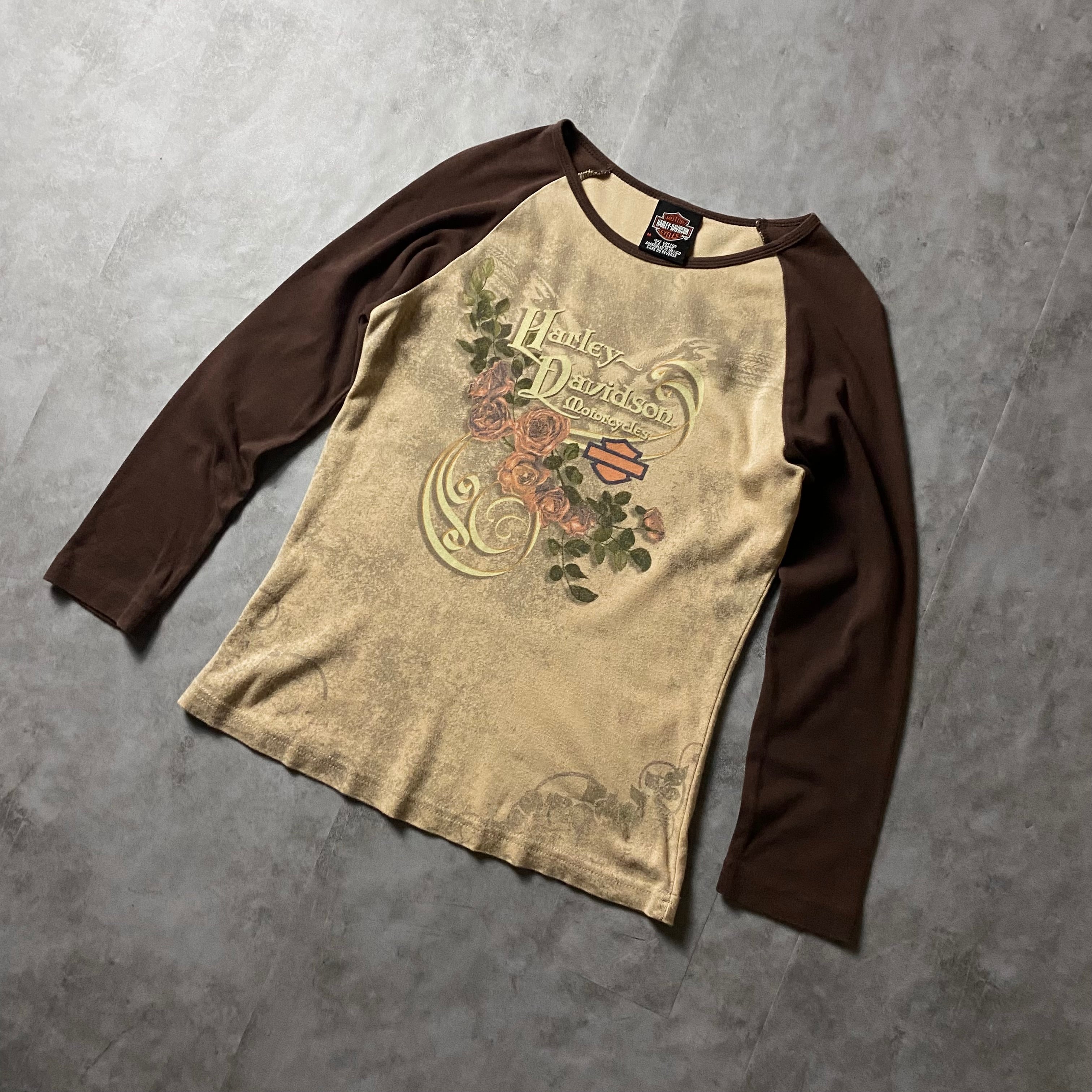 y2k Harley-Davidson ピチT 花柄 薔薇 長袖