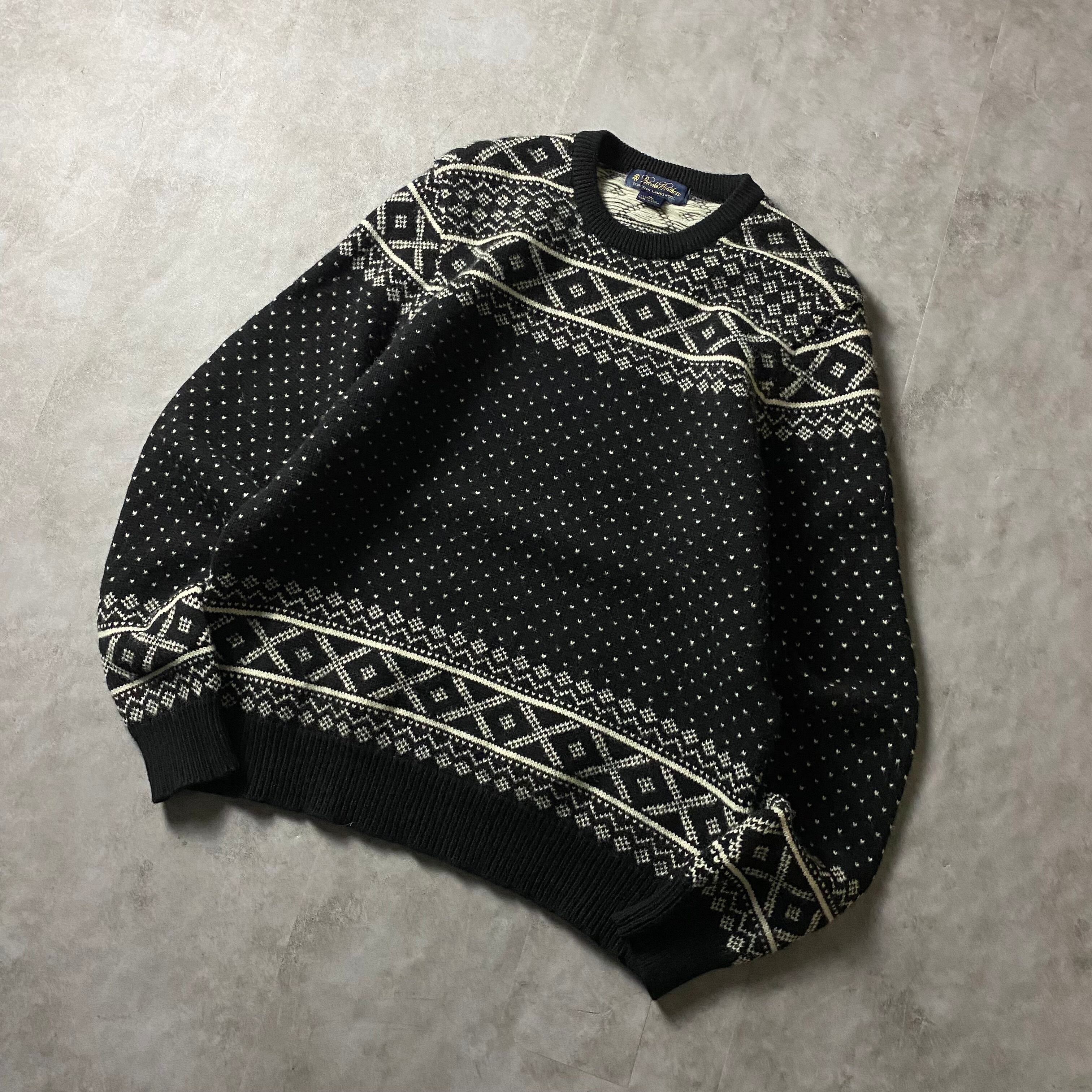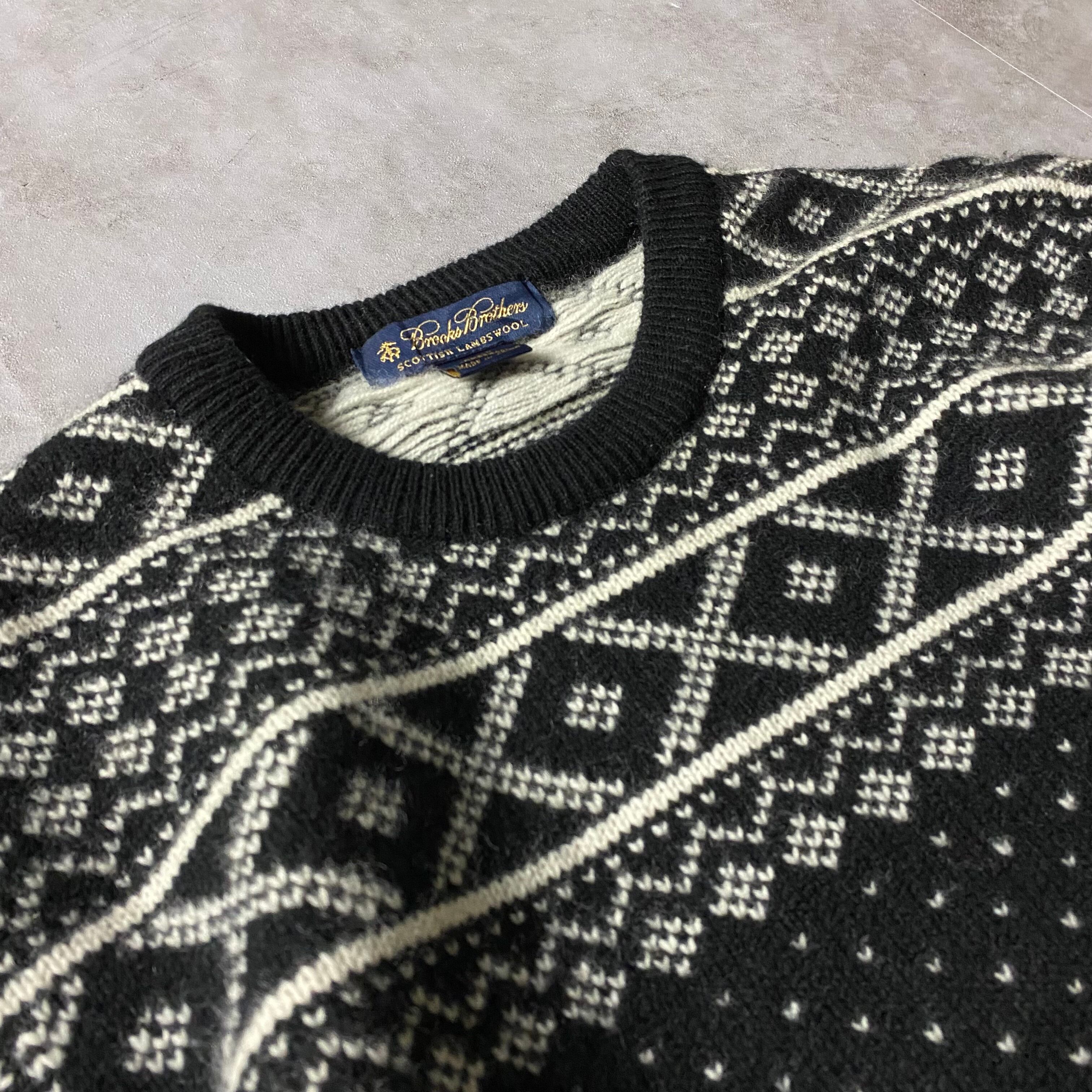 温かみのあるウール素材を使用したこのニットは、伝統的なフェアアイル柄が施され上品さを感じさせます。