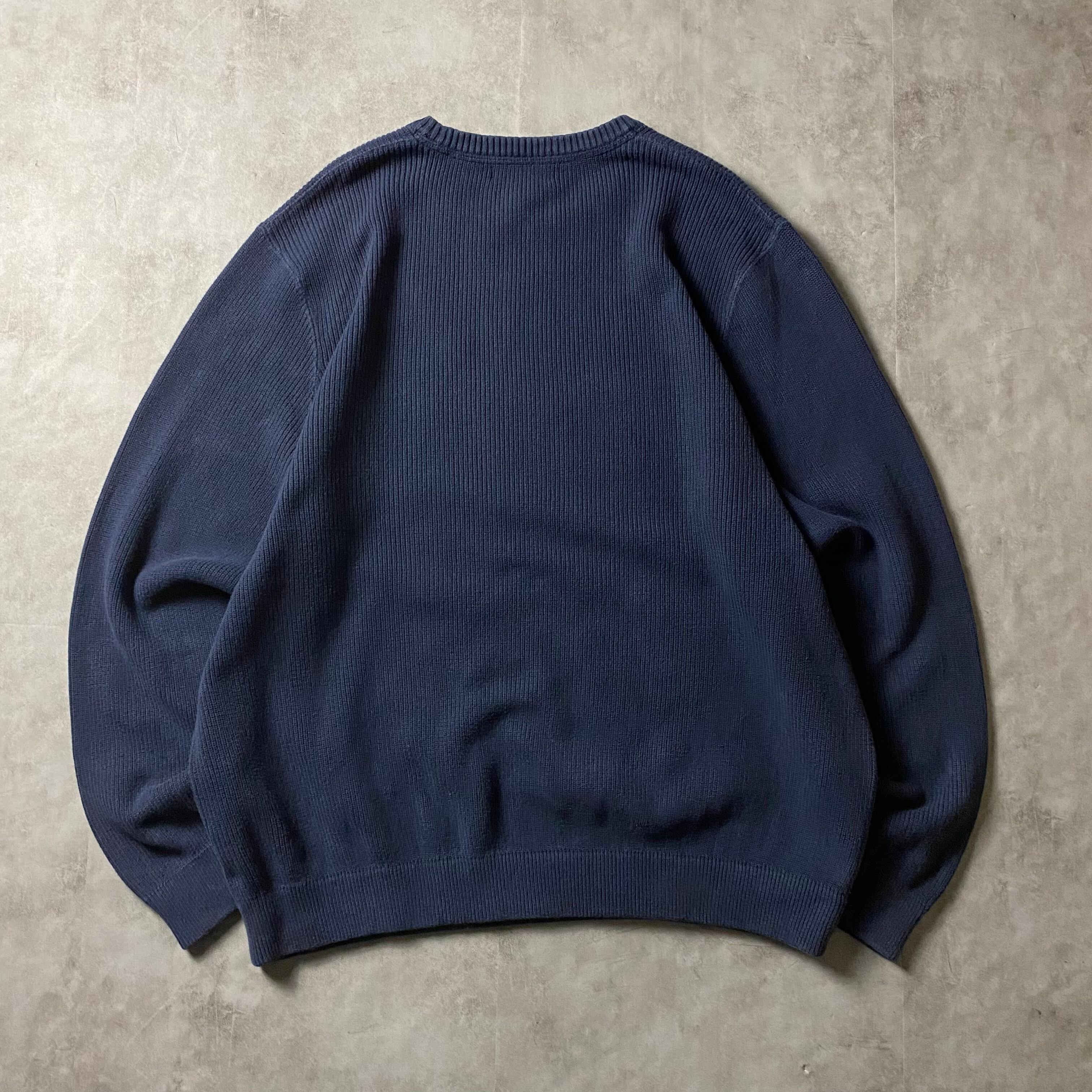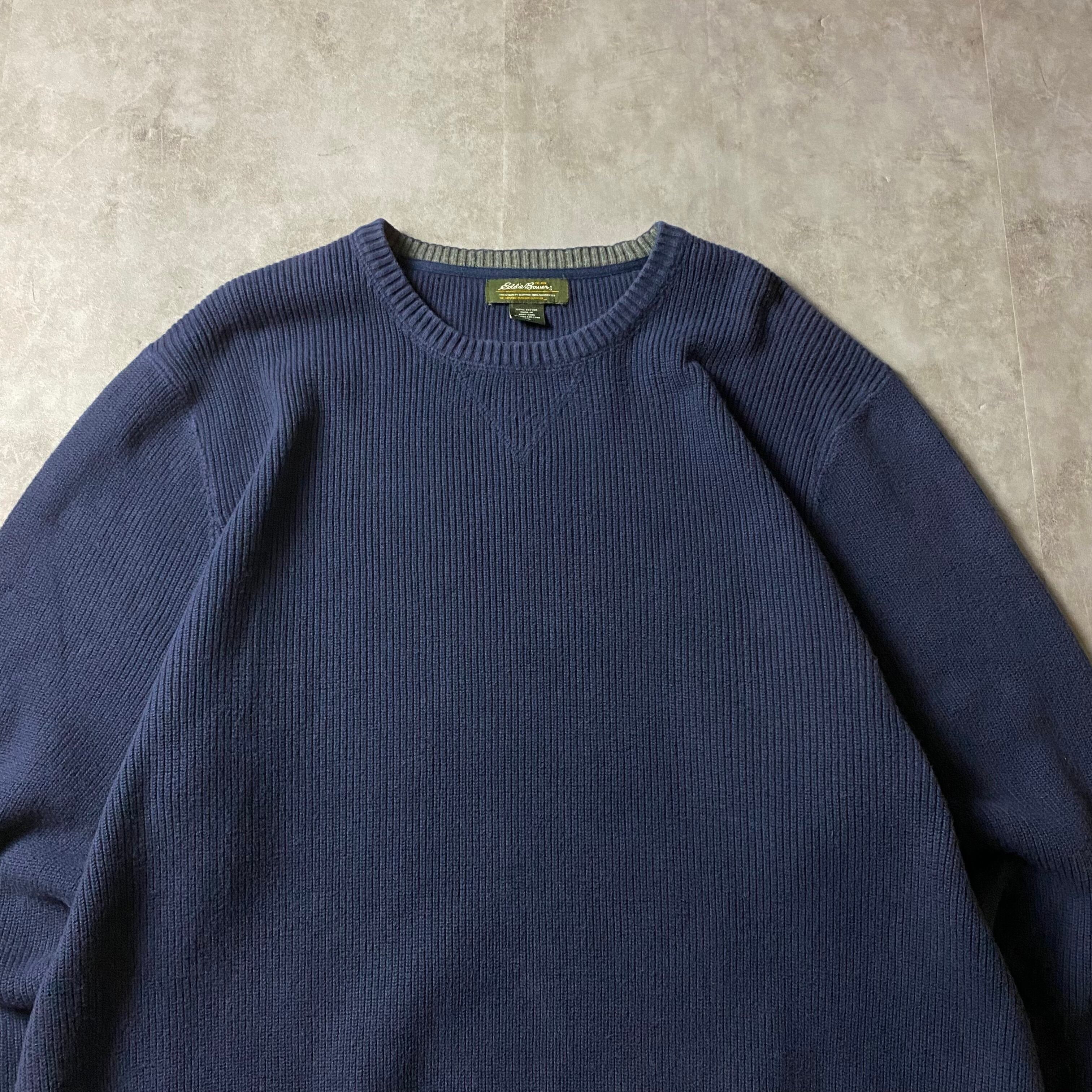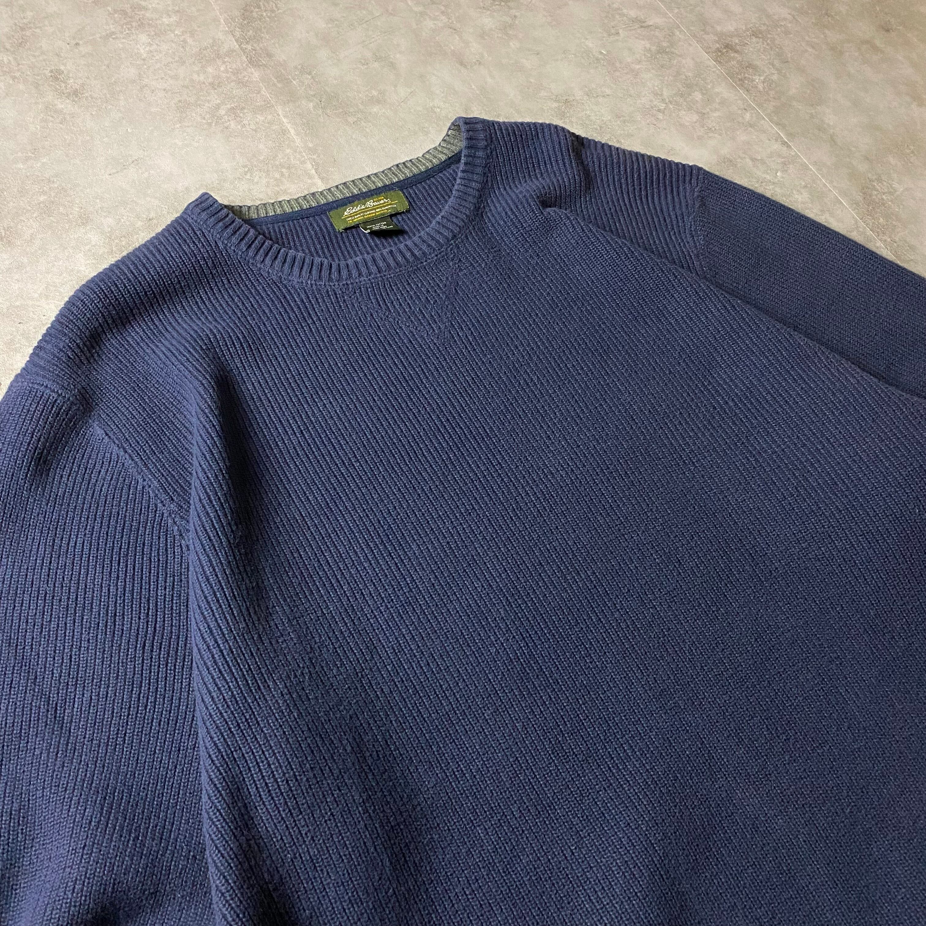 00s Eddie Bauer コットンニット 無地 リブ編み 前V
