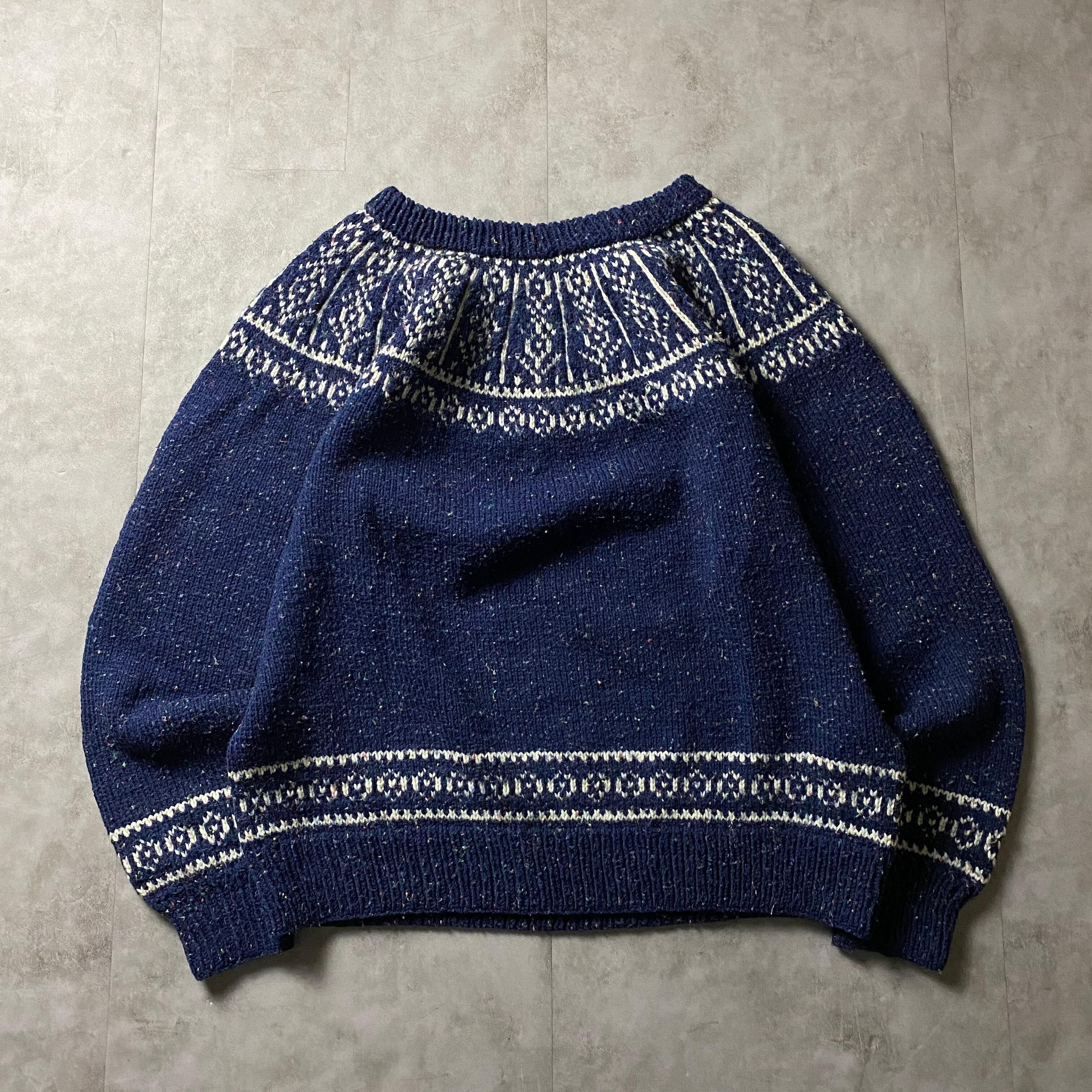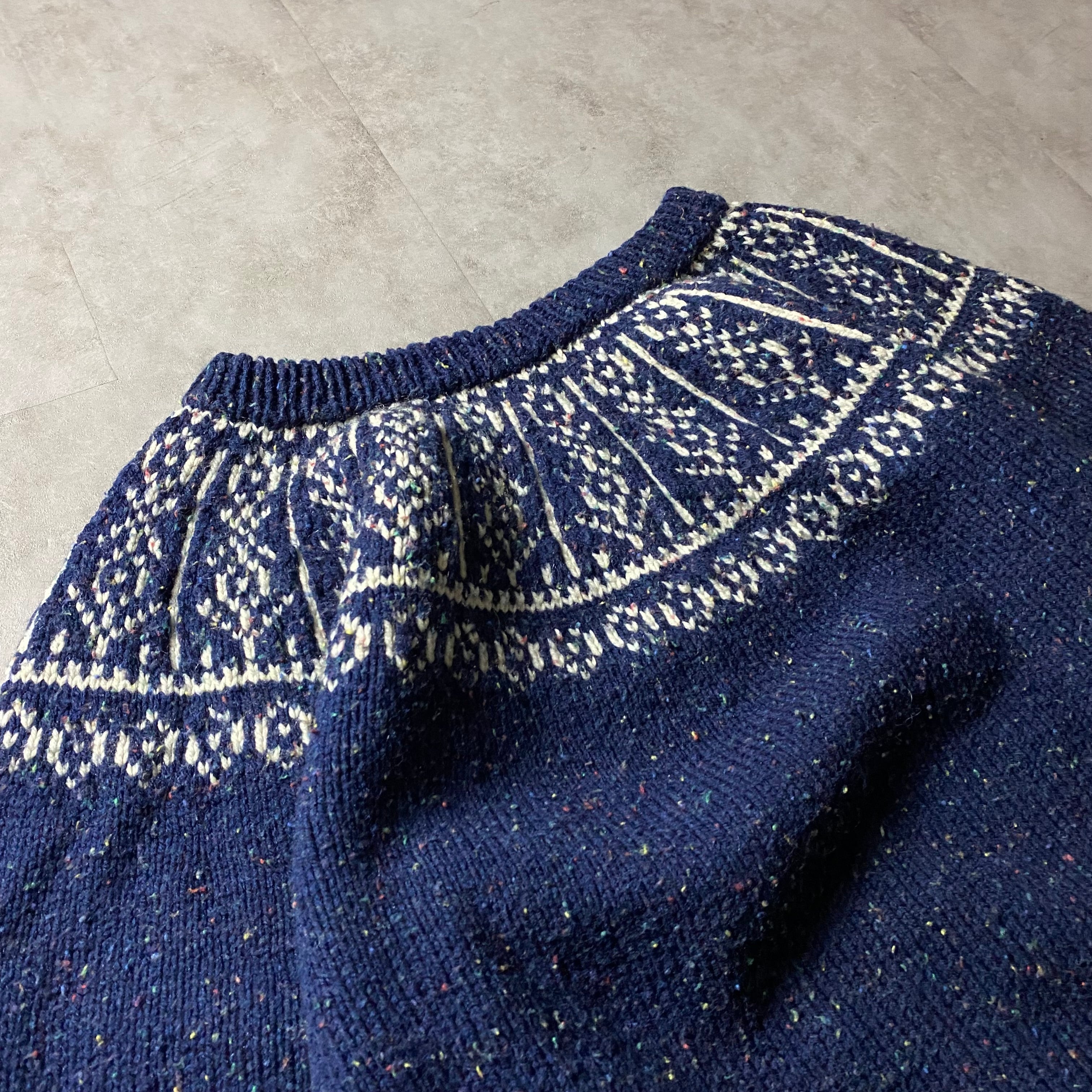 ロピーセーター 手編み ノルディック ニット ネップ 紺 ローゲージ