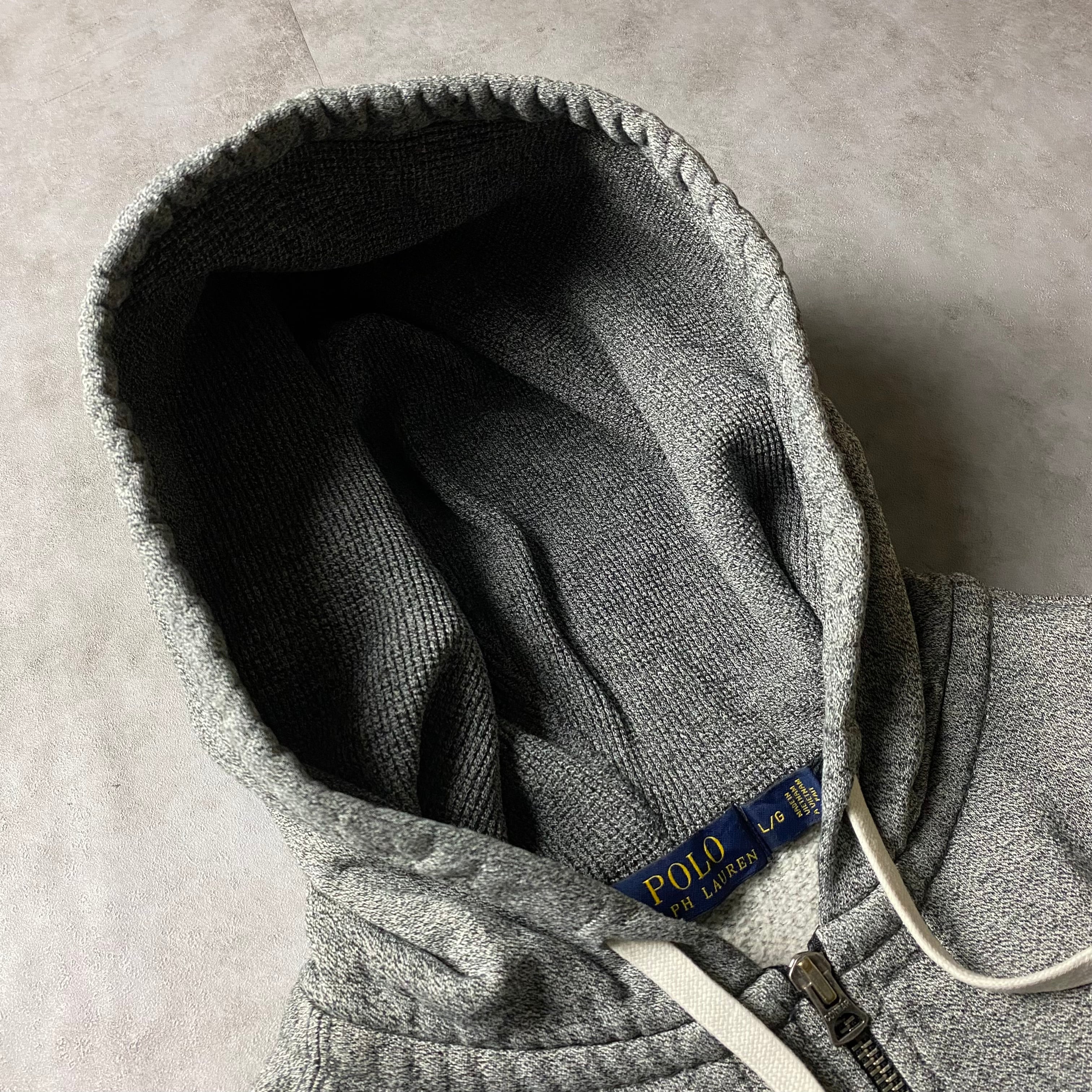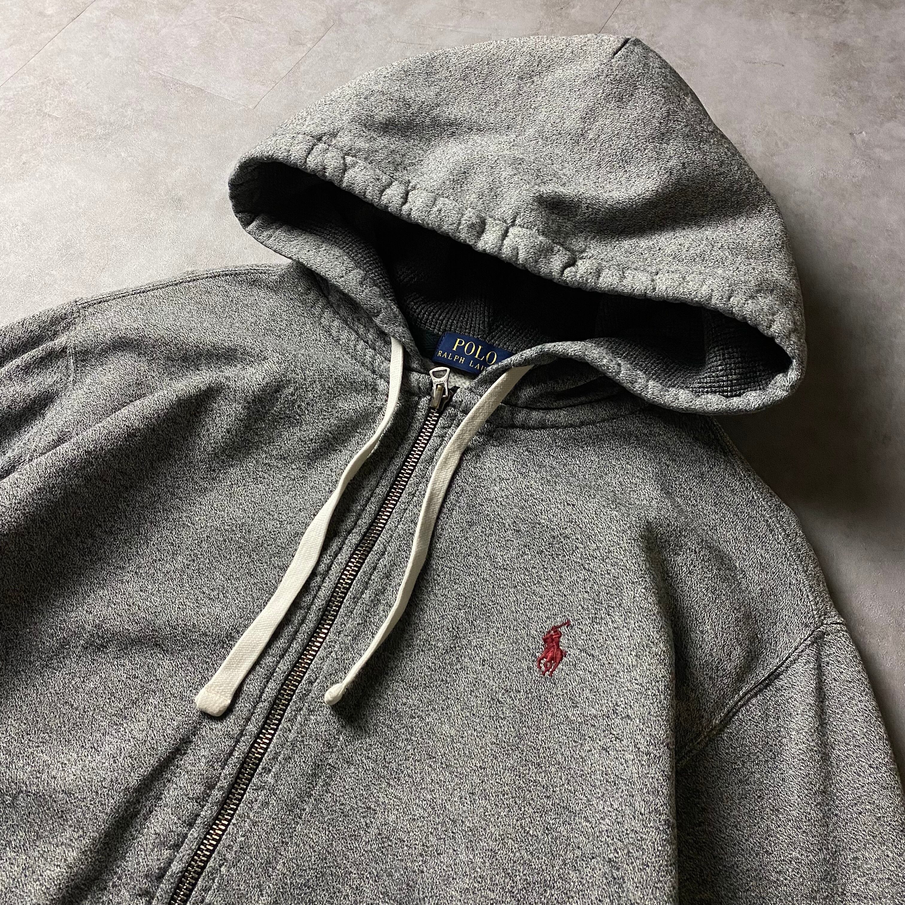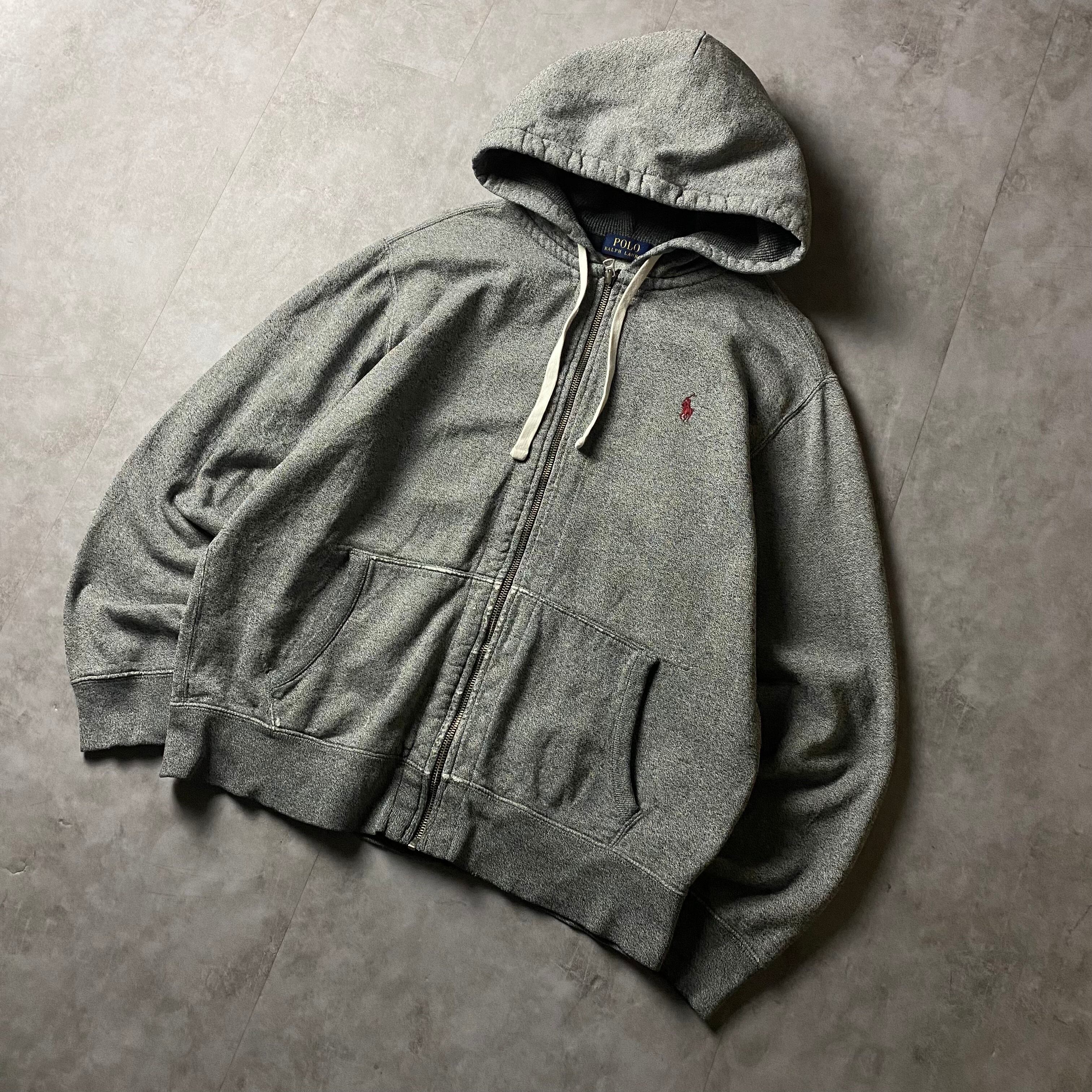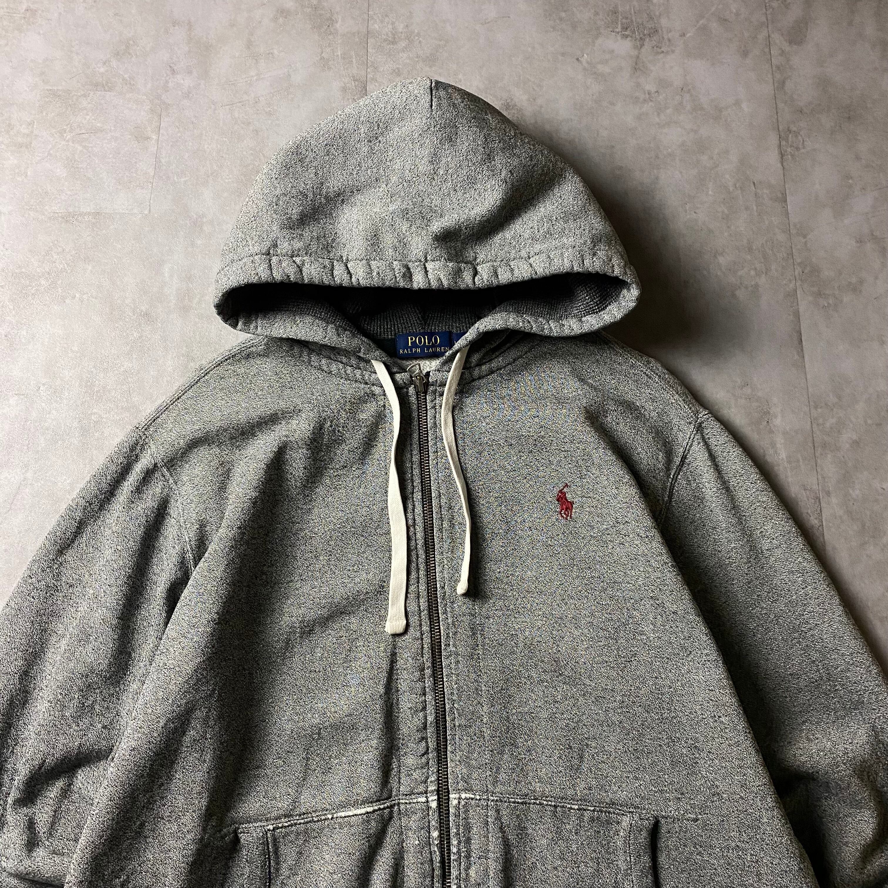 Ralph Lauren ジップパーカー 襤褸 刺繍ロゴ ごま塩