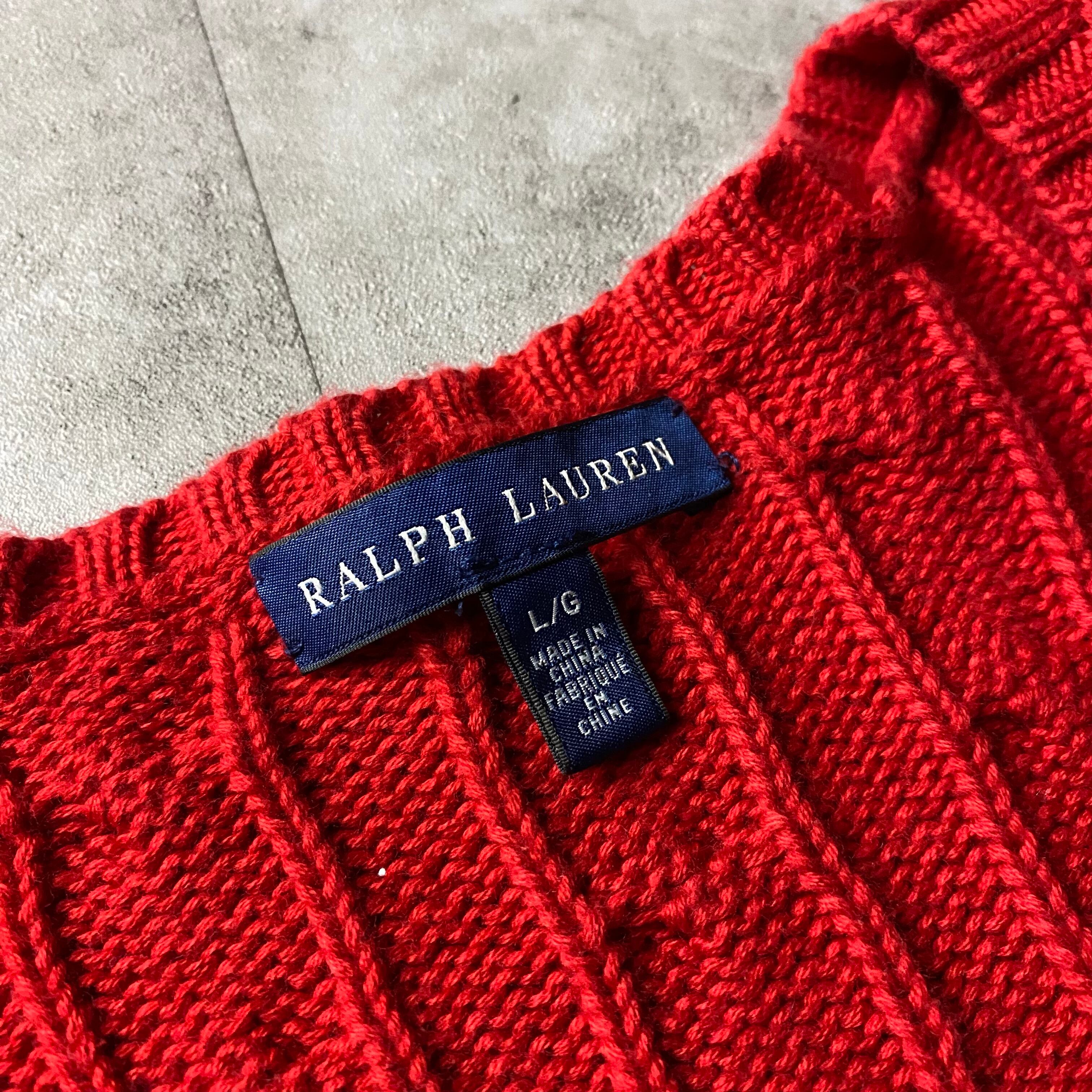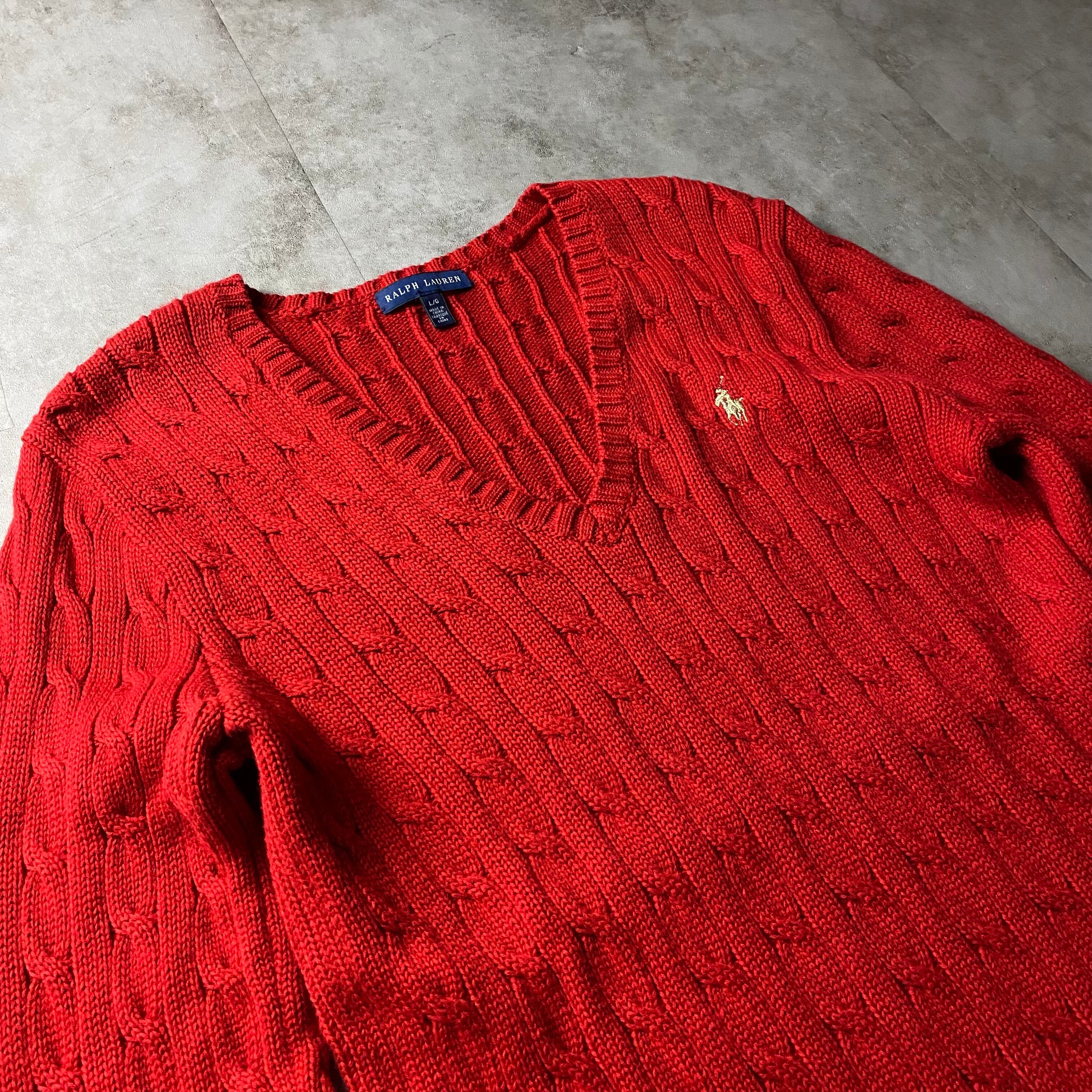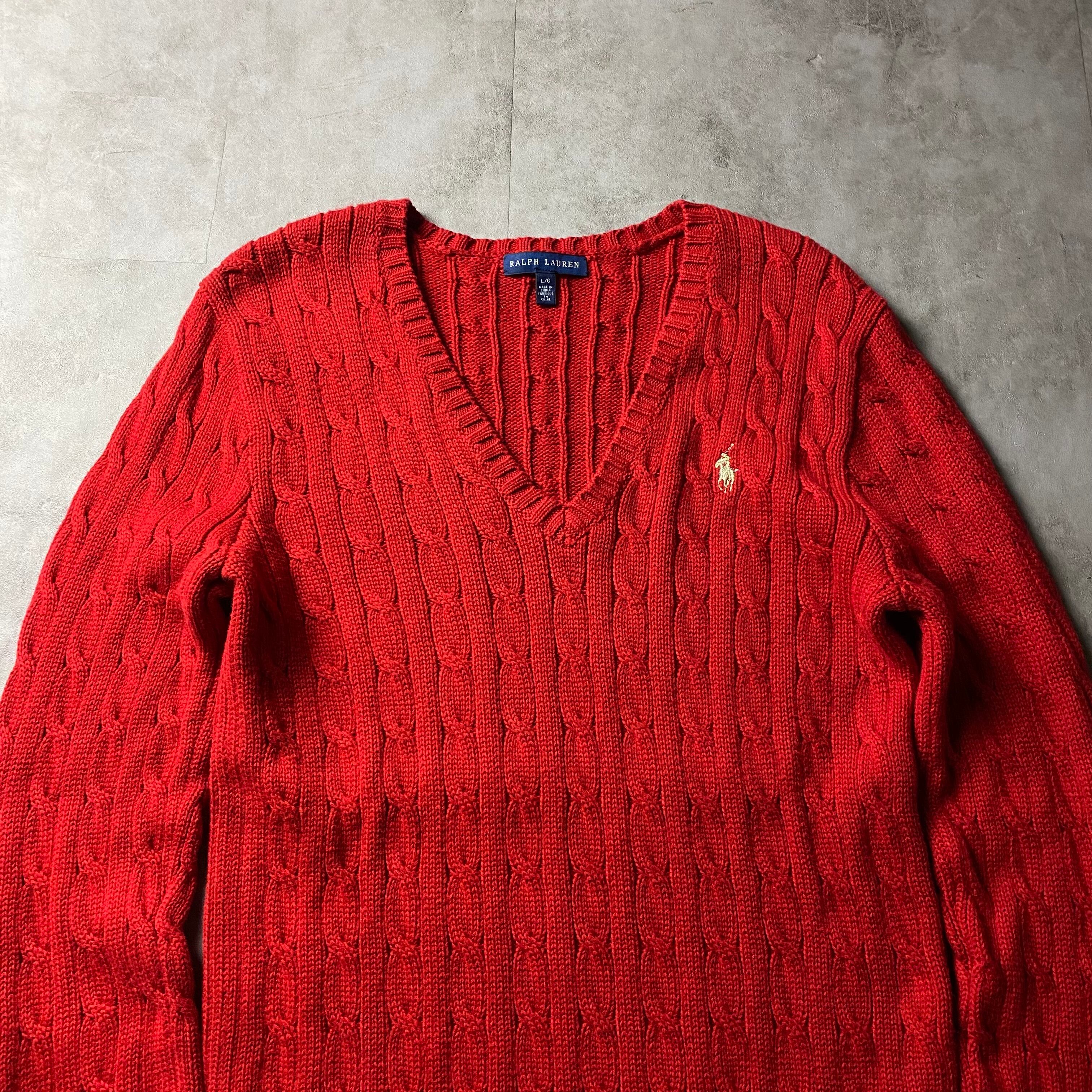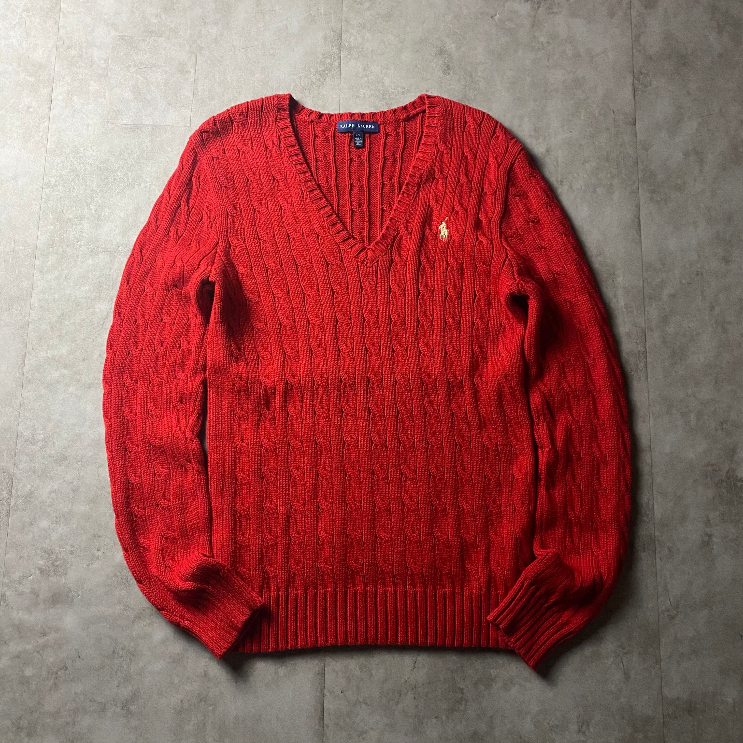Ralph Lauren コットンニット ケーブル編み Vネック レディース