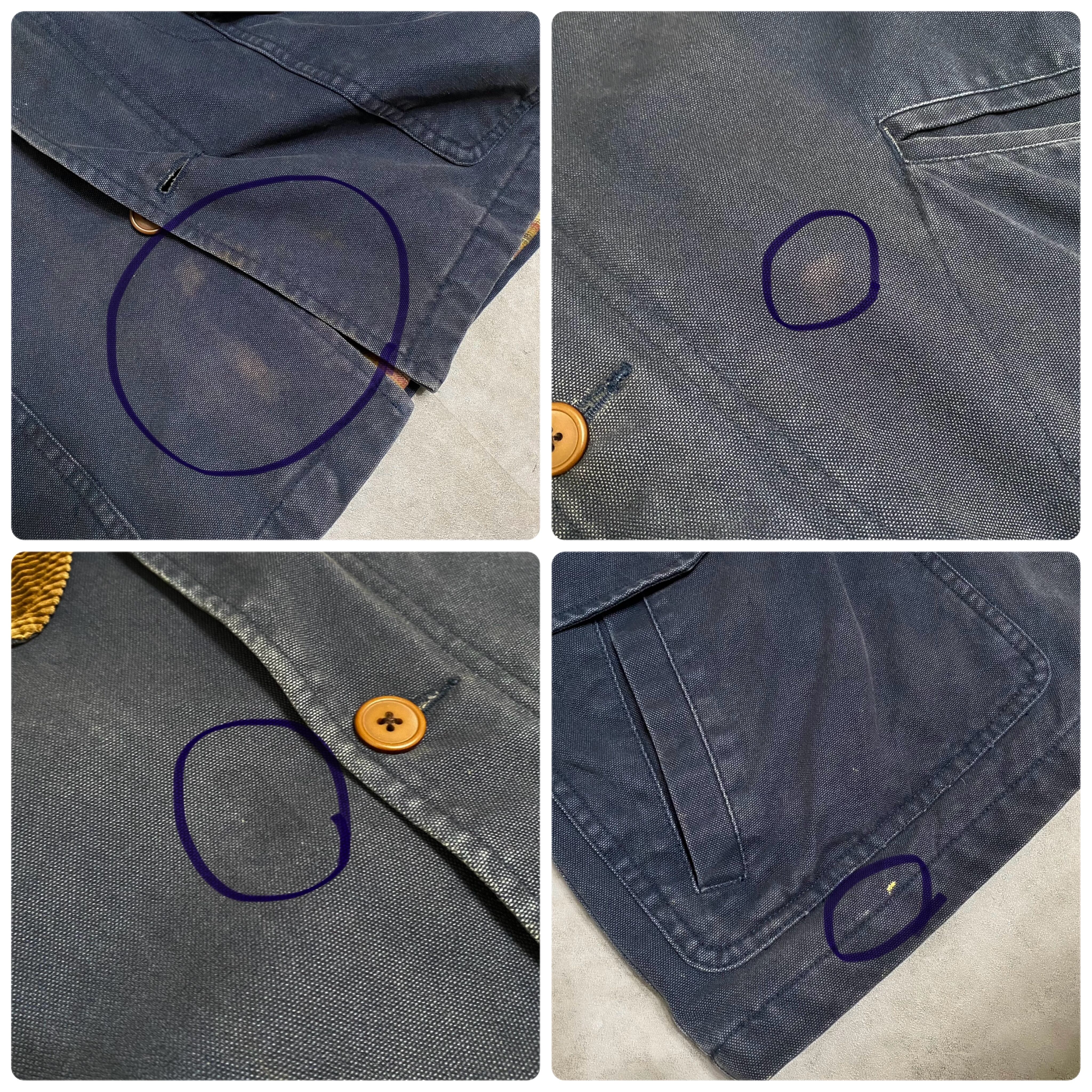 ・used品のため全体的に使用感(色あせやサンフェード等)がございます。また、薄汚れやブリーチ跡が数箇所ございます。味があり古着好きにはたまらない1着だと思いますが、ご理解のある方のみお願い致します。