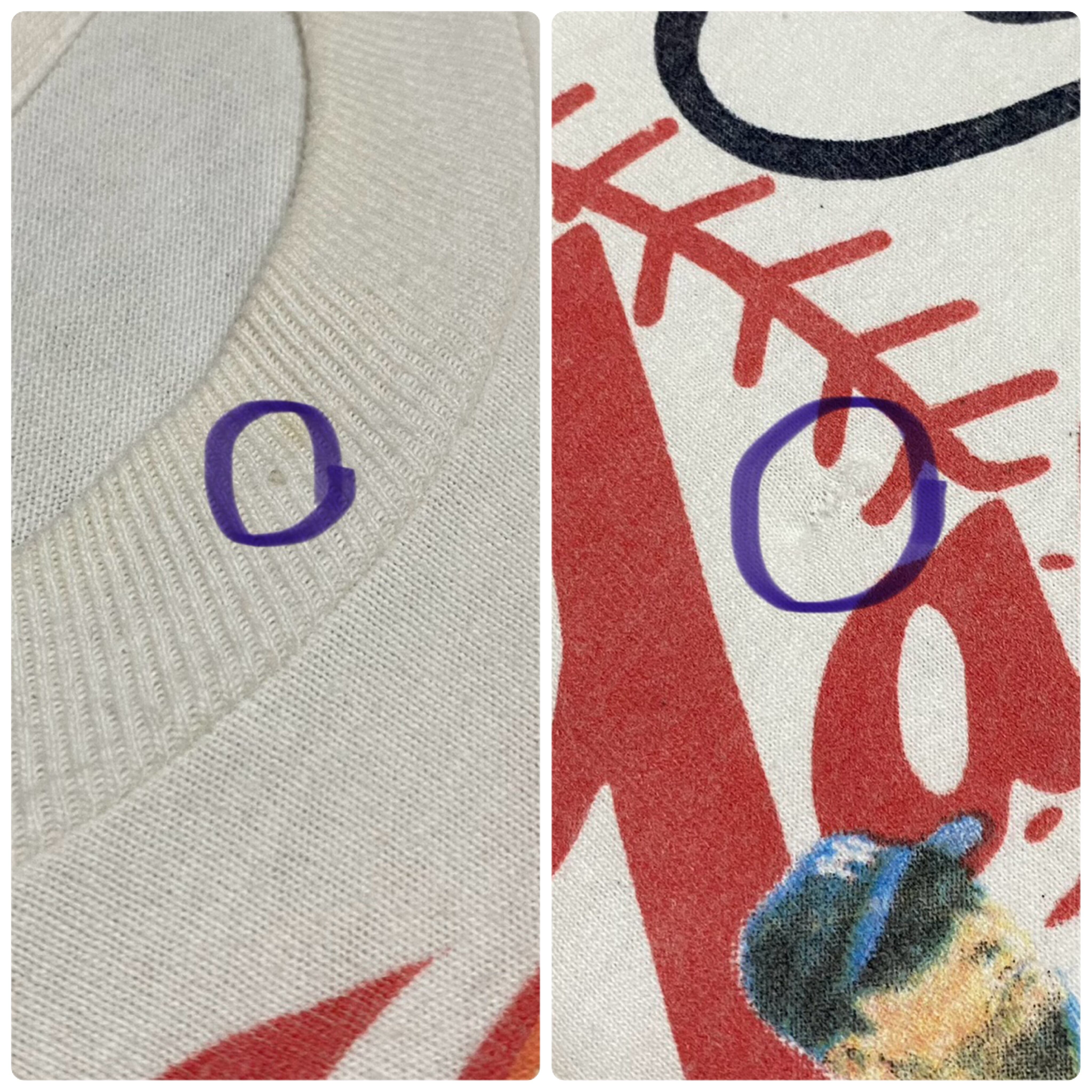 ・used品のため使用感、全体的に黄ばみや薄汚れ、1箇所ずつほつれとリペア跡がございます。味があり古着好きにはたまらない1着だと思いますが、ご理解のある方のみお願い致します。